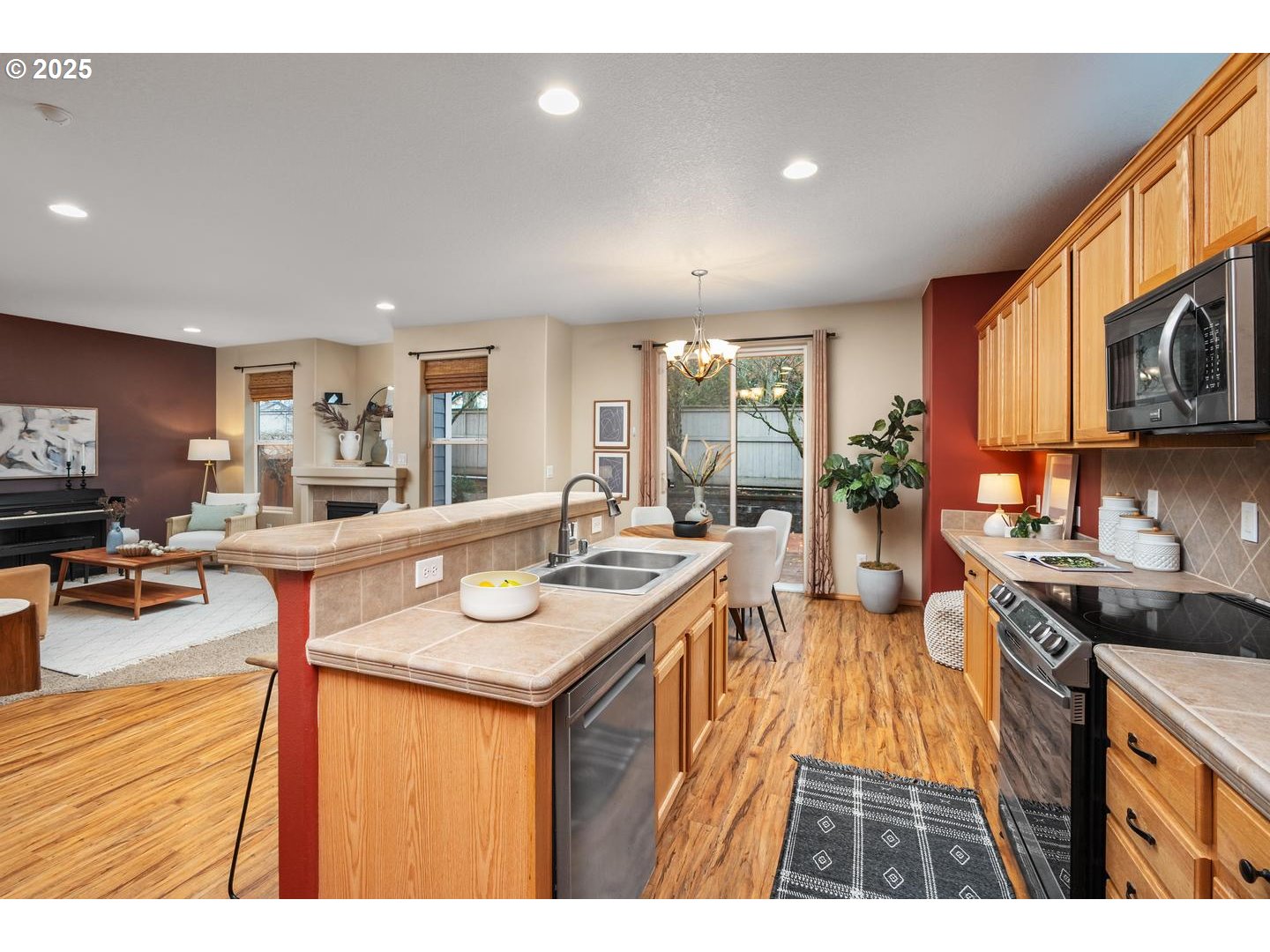 - Welcome to Summer’s Walk in Fisher’s Landing, a bright and friendly neighborhood with sidewalks and tree lined streets near parks, trails, and retail! Enter this 5 bedroom 3 1/2 bath home to high vaulted ceilings, a striking hanging lamp, and surprisingly roomy hall closet. The open concept kitchen features a large island with double sink, dishwasher, and breakfast bar seating. A built in desk with lighting and generous cabinet storage keeps everything organized, and lower cabinets glide out for easy access. The Samsung oven handles convection, standard baking, and air frying, and the Whirlpool refrigerator and three rack dishwasher round out a newer modern appliance package. The adjacent dining area with slider to backyard patio connects the living room featuring recessed lighting and a gas fireplace. A main level bedroom with en suite bath and corner window works well for guests, multi generational living, or a home office. Upstairs, the primary bedroom offers tall vaulted ceilings, along with a en suite bathroom featuring comfortable soaking tub with glass block window, a separate shower with handheld sprayer, double vanity, private toilet room, and an oversized walk in closet with built in shelving! Pass through an upstairs loft perfect for home office or study with built in desk and cabinets to three additional generously sized bedrooms. The newly fenced backyard includes a stamped concrete patio for lounging or outdoor entertaining. New siding installed in 2019. 2-Car garage. Conveniently located near the East Vancouver farmers market, restaurants, food carts, pubs, shops, and Columbia Tech Center Park’s trails, wetlands, duck ponds, concerts, and lively summer atmosphere! No rentals allowed.