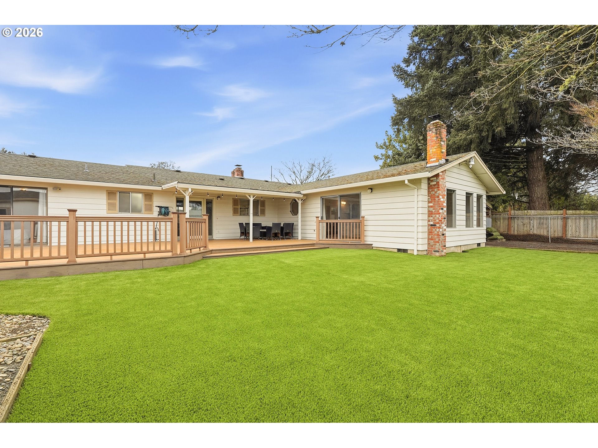 - Welcome home to this charming 3 bed + 2 bath single-level in the heart of Forest Grove, complete with RV parking and thoughtful updates throughout. Step inside to a cozy living room anchored by a charming wood stove, creating a warm and inviting space to unwind. The home flows seamlessly into the dining area, where glass doors open to a spacious deck overlooking the new beautifully designed turfed backyard and zero homes behind! The kitchen has been refreshed with newly painted cabinets, a new sink, and added floating shelves that provide both function and style, making it a welcoming hub for everyday living and entertaining. An extra-large family room offers incredible flexibility featuring a wet bar, fireplace and sliding door access to the deck and backyard. Recent improvements include new LVP flooring throughout, updated interior trim, fresh interior paint, and new light fixtures in the hallways and bedrooms. A new 6 mil vapor barrier was installed and the crawlspace professionally cleaned by Waterproofing Technologies for added peace of mind. Outside, enjoy approximately 1,400 square feet of artificial turf with a full drainage system, complete backyard landscaping with a sprinkler system, a fenced dog run with direct dog door access, and a privacy fence for added comfort. Covered wood storage area and a 12X16 Tuff Shed in back. Conveniently located near Pacific University, Harvey Clark Elementary, Forest Grove High School, and Hazel Sills Park, this home blends comfort, functionality, and location. You won't want to miss this one!