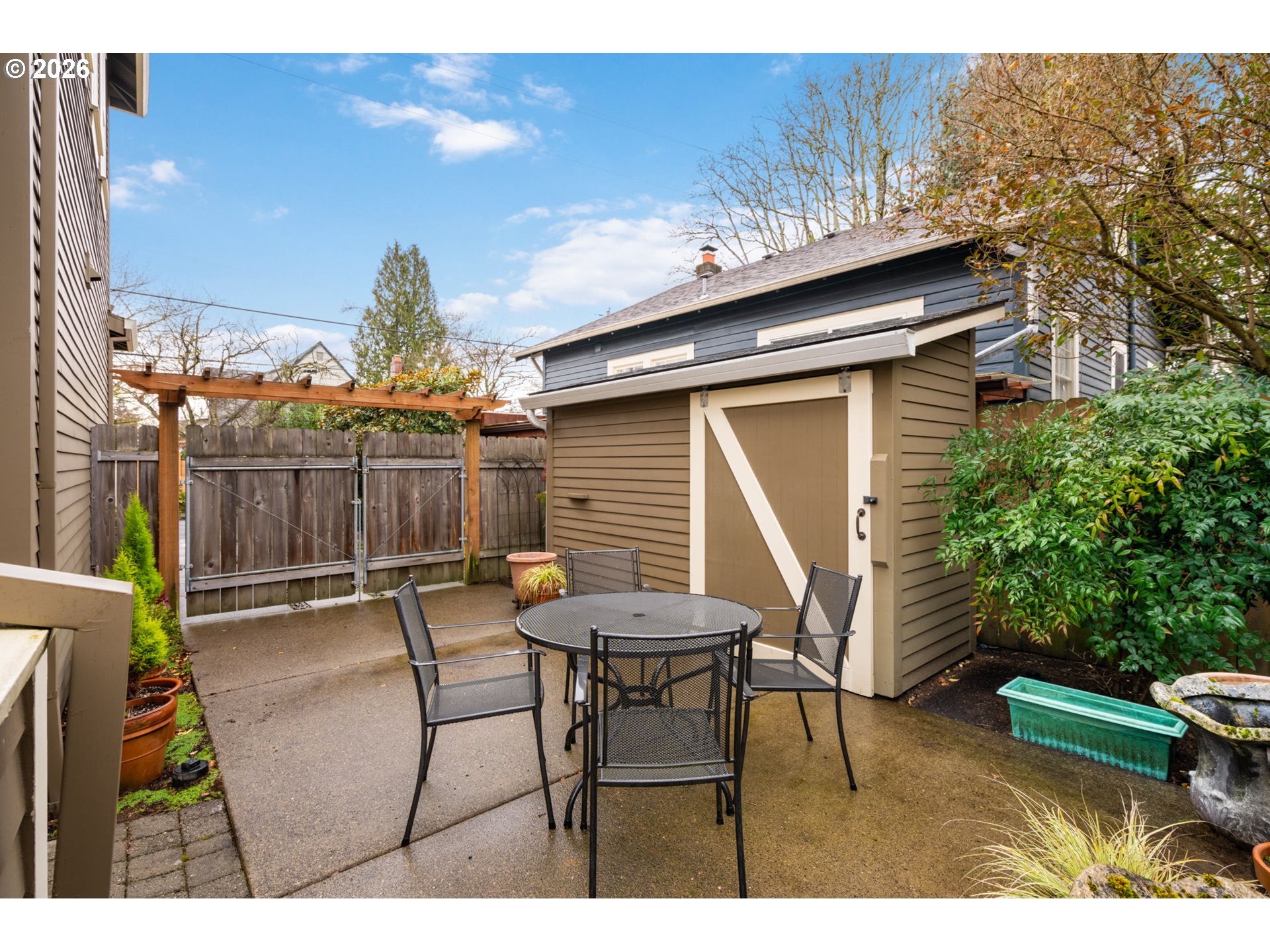 - Sweet Hollywood/Rose City Craftsman with all the luxuries of 2009 construction. This home offers three bedrooms and two full baths upstairs, with spacious living, dining, and kitchen areas on the main level. Enjoy high ceilings, detailed millwork, and the peace of mind of modern systems—updated electrical, PEX plumbing, vinyl windows, and full-home insulation. The old-house charm without the old-house upkeep! Period details include large pocket doors on both sides of the formal dining room, a swinging kitchen door, cozy gas fireplace, wrapped windows, and a built-in storage bench at the base of the stairs. The efficient lot provides a long driveway for off-street parking and gated parking that can double as a patio space. Professional hardscaping and landscaping elevate the curb appeal, while a generous front porch and covered back patio make outdoor living easy in every Portland season. Smart storage throughout with an upstairs laundry closet and cabinetry, linen storage, walk-in and double closets in the bedrooms and attractive outdoor shed. Tile bathrooms, quartz kitchen counters, and a brand-new water heater with alarm and 10-year warranty complete the package. Furnace with new control board and roof are regularly serviced. Totally turnkey, private, low-maintenance, and ideally located—this one has it all.