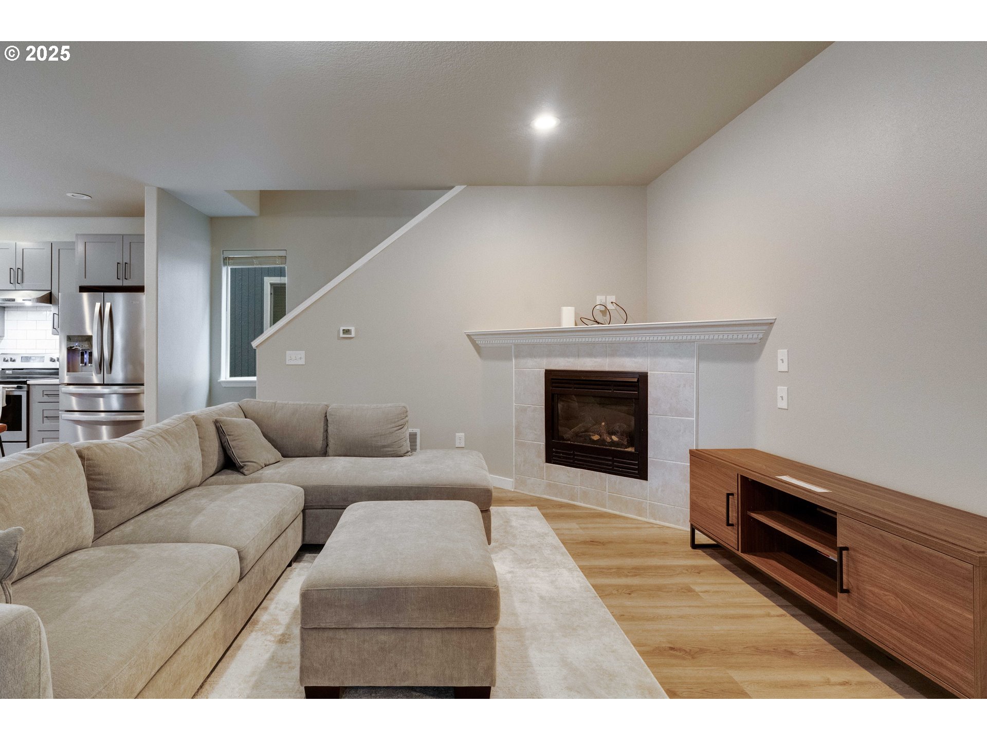 - Tucked along a charming tree-lined street in Beaverton, this stylish 4-bedroom home blends comfort and personality at every turn! Step under the covered entrance into a cozy entry nook, then flow into the open-concept main level featuring a spacious living room with a gas fireplace, a dining area, and a gorgeous kitchen with a large island, stainless steel appliances, tiled backsplash, and tons of cabinet space. A sliding door off the dining area opens to a fully fenced, private backyard—ideal for BBQs, pets, or lazy weekend lounging. Upstairs, all four bedrooms and the laundry room keep things convenient, while the primary suite steals the show with vaulted ceilings and a private en suite. With an attached garage and a bright, inviting layout, this home has all the right vibes for easy living and effortless entertaining!