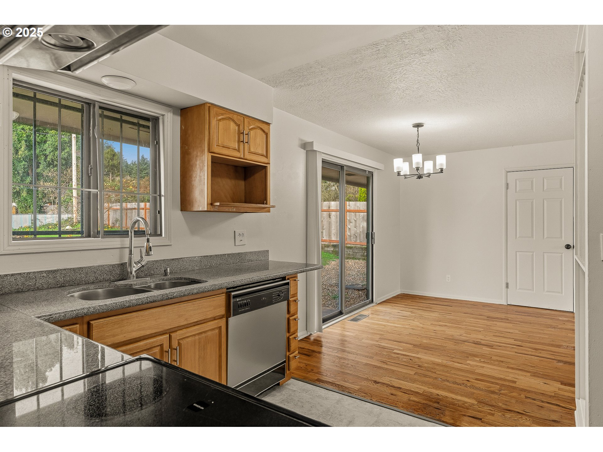 - This well-laid-out single-level home sits on a very large lot with a fully fenced backyard that offers space to spread out, entertain, or simply enjoy the outdoors. Real hardwood floors run throughout, grounding the home with warmth and durability. The living room centers around a fireplace and flows easily into the dining area, where a sliding door connects the kitchen to the back patio and expansive yard. The kitchen features stainless steel appliances and functional workspace, while three comfortable bedrooms are positioned along the hallway near the full bathroom. A separate laundry room and an additional bonus/flex space add versatility for work, hobbies, or extra storage. A covered carport and the home’s straightforward single-story design makes living easy. Located in Portland, this property offers a rare combination of usable interior space and an oversized lot with room to grow. [Home Energy Score = 3. HES Report at https://rpt.greenbuildingregistry.com/hes/OR10196168]