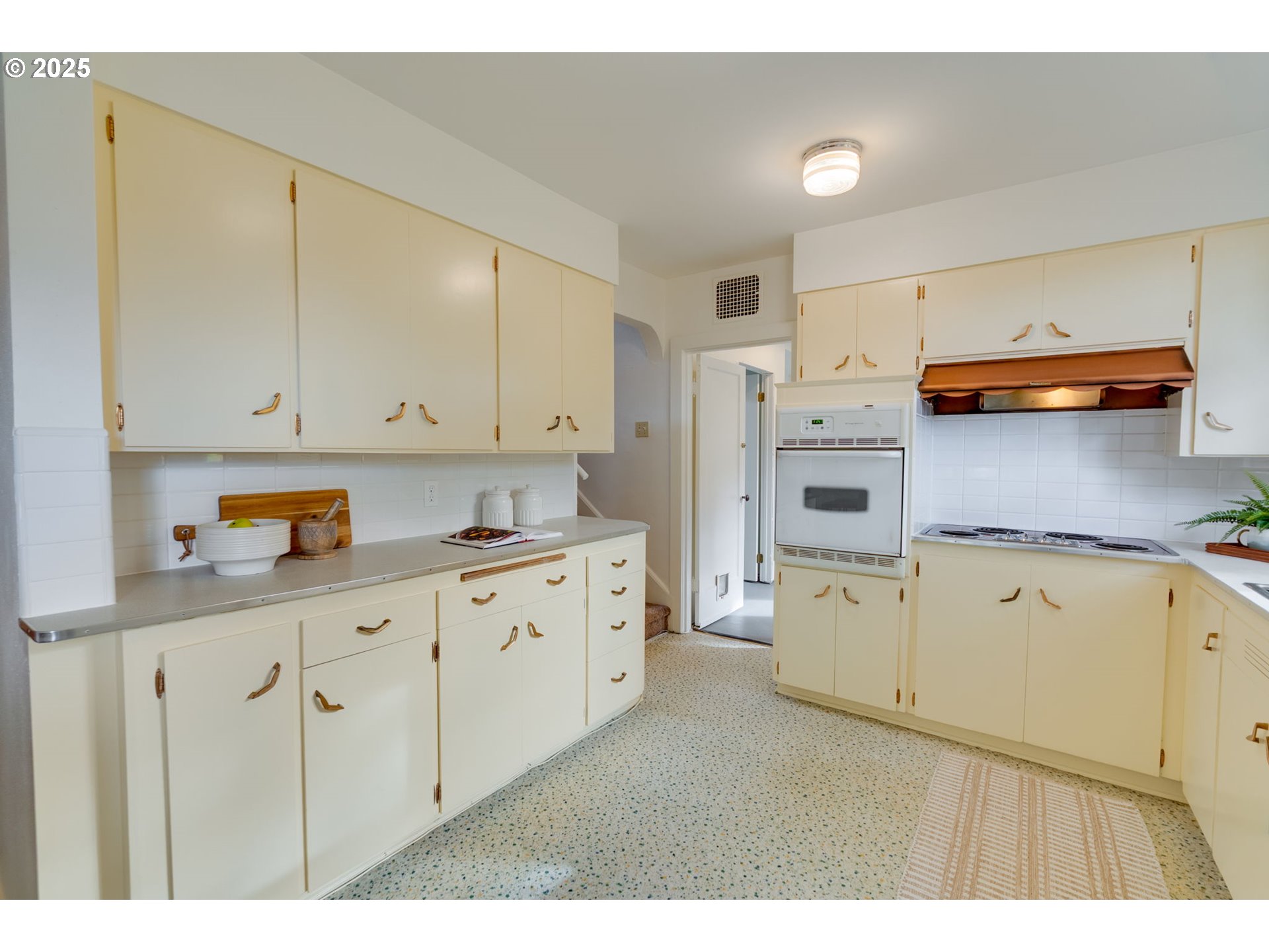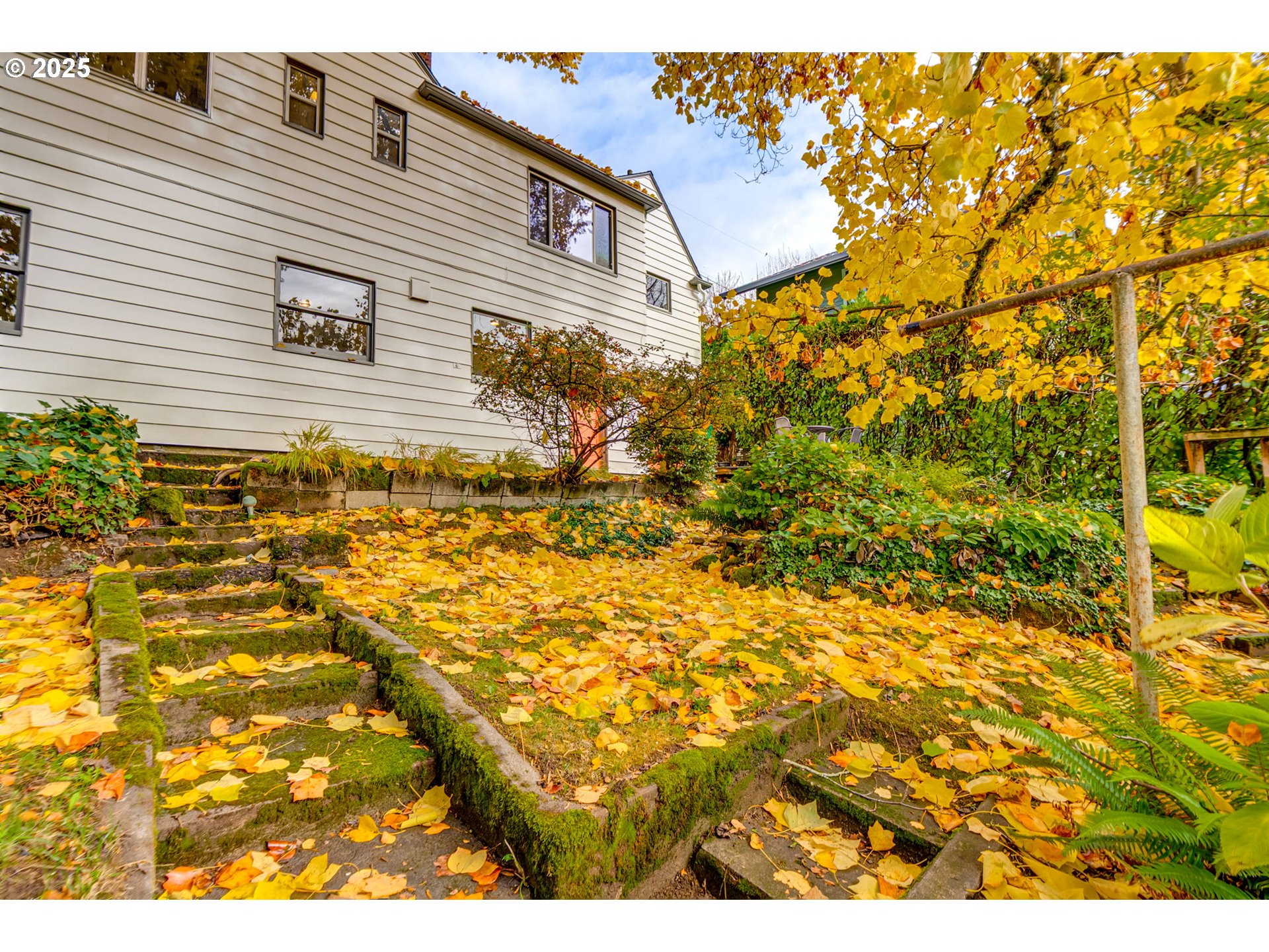 - This charming English Cottage, just blocks from Mt. Tabor Park, offers all the appeal of a tucked-away gem. Light-filled spaces and treetop views create a calming sense of retreat, while the surrounding neighborhood offers some of Portland’s most beloved outdoor trails and scenic vistas. The main floor features a generous living room with wood floors and an inviting nook perfect for reading, writing, or working from home. Two cozy bedrooms and a refreshed vintage bath showcase the home’s character, complemented by thoughtful updates that honor the era. The kitchen, located on the lower level, offers a unique and functional layout with views to the backyard and a connected dining area for everyday meals or intimate gatherings. Original copper hardware, a vintage copper cooktop and range hood, and warm natural light give the space a timeless appeal. The daylight basement provides excellent potential with abundant light, good ceiling height, and a roomy bonus area ideal for an art studio, workshop, or future finished living space. French doors open to the private backyard oasis, where mature trees, lush greenery, and a wood deck perfect for alfresco dining create a serene outdoor haven. Recent improvements include a newer roof, and fresh interior and exterior paint. This is a quaint and delightful home, perched in one of Mt. Tabor’s most sought-after pockets. It’s an idyllic find for those who appreciate character, location, and the charm of something a little bit special.