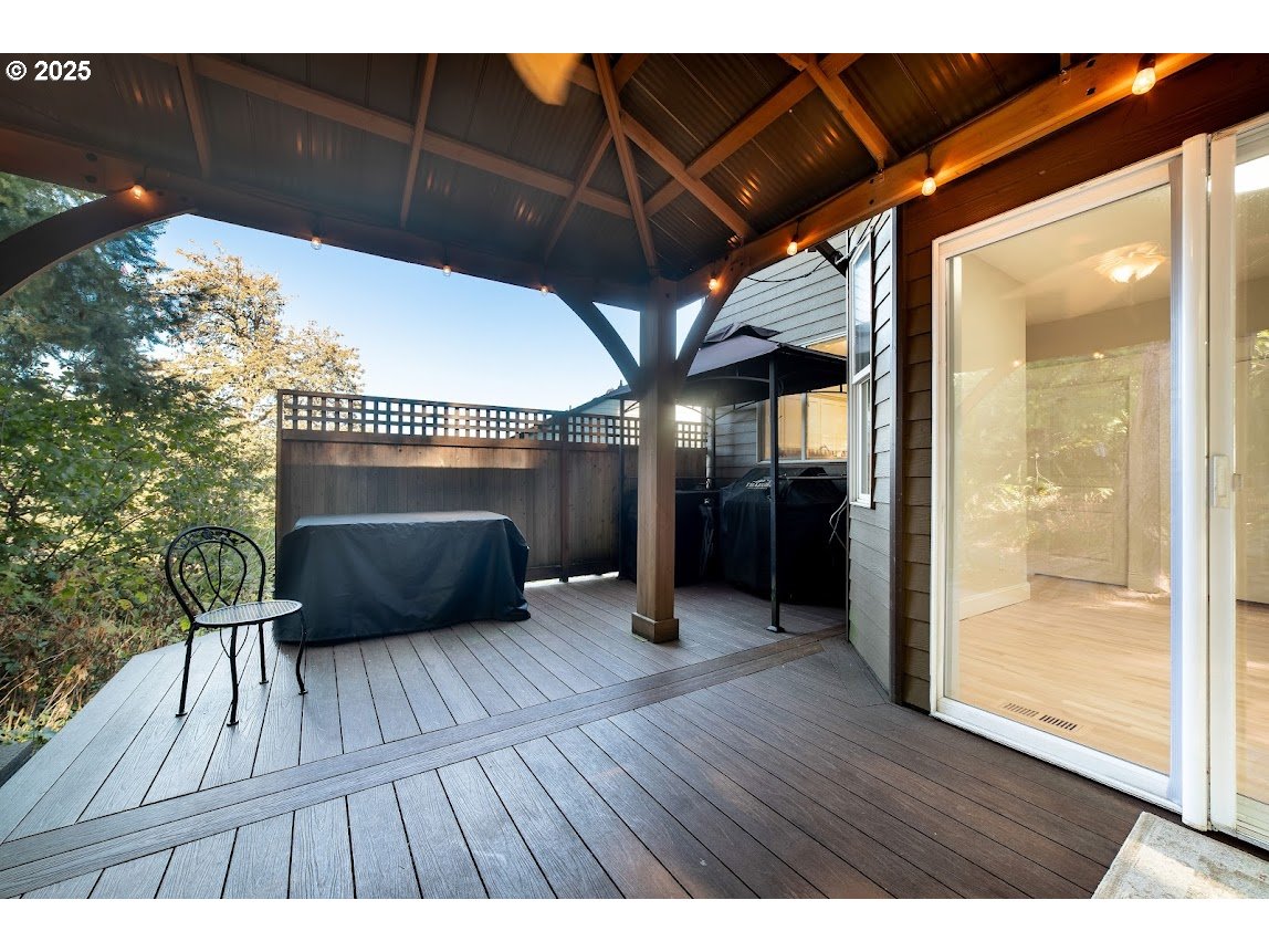 - Experience stunning Mount Hood views from this updated home. Move-in ready and filled with modern upgrades, this home is nestled at the end of a private cul-de-sac. Recent updates include a new roof, gutters and hot water heater. Step inside to discover a freshly updated interior with newly refinished hardwood floors and new carpet underfoot. The kitchen shines with newer quartz countertops, a stylish tile back splash, and a contemporary farmhouse stainless steel sink. Beyond the updated spaces, the versatile floor plan offers 5 bedrooms, or 4 bedrooms plus a perfect work-from-home office. Outside, the high-end composite decks feature hidden fasteners for a clean, sleek look, and the newer gazebo provides a perfect spot for outdoor relaxation. Backing onto a lush, protected green space, the private backyard is alive with the sight of mature Douglas firs and local wildlife. Oversized garage has new commercial grade epoxy floor with large separate storage area. Ample storage is available throughout along with four exterior sheds includes one large beautiful she shed. All appliances are included, making this an easy and immediate move. Please be advised that there are security cameras with potential audio on the property.