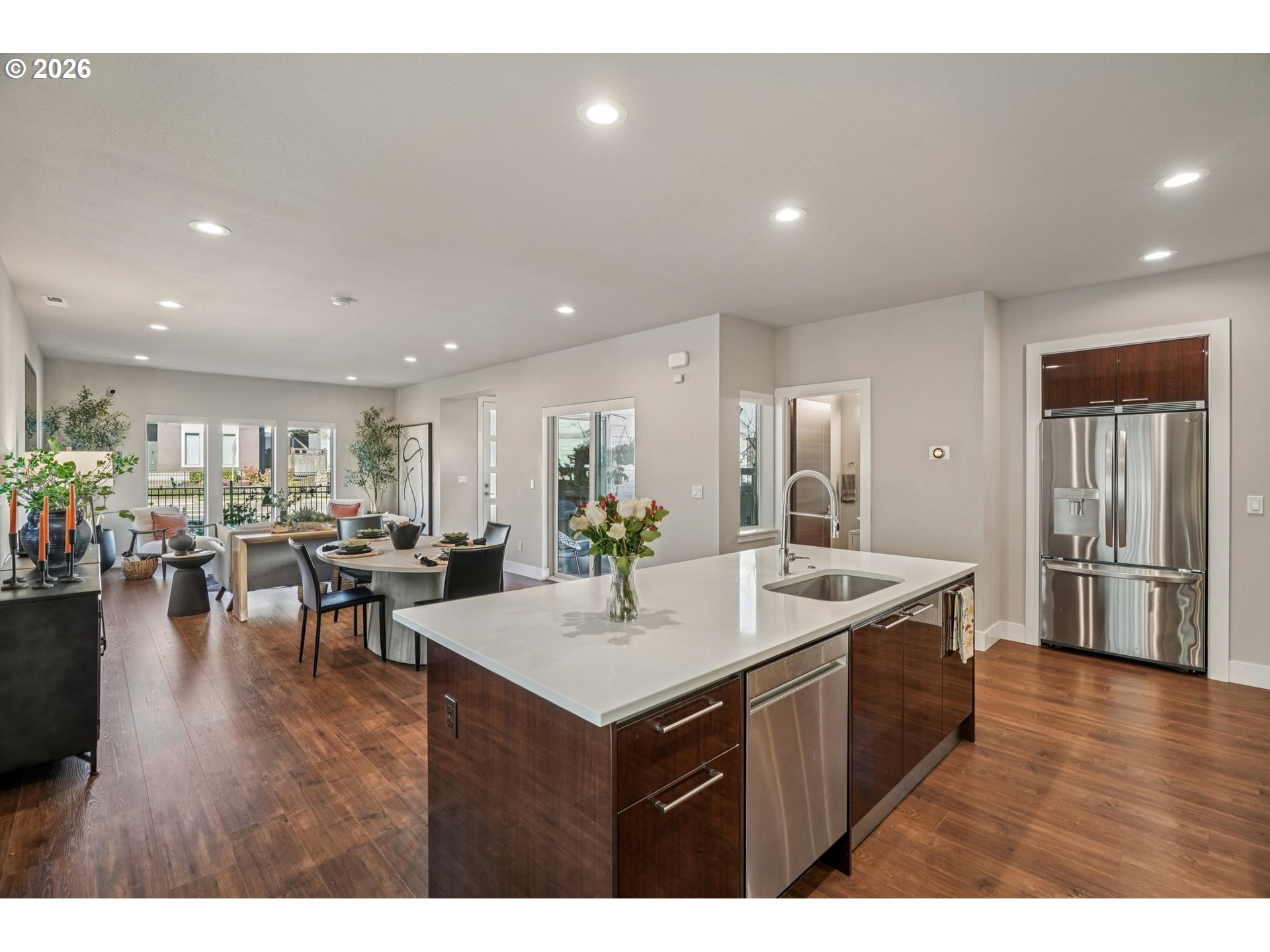 - Welcome Home!This stunning Northwest contemporary residence exudes modern luxury throughout. The gourmet chef’s kitchen boasts self-close piano finish cabinetry, complete with built-in organizers and pull-down shelves, for easy and efficient storage. The home's features include sleek interior doors with magnetic door stops, dual sliding windows, and dual sliding closet doors in the bedrooms, making it easy to keep your belongings neatly tucked away. The spacious upstairs loft creates extra options - game/play area, flex work space, or enclose it to add a fourth bedroom. The large primary suite features an expansive walk-in closet, dual sinks, a relaxing deep tub, and a separate large glass-enclosed shower. The inviting outdoor living space enjoys warm morning sun, cool afternoon shade, and is covered to protect you during our rainy days. The serene side-yard includes low-maintenance artificial grass, and a small pebbled path leading to a small garden to plant your favorite fruits, vegetables, or flowers. The home was built with high-quality panel construction, pre-assembled with wall framing, ensuring not only durability, but also significant energy savings. On top of all of that, you can enjoy all that the community has to offer - walk/bike paths, multiple playgrounds, covered basketball court, pool, clubhouse, and most of all, award-winning schools. This beautiful residence is waiting to be called, “Home”!