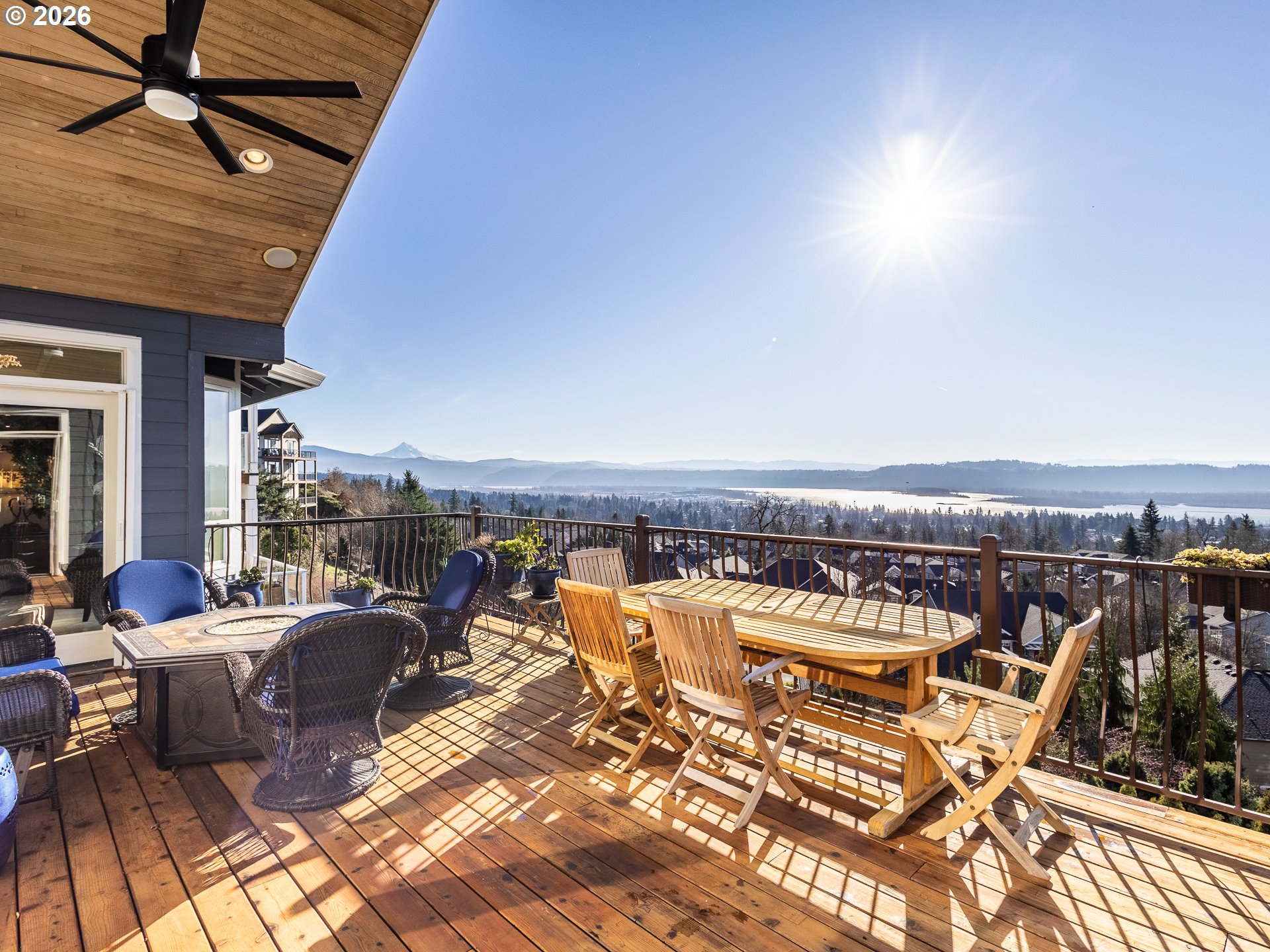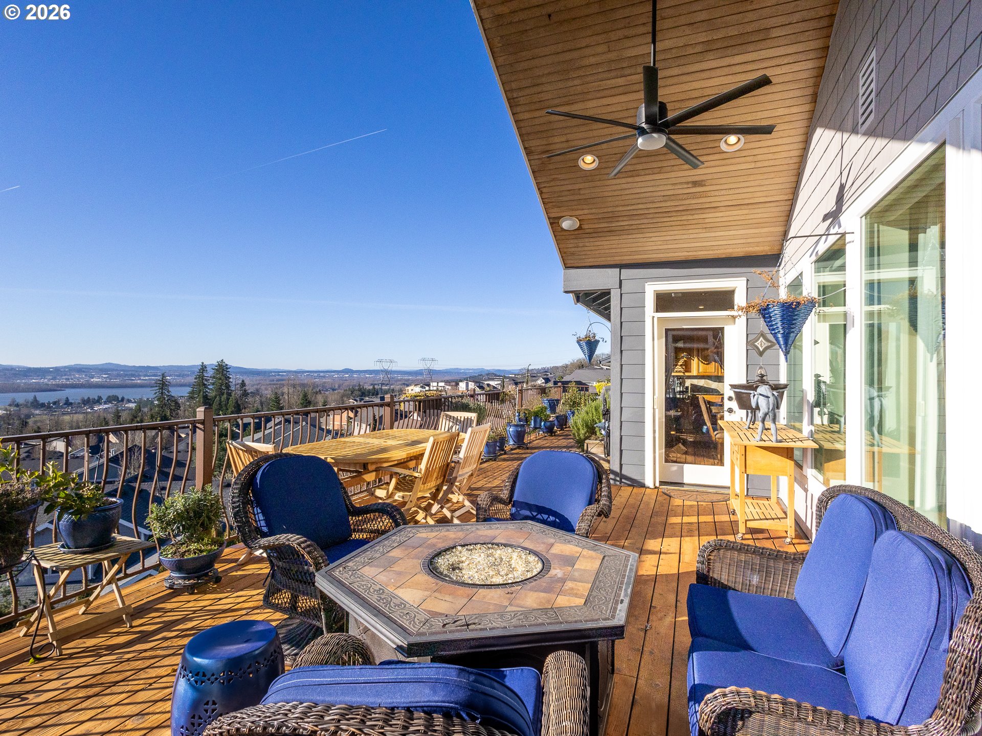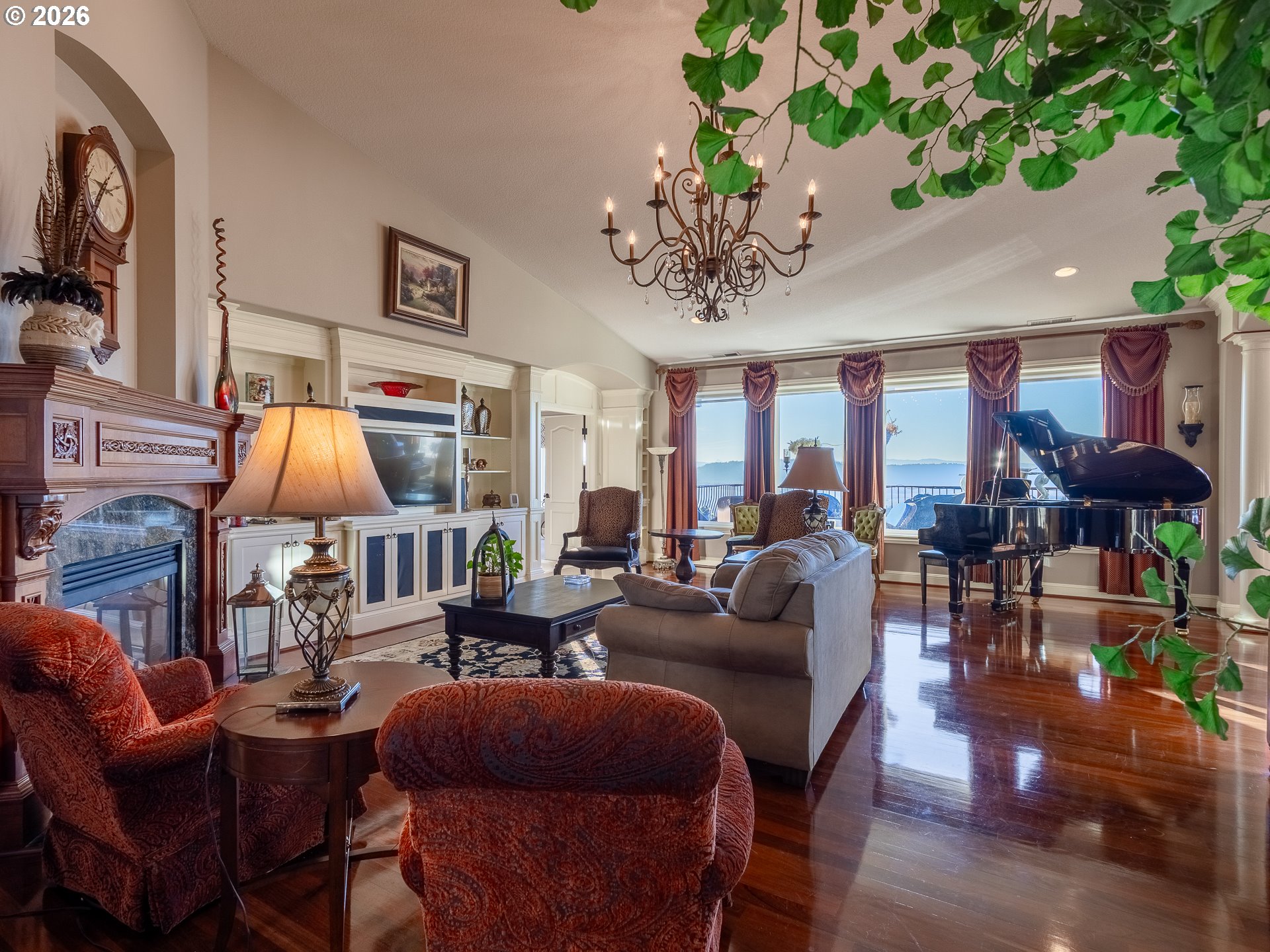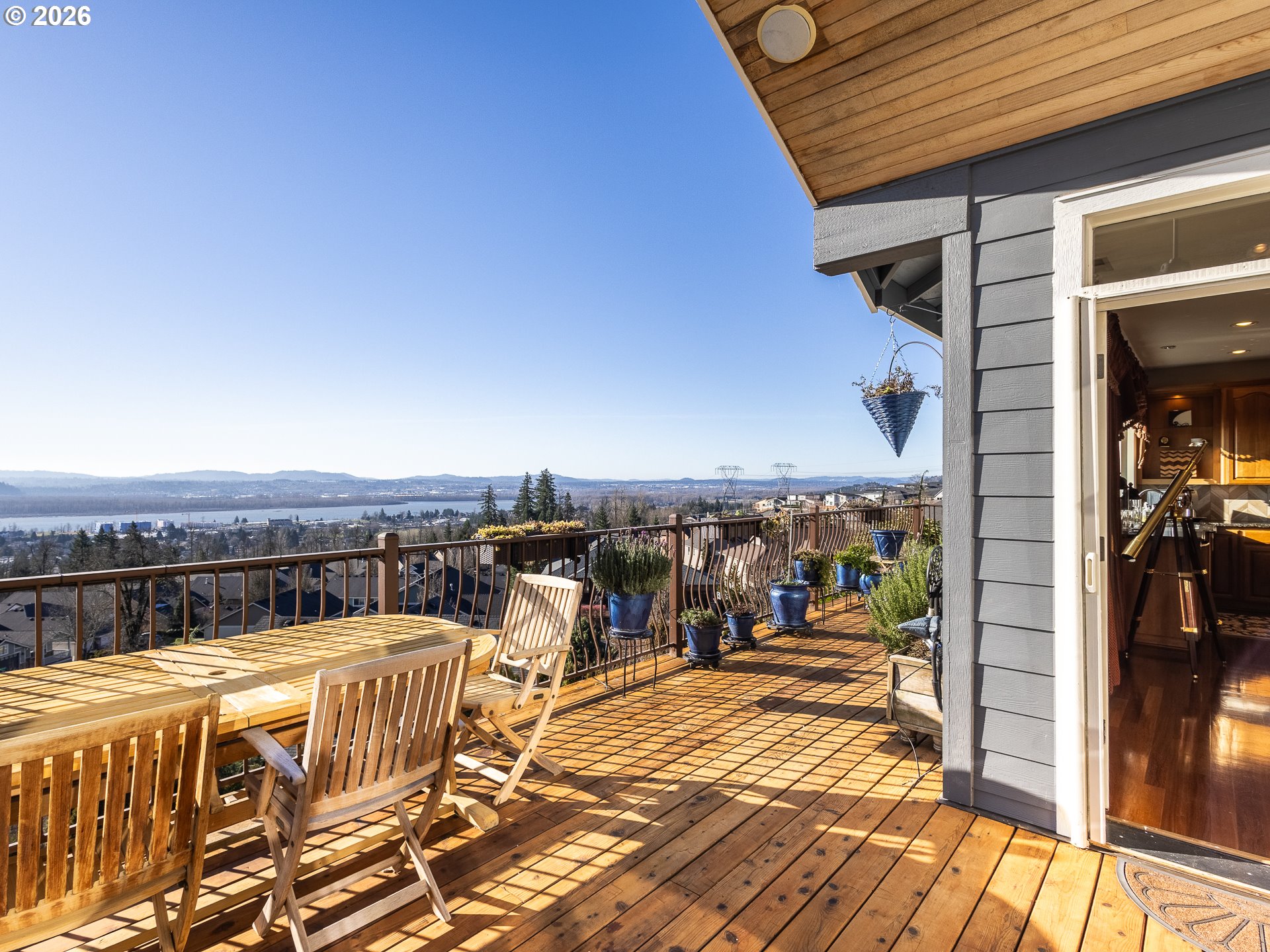 - Breathtaking panoramic views of the Columbia River, Mt. Hood, and the Portland cityscape set the stage for this exceptional 2004 Parade of Homes residence. Offering 4,700+ sq ft, this 4-bedroom, 3-bath home blends luxury, comfort, and thoughtful design.The main level features 2,475 sq ft of single-level, open-concept living with a spacious great room, gourmet kitchen, and a professional office. Brazilian Teak Hardwood floors, south facing picture windows with river views and a gas fireplace make this level a cozy retreat. Also on the main floor are a beautifully refinished full bath with heated floors, a second bedroom, and a laundry room with sink and ample storage. The primary suite is a true retreat, showcasing a bay window with seating area and direct access to the 40+ foot upper level deck. The ensuite bath includes a jetted soaking tub, 8-ft walk-in shower, double vanities, heated floors, and a walk-in closet.The finished lower level offers an additional 2,230 sq ft, including a second primary bedroom with access to the 35' lower deck and hot tub. This level also features a gaming area with wet bar, theater room, wine room, kids’ playroom, fourth bedroom, updated third bath with heated floors, and a second laundry/craft room, plus access to 600+ sq ft of storage. Outdoor living is equally impressive with mature landscaping, a putting green, and a fenced raised garden area. The 3-car garage features epoxy flooring and a exterior hot- and cold-water spigot for car washing. Brand-new siding (2025) wraps the entire home.Appliances staying with home. With too many features to capture here, this home truly must be seen in person. See the Features Sheet for additional details.OPEN HOUSE Sat 1/31 11am - 1pm and Sun 2/1 12pm - 2pm.