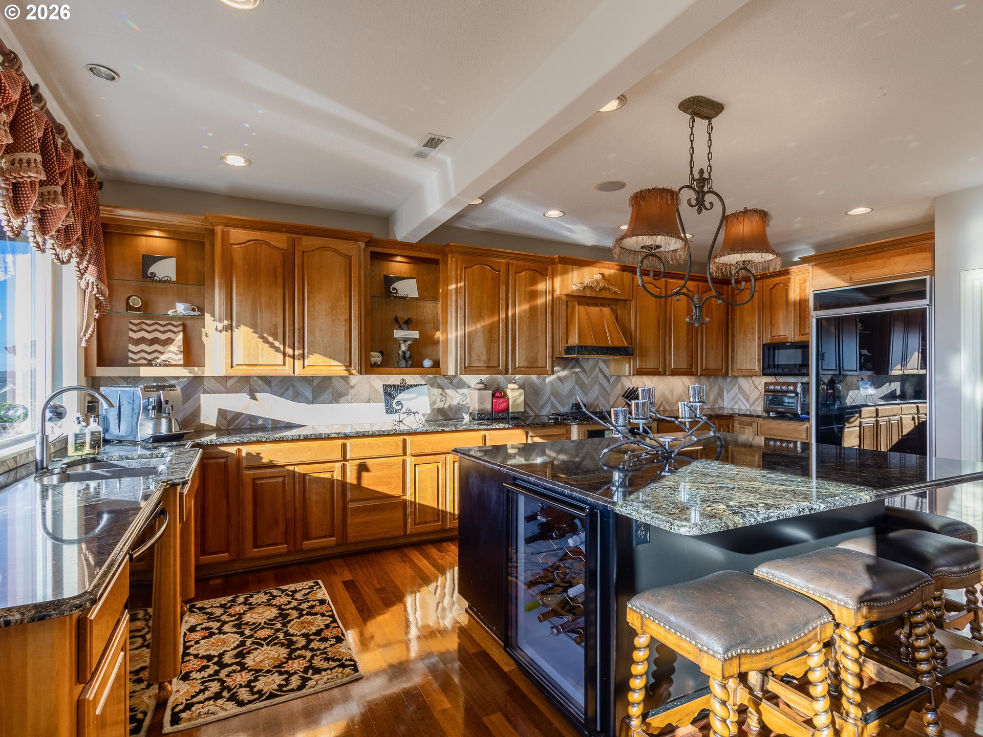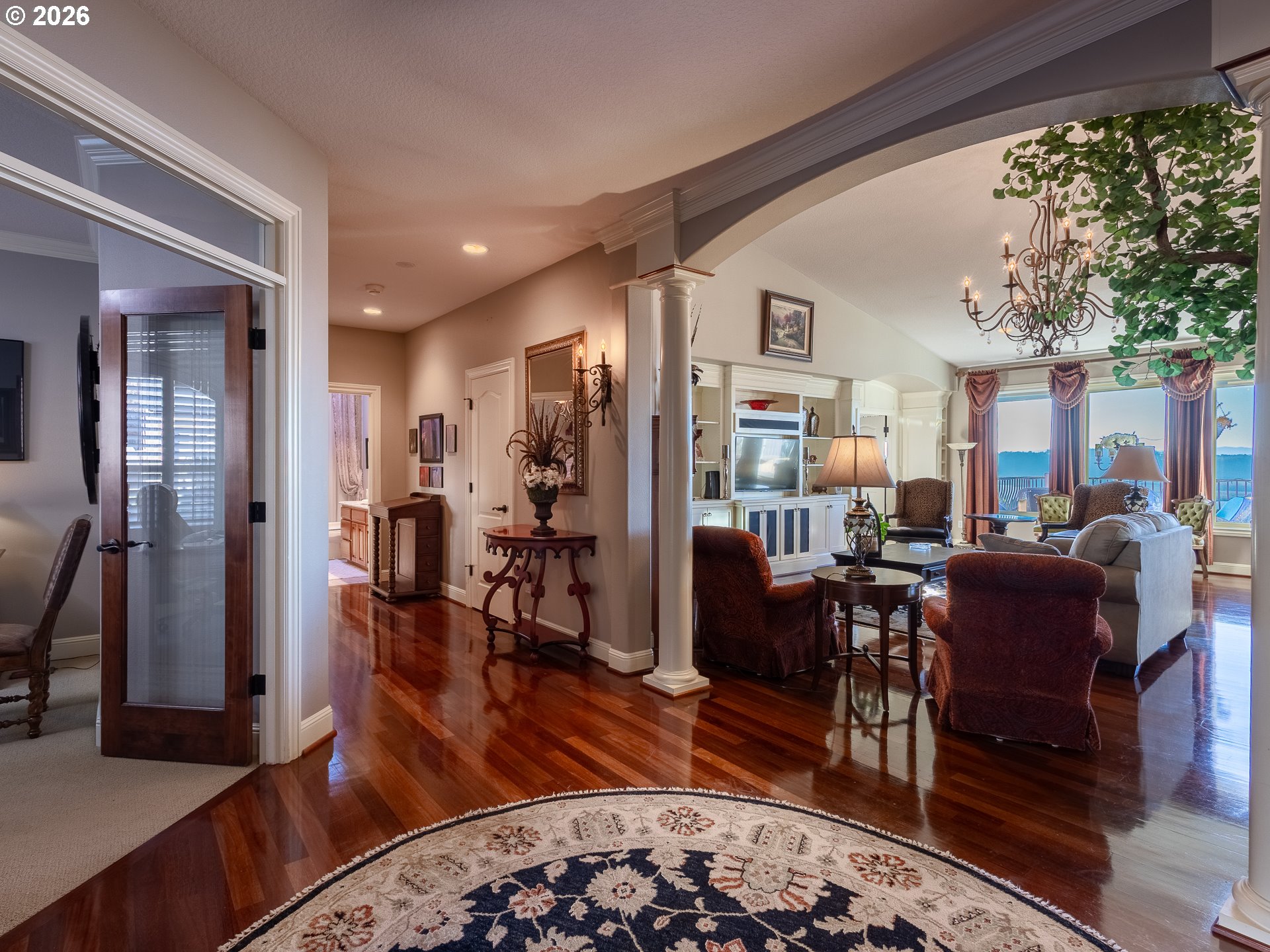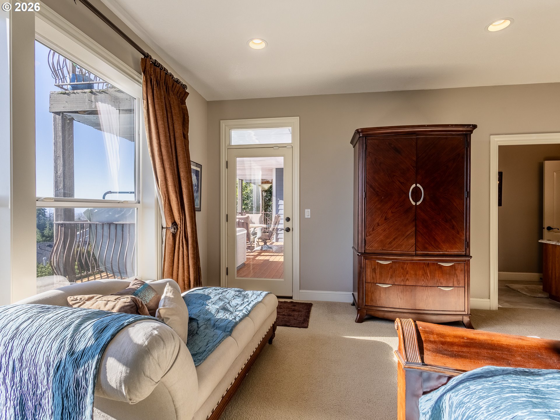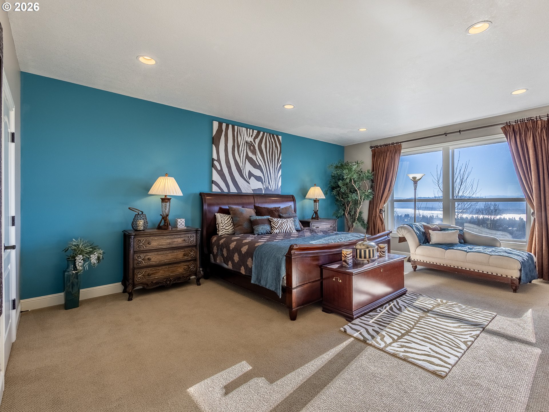 - Breathtaking panoramic views of the Columbia River, Mt. Hood, and the Portland cityscape set the stage for this exceptional 2004 Parade of Homes residence. Offering 4,700+ sq ft, this 4-bedroom, 3-bath home blends luxury, comfort, and thoughtful design.The main level features 2,475 sq ft of single-level, open-concept living with a spacious great room, gourmet kitchen, and a professional office. Brazilian Teak Hardwood floors, south facing picture windows with river views and a gas fireplace make this level a cozy retreat. Also on the main floor are a beautifully refinished full bath with heated floors, a second bedroom, and a laundry room with sink and ample storage. The primary suite is a true retreat, showcasing a bay window with seating area and direct access to the 40+ foot upper level deck. The ensuite bath includes a jetted soaking tub, 8-ft walk-in shower, double vanities, heated floors, and a walk-in closet.The finished lower level offers an additional 2,230 sq ft, including a second primary bedroom with access to the 35' lower deck and hot tub. This level also features a gaming area with wet bar, theater room, wine room, kids’ playroom, fourth bedroom, updated third bath with heated floors, and a second laundry/craft room, plus access to 600+ sq ft of storage. Outdoor living is equally impressive with mature landscaping, a putting green, and a fenced raised garden area. The 3-car garage features epoxy flooring and a exterior hot- and cold-water spigot for car washing. Brand-new siding (2025) wraps the entire home.Appliances staying with home. With too many features to capture here, this home truly must be seen in person. See the Features Sheet for additional details.OPEN HOUSE Sat 1/31 11am - 1pm and Sun 2/1 12pm - 2pm.