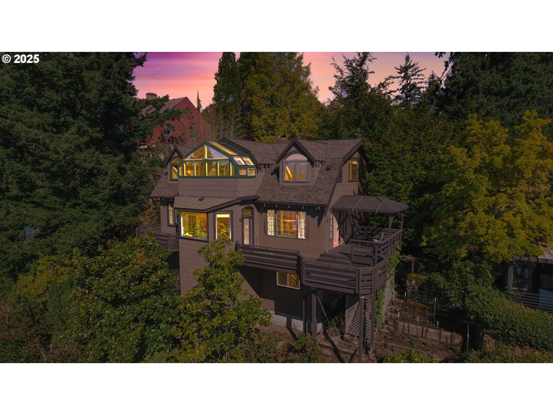 - Perched atop Portland’s iconic Alameda Ridge, this unique 1911 home blends early 20th-century craftsmanship with modern updates and creative spaces. With 4 bedrooms, 3 bathrooms, and almost 4,000 square feet of finished living space, this residence is located in one of the city’s most desirable historic neighborhoods. Inside, you’ll find period details such as hardwood floors, detailed millwork, and a classic fireplace, along with abundant natural light. Expansive decks off the main level provide perfect outdoor perches with sweeping views toward downtown Portland and the West Hills — a hallmark of Alameda Ridge living. The spacious primary suite is a true retreat, featuring a wet bar, sitting area, jacuzzi tub, deck and office. The terraced yard is thoughtfully landscaped and includes a tranquil “waterfall” feature, creating a peaceful outdoor sanctuary. Unique to this property are its artist studio and shop, offering flexible space for creative work, hobbies, or expanded storage.