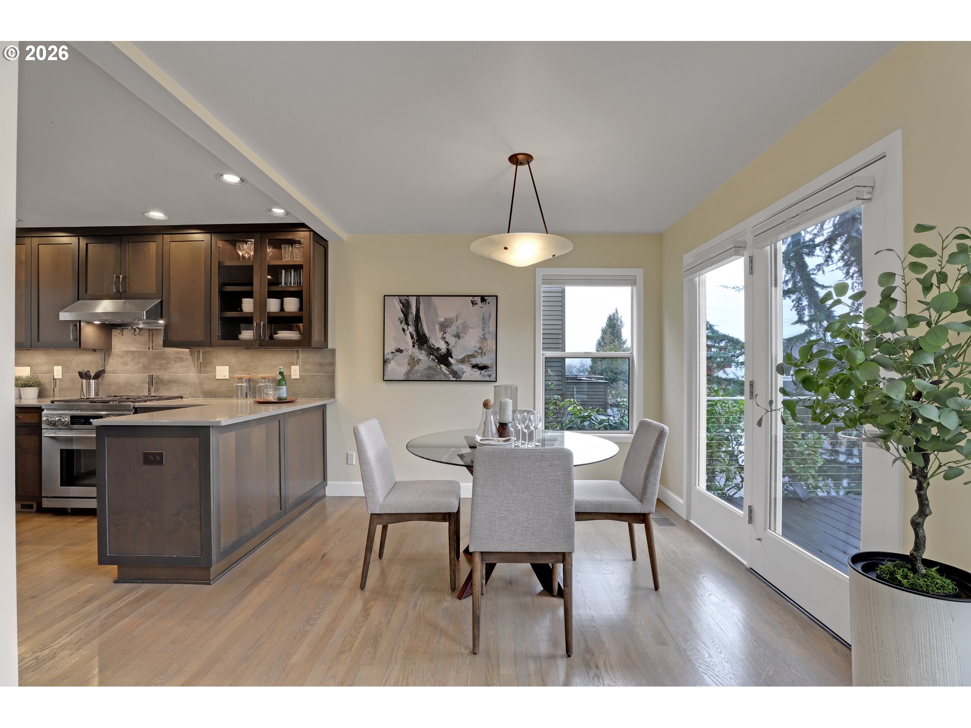 - Ideally perched to capture expansive views, this sharp 90's modern sits up the slope from John's Landing and all it has to offer. Soaring ceilings, ample windows and hardwood floors make for light filled airy spaces. Fabulous updated kitchen with Dacor range, quartz counters and plenty of storage. Rooms on all floors offer flexible spaces to accommodate a range of needs for bedrooms and office spaces. Outdoors one finds a low maintenance yard with recently updated irrigation, covered patio great for all seasons and a deck positioned to take in mountain, river and territorial views. Comfortable living conveniently positioned for downtown or OHSU commute as well as proximate river access for summer SUPing or kayaking. [Home Energy Score = 3. HES Report at https://rpt.greenbuildingregistry.com/hes/OR10243605]