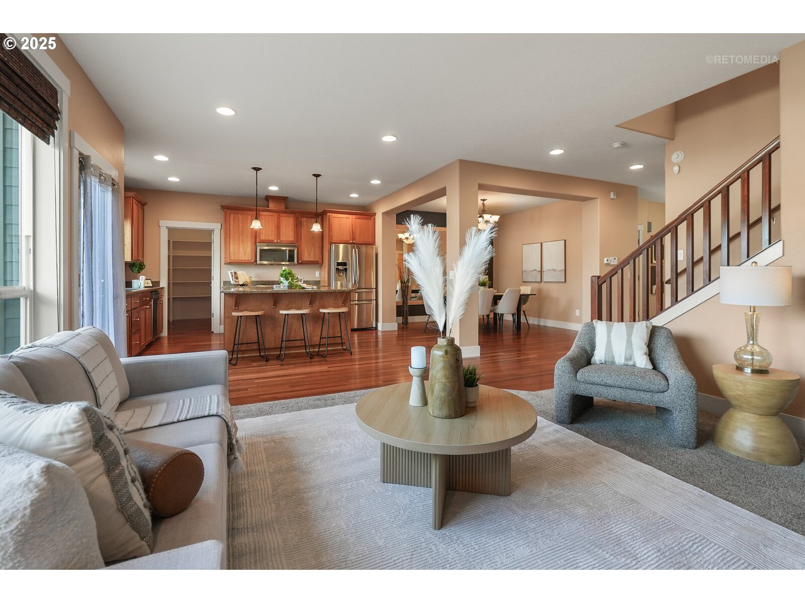 - Beautifully designed and ideally located, this Sherwood home offers a functional and versatile floor plan with room for everyone. Featuring 4 bedrooms upstairs, plus a large bonus (or 5th bedroom), an open loft, and a main-level office or guest bedroom, the layout provides exceptional flexibility. The kitchen shines with cherry cabinetry, rich-toned hardwoods, slab granite countertops, stainless steel appliances, a walk-in pantry, and a large island that flows into the dining and great room with access to the paved outdoor living area... perfect for easy maintenance and year-round enjoyment. Upstairs, an open bonus loft leads to additional rooms. The spacious primary suite features tray ceilings, dual vanity bath, soaking tub, and walk-in closet with built-ins. Just steps to Sherwood Middle School, wine bar, local salon, gym, parks, walking paths, and Old Town Sherwood, offering dining and local amenities for all ages, you’ll quickly see why you’ll love living here!
