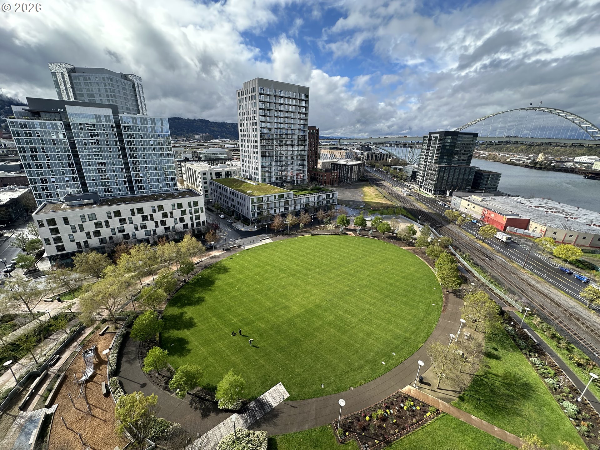 - Perched on the 11th floor of The Encore, one of the Pearl District’s most sought-after buildings, this impeccably maintained residence delivers style, comfort, and unforgettable views. The light-filled open floor plan includes a versatile flex space ideal for a home office, reading nook, or guest accommodations. The kitchen is both stylish and functional with Bosch appliances, quartz slab countertops, and abundant storage. Additional upgrades include a NEW HVAC system and multiple custom closet organizers that make everyday living feel effortless. Step outside onto the expansive 26-foot covered balcony and take in views of the Willamette River, Mt. Hood, and the city skyline. Building amenities include an on-site manager, strong HOA, gym, community room, deeded parking, and storage. Walk out the front door to a 3-acre park - with a fenced off-leash dog area makes life especially easy for four-legged family members. Ovation Café is right downstairs, while breweries, restaurants, fitness studios, and sports venues are all just minutes away. A Perfect place to call home!