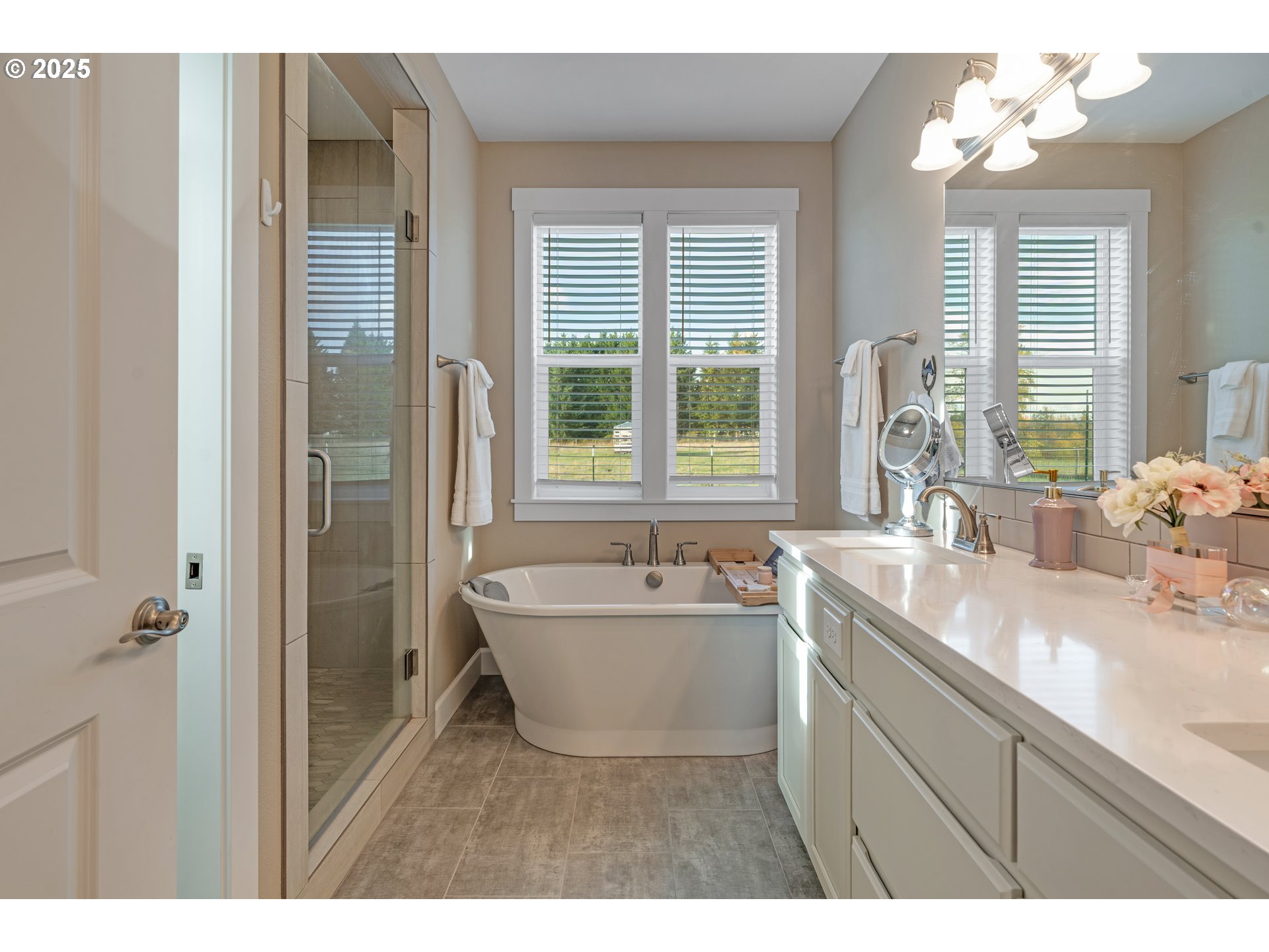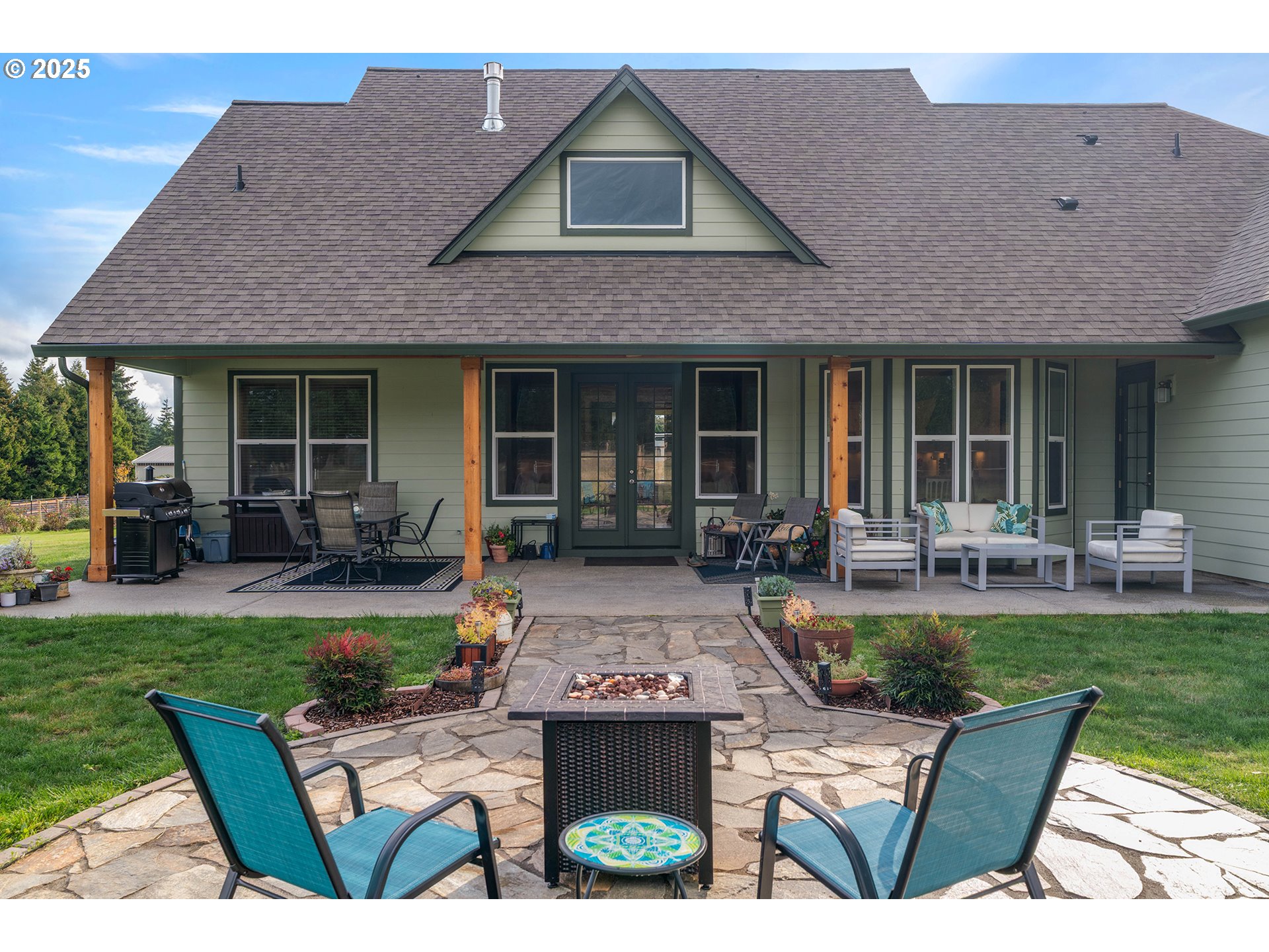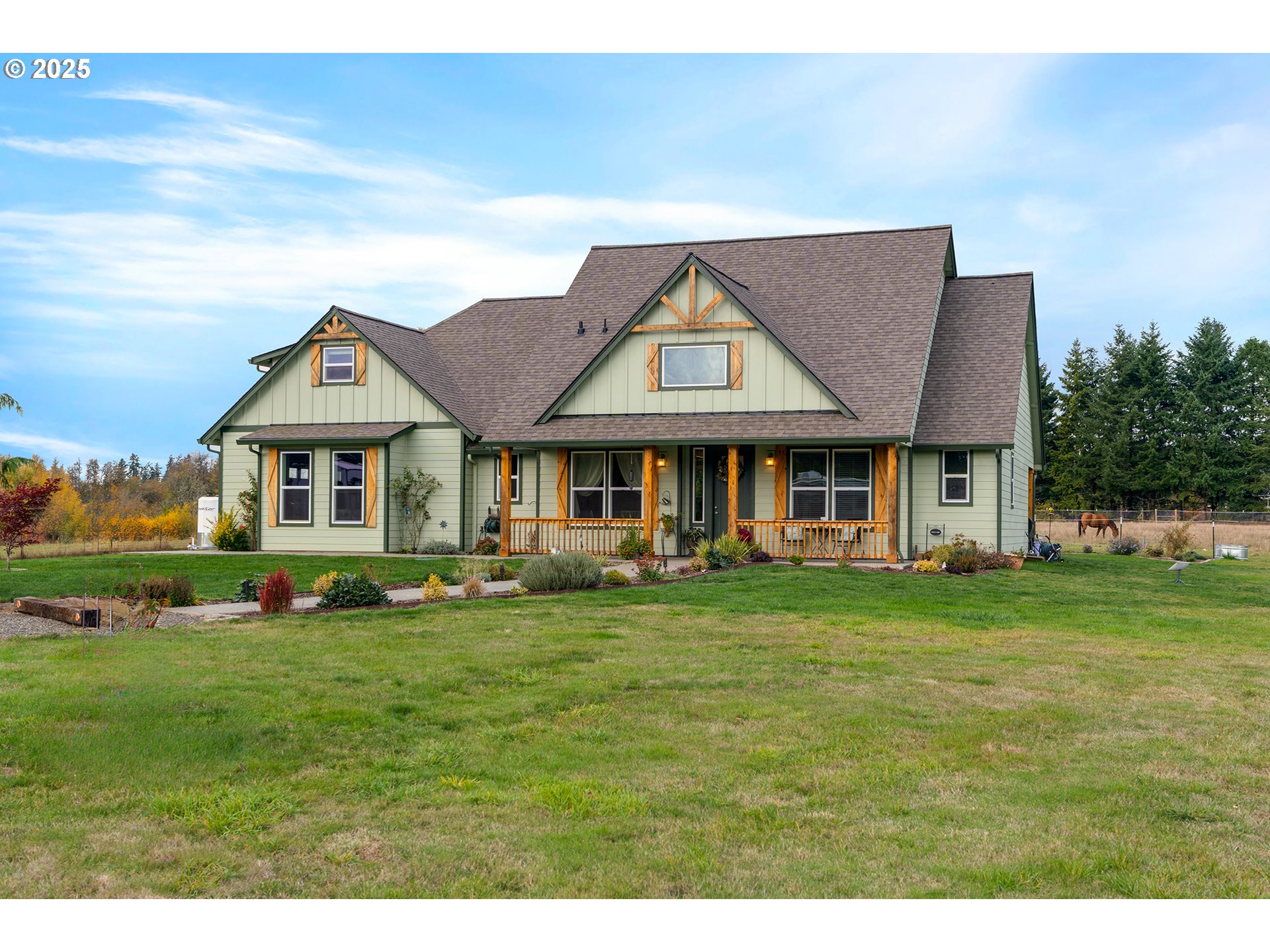 - Discover this stunning 2023-built Craftsman-style equestrian estate on 5 private acres in beautiful La Center, WA. Blending timeless farmhouse charm with modern luxury, this 3-bedroom, 2.5-bath home offers open-concept living, exceptional functionality, and income-producing potential. The inviting covered porch opens to a spacious main floor featuring all 3 bedrooms, including a versatile front room ideal for an office or guest suite, plus a walk-in flex room perfect for storage or hobbies. The gourmet kitchen impresses with stainless steel appliances, a large island, farm sink, tiled backsplash, and abundant cabinetry that flows into the dining area and breakfast nook. The living room stuns with 15-foot ceilings, a floor-to-ceiling stone fireplace, and custom built-ins, while double doors lead to a covered patio and cozy firepit area. The primary suite features cathedral ceilings, a walk-in closet, and a spa-style bath with soaking tub, dual vanities, and tiled shower. Upstairs, a large bonus loft with wet bar and half bath provides flexible space for a media room, gym, or office. Equestrian amenities include a 36’x36’ barn with 3 stalls (one oversize for mare, foal, or stallion), two 18’x24’ turnout paddocks, one 30’x30’ paddock, tack room, storage, and a 90’x145’ outdoor sand arena designed for year-round use. Fully fenced pastures are ready for horses or livestock. The wide driveway accommodates RVs, boats, or income-producing ventures like horse boarding, RV parking, or event hosting. An 8’ deer-fenced garden offers raised beds with roses, berries, blueberries, and fruit trees including apple, cherry, and pear. A large shop provides space for equipment, vehicles, or workspace. Perfect for the equestrian enthusiast or anyone seeking the freedom of country living with modern comforts, this property offers endless opportunities—from small boarding operations and clinics to simply enjoying your own private retreat.