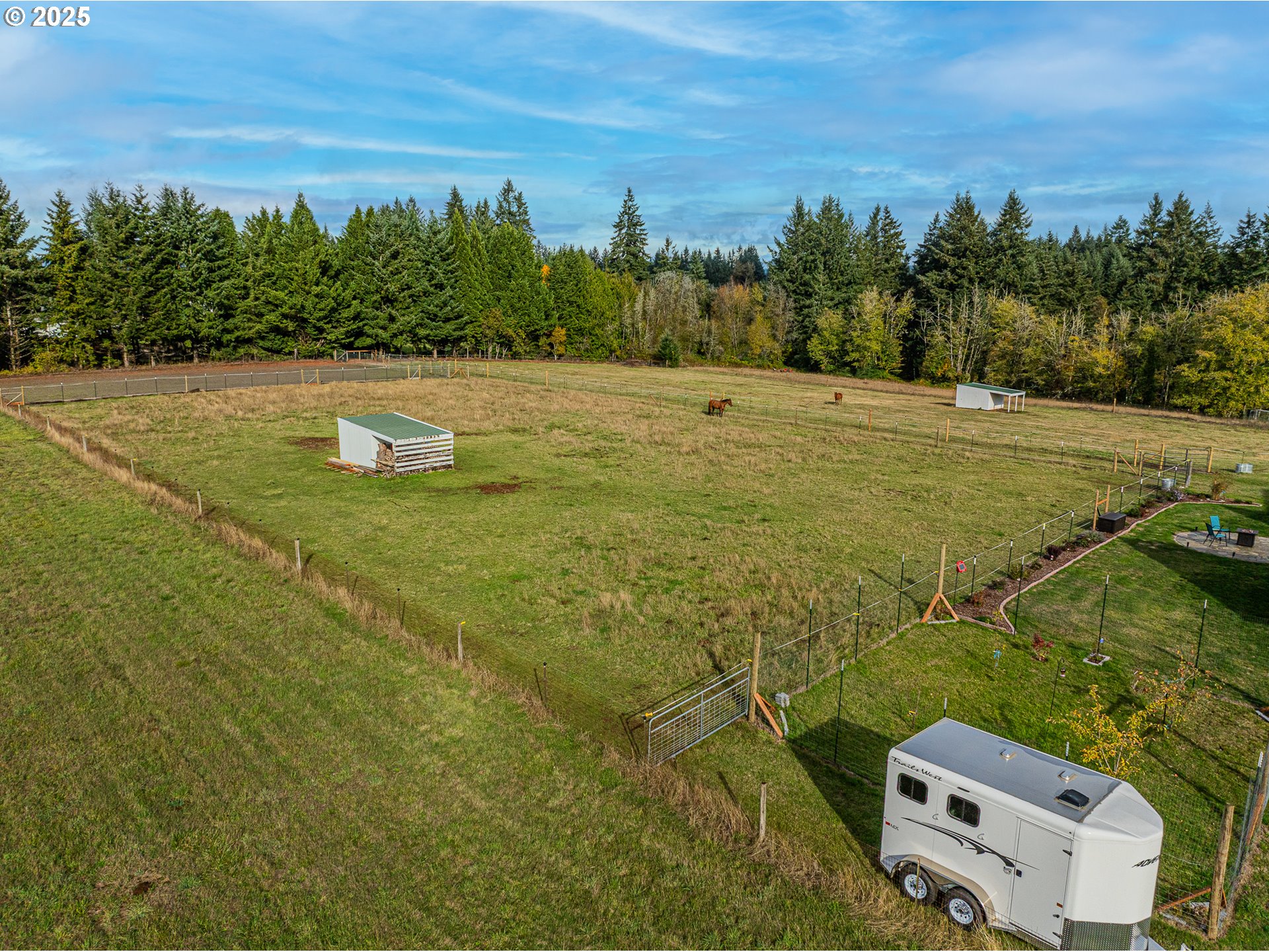 - Arena, Barn(s), Corral(s), Covered Patio, Cross Fenced, Fenced, Garden, Outbuilding, Patio, Porch, Private Road, RV Hookup, RV Parking, RV/Boat Storage, Second Garage, Workshop, Yard