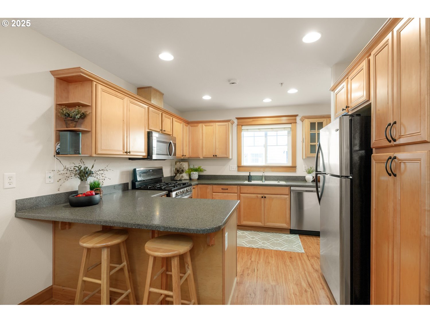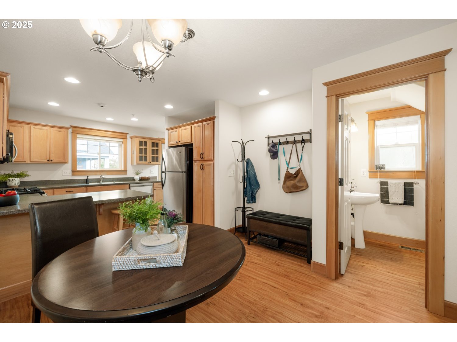 - Welcome to this beautifully maintained 3-bedroom, 3.5-bath end unit townhome with attached garage in the heart of Hillsboro! Spread across three levels, this inviting residence blends modern comfort with classic charm—just blocks from historic downtown. Each bedroom features its own private bathroom, offering plenty of comfort and privacy for everyone. The main level includes a convenient half bath, a bright and spacious living room, and a well-appointed kitchen with gas range, stainless steel appliances, eating bar, generous counter space, and plenty of storage. Enjoy morning coffee on the covered deck or relax next to the fire in the open living room.Easy access to the MAX plus all the vibrant Hillsboro happenings -farmer’s market, shops, restaurants & more! This home offers the perfect combination of style, space, and location—don’t miss it! [Home Energy Score = 6. HES Report at https://rpt.greenbuildingregistry.com/hes/OR10225174]