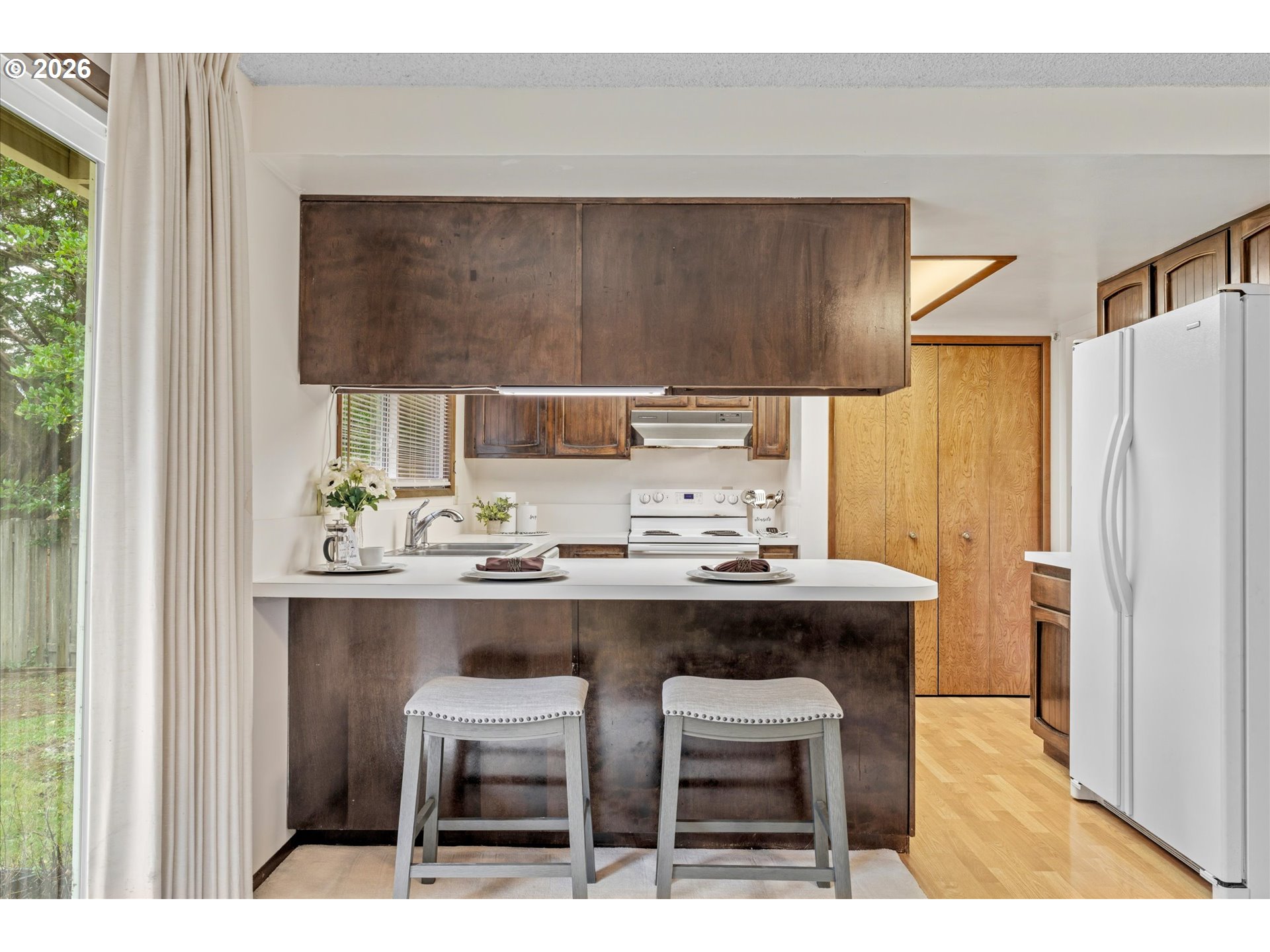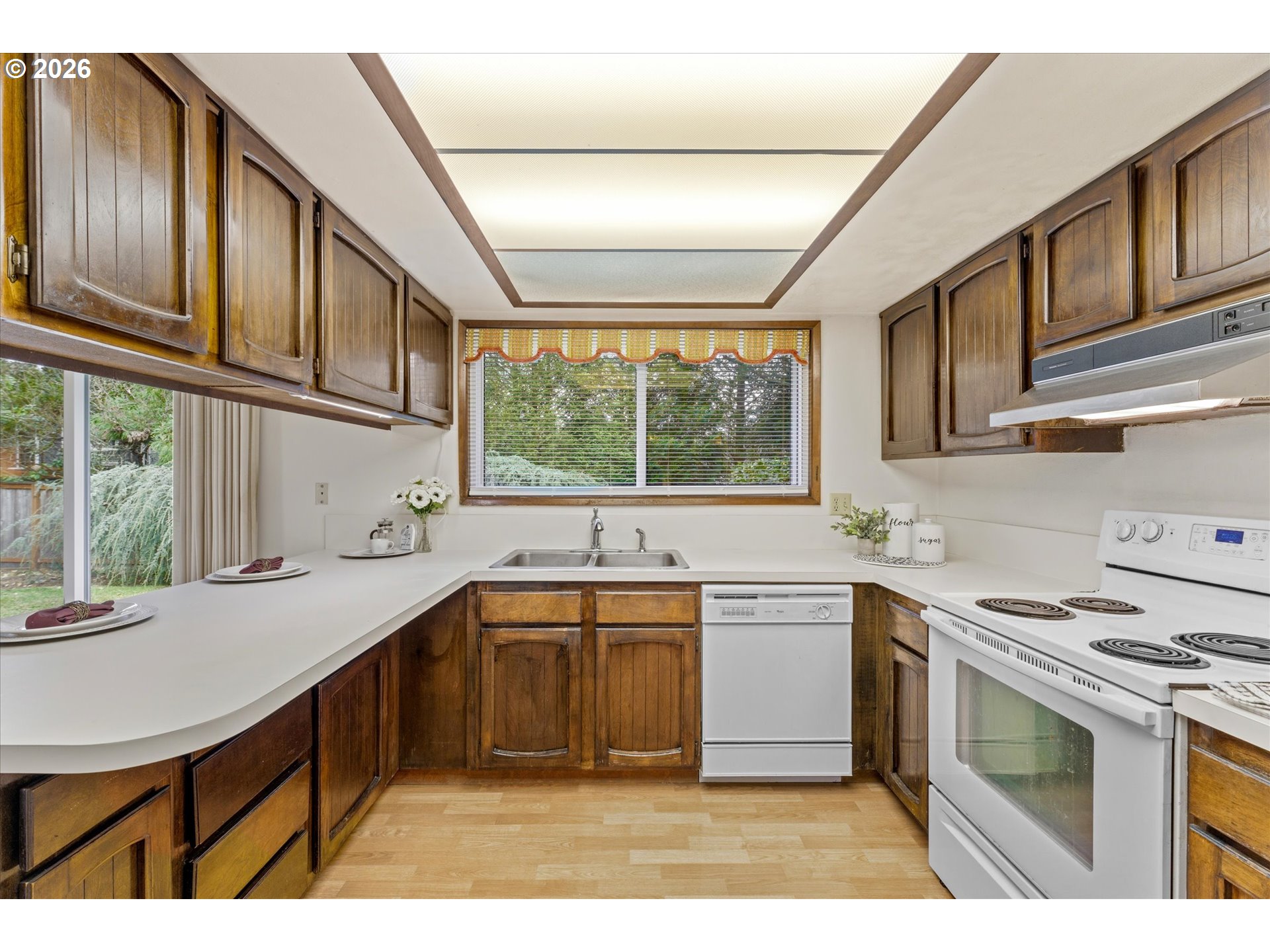 - Coveted Single Level Home in Hyland Hills! Built in 1977 this spacious, 3 Bedroom/2 Bathroom, home has been lovingly cared for by the same Family for over 45 years! After entering through the front courtyard w/Japanese inspired garden, you are greeted with the Vaulted Living Room w/beamed ceiling & floor to ceiling windows. From there the Living Room opens to the Formal Dining Room which opens to the Kitchen, complete w/all appliances, plenty of cabinets, pantry & large eat-at bar, perfect for informal dining. Off the Kitchen is the Family Room w/cozy gas fireplace & slider to backyard patio. Large Primary Suite w/room for a King Size Bed features 2 Closets & attached Bath. 2 additional Spare Bedrooms & Full Hall Bath. Hallway glows w/light from the floor to ceiling windows overlooking the front courtyard. Interior Laundry closet includes Washer & Dryer. 2 Car Oversized Garage w/built-in Storage. Private, level 6970SF fenced lot, w/mature plantings, patio & grassy area, perfect for play, entertaining or gardening. Updates include AC 2025, Furnace 2024, Roof 2023 & Windows 2014. In the heart of it all, close to parks, schools, shopping, Downtown Beaverton, Washington Square, Progress Ridge, Murray Hill & much more…