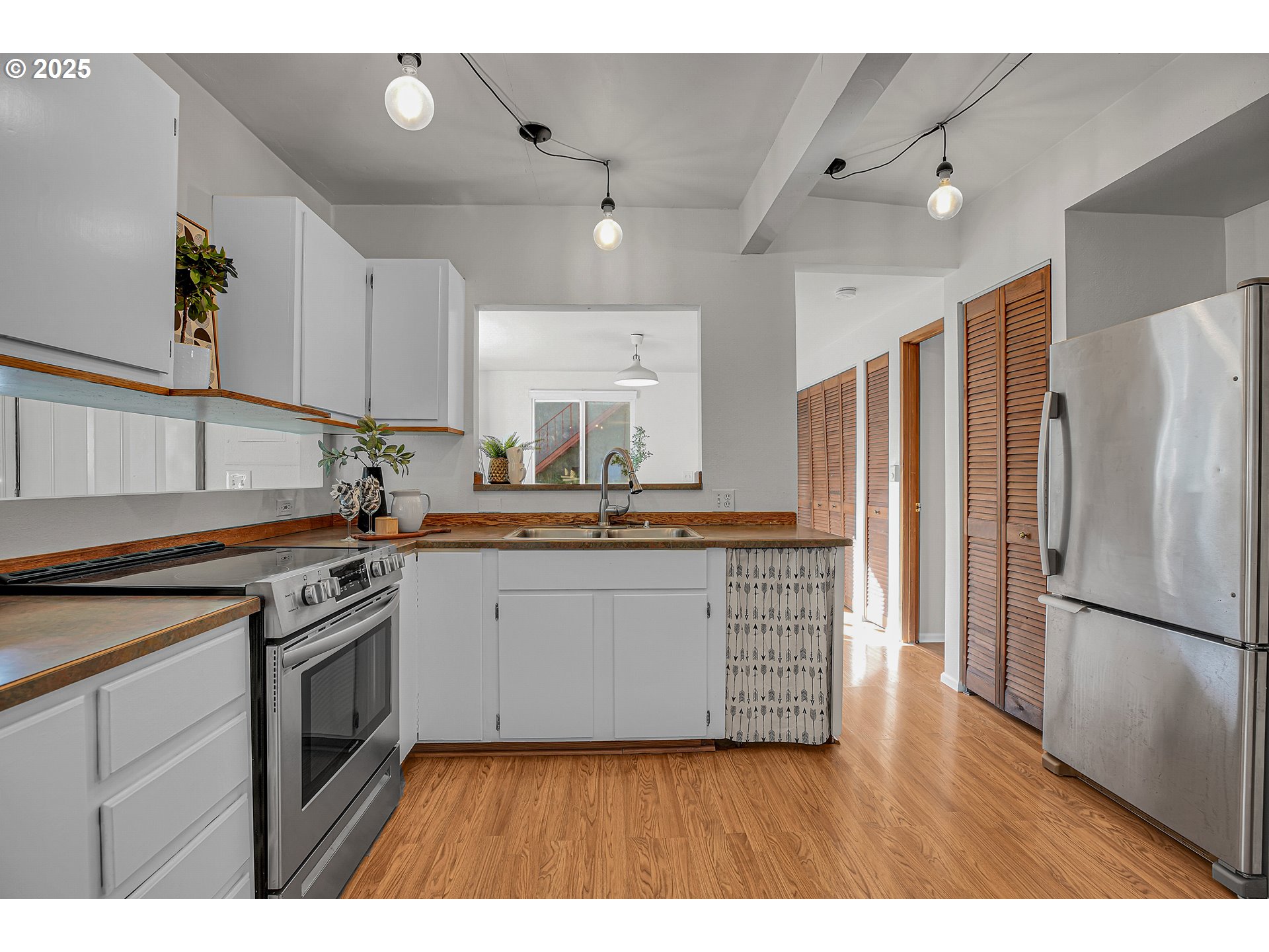 - Price reduced! This sweet North Tabor cottage features a simple yet highly functional layout that lives larger than it looks. The primary bedroom includes a generous walk-in closet and direct access to a covered back patio —perfect for morning coffee or relaxing evenings outdoors. The second bedroom is small, and offers flexibility for a home office, guest room, or creative space (see floor plan for dimensions). Easy, quick access to I-84 and Mt Tabor. An ideal opportunity for first-time buyers looking to own in one of Portland’s desirable neighborhoods! Just a block and a half from Burnside, this home enjoys peaceful surroundings thanks to its tucked-away, downhill setting. Other than a few finishing touches, it is move in ready! Rare 2 car garage, possibly a future ADU? Zoned RM1 with potential for expansion into multi-unit property. Buyer to do due diligence.