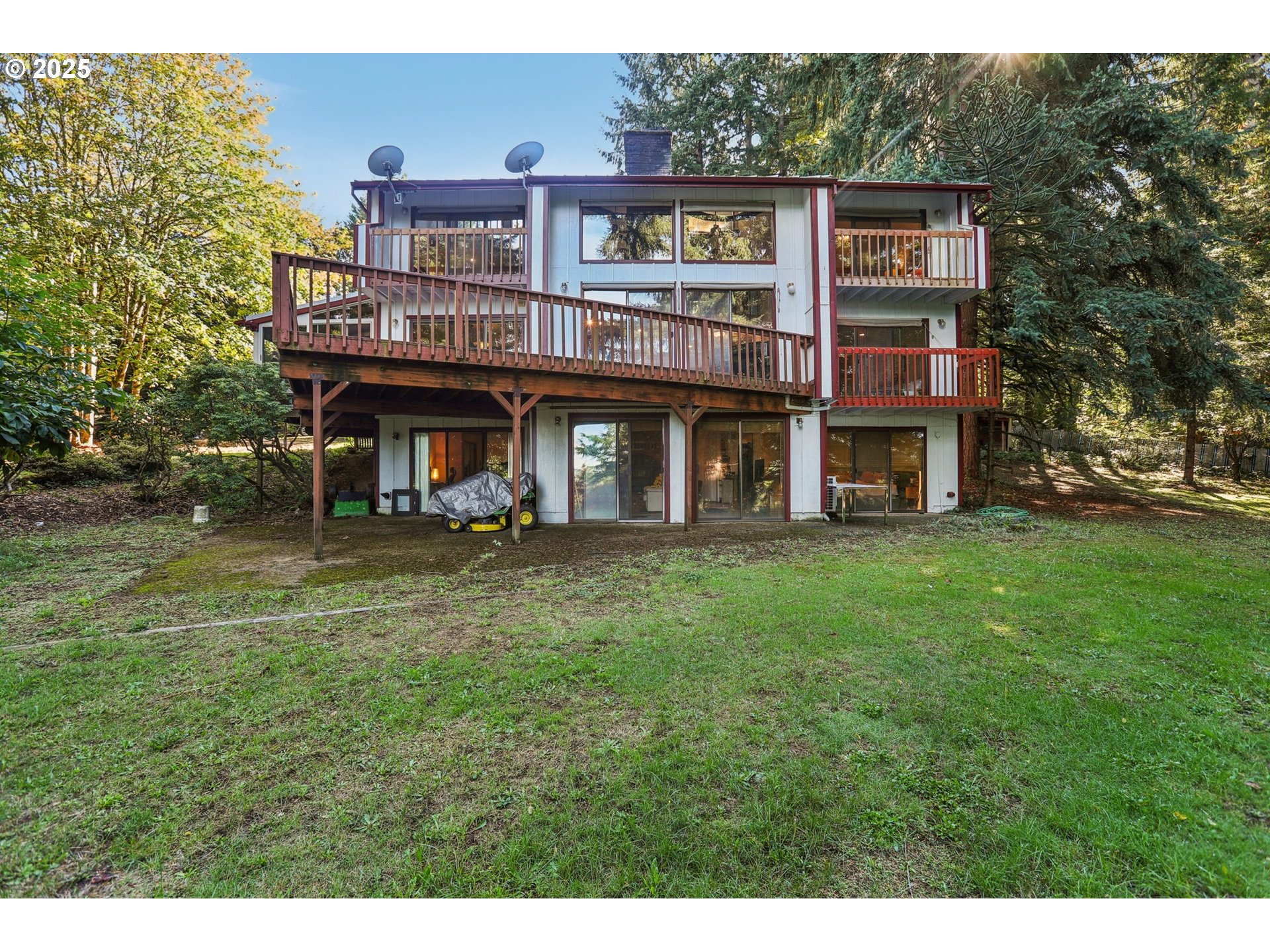 - Located in a quiet, private setting that’s just minutes from shopping, dining, and Hockinson schools. This truly unique custom-built home is surrounded by lush greenery and visiting wildlife. Set on 1.44 serene acres, this property offers endless potential and imagination. The spacious tri-level layout features two primary suites upstairs, each with private baths and balconies. The main level includes a vaulted bedroom and full bath—ideal for guests—along with a vaulted living room with fireplace and a kitchen showcasing granite countertops, stainless steel appliances, and an island. The dining area opens to a bright sunroom with an outdoor kitchen and deck overlooking peaceful wooded views. The finished basement offers a multi-purpose family room with woodstove and patio access, a wet bar, bonus room with built-ins, a fourth bedroom, and a full bath—perfect for extended living or entertaining. A lifetime metal roof provides long-lasting durability and peace of mind.