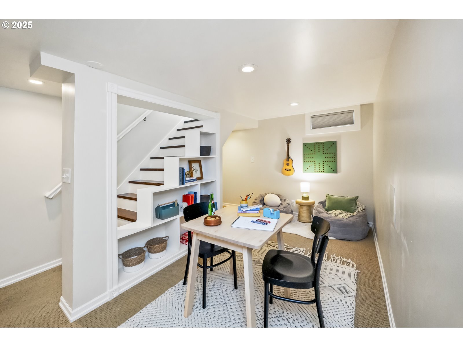 - With original coved ceilings, refinished hardwood floors, and timeless architectural details throughout, this lovely midcentury home pairs 1950s charm with plenty of modern updates. The light-filled main level features a cozy living room with a new gas fireplace insert, two generous bedrooms, and an updated full bath. The remodeled basement adds valuable living space with a third bedroom, a beautifully finished bathroom, and a versatile family or media room. Additional highlights include fresh interior paint, an efficient furnace and A/C, and new blinds and lighting. The attached garage offers built-in wood cabinets and a workshop area for projects and storage. Outside, there is ample space to garden and a paver patio for entertaining and relaxing. Tucked away from the hustle and bustle, this home is ideally located near Woodstock’s popular shops, cafés, and restaurants, Errol Heights City Park, the Springwater Corridor Trail, and Tideman Johnson Natural Area. Unpack and enjoy your new home for the holidays. OPEN HOUSES :: 10/31 4P-6P :: 11/1 12P-2P :: 11/2 11A-1P [Home Energy Score = 3. HES Report at https://rpt.greenbuildingregistry.com/hes/OR10185429]