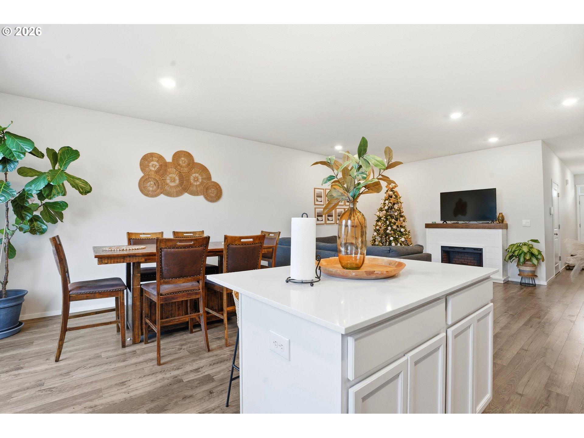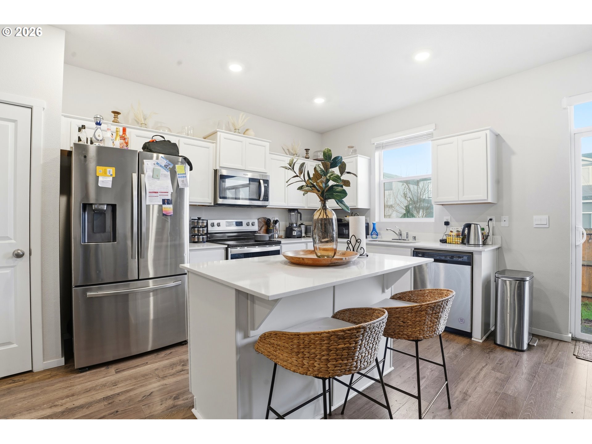 - Welcome to this light and bright home featuring a popular and desirable floor plan. The kitchen offers white cabinetry,quartz countertops, stainless steel appliances, a pantry, and opens to the dining and great room—perfect for everyday livingand entertaining. Enjoy laminate flooring on the main level, smart home features, air conditioning, and a fully fenced yard.Move-in ready and conveniently located near shopping, dining, and commuter routes.