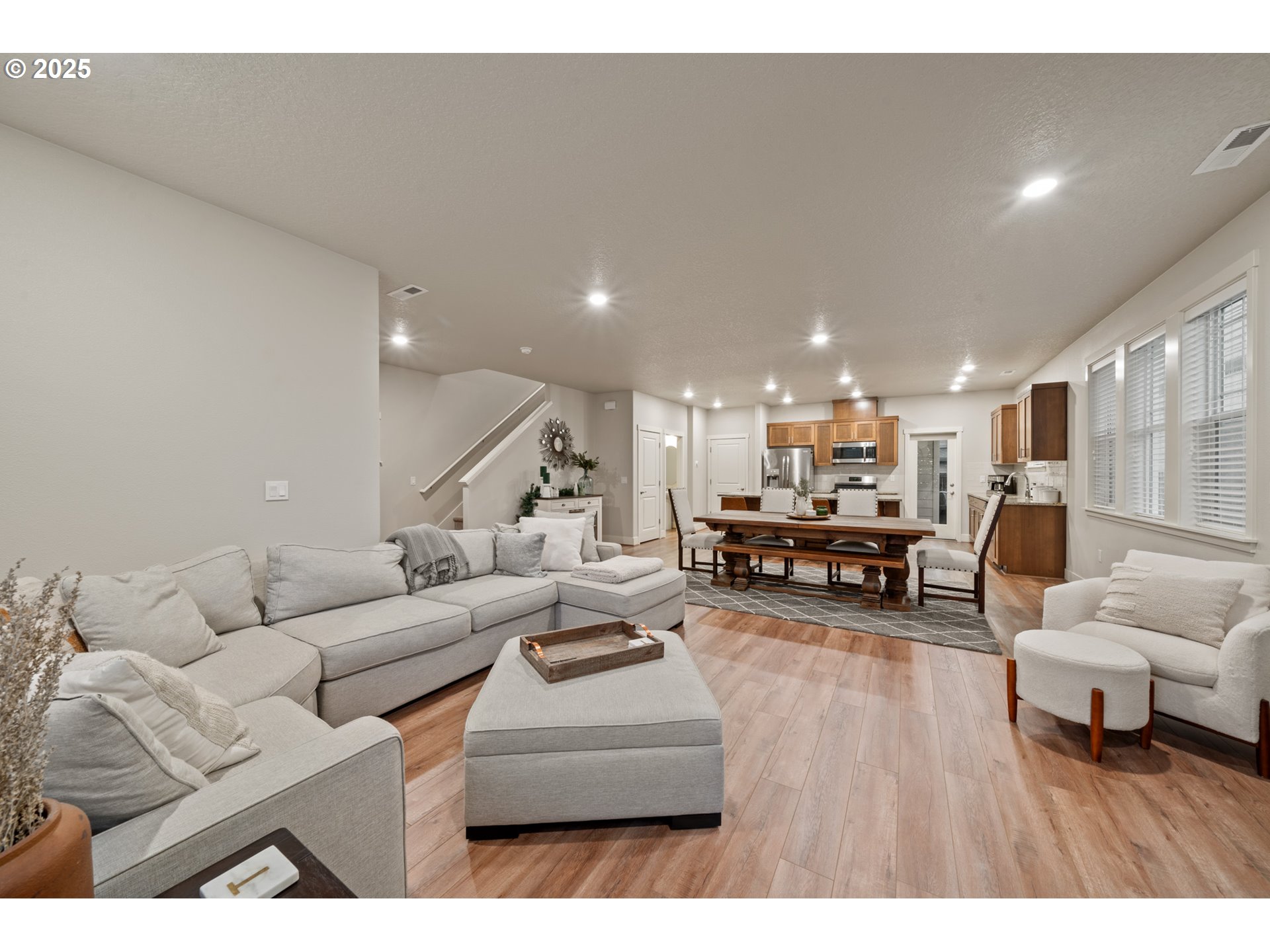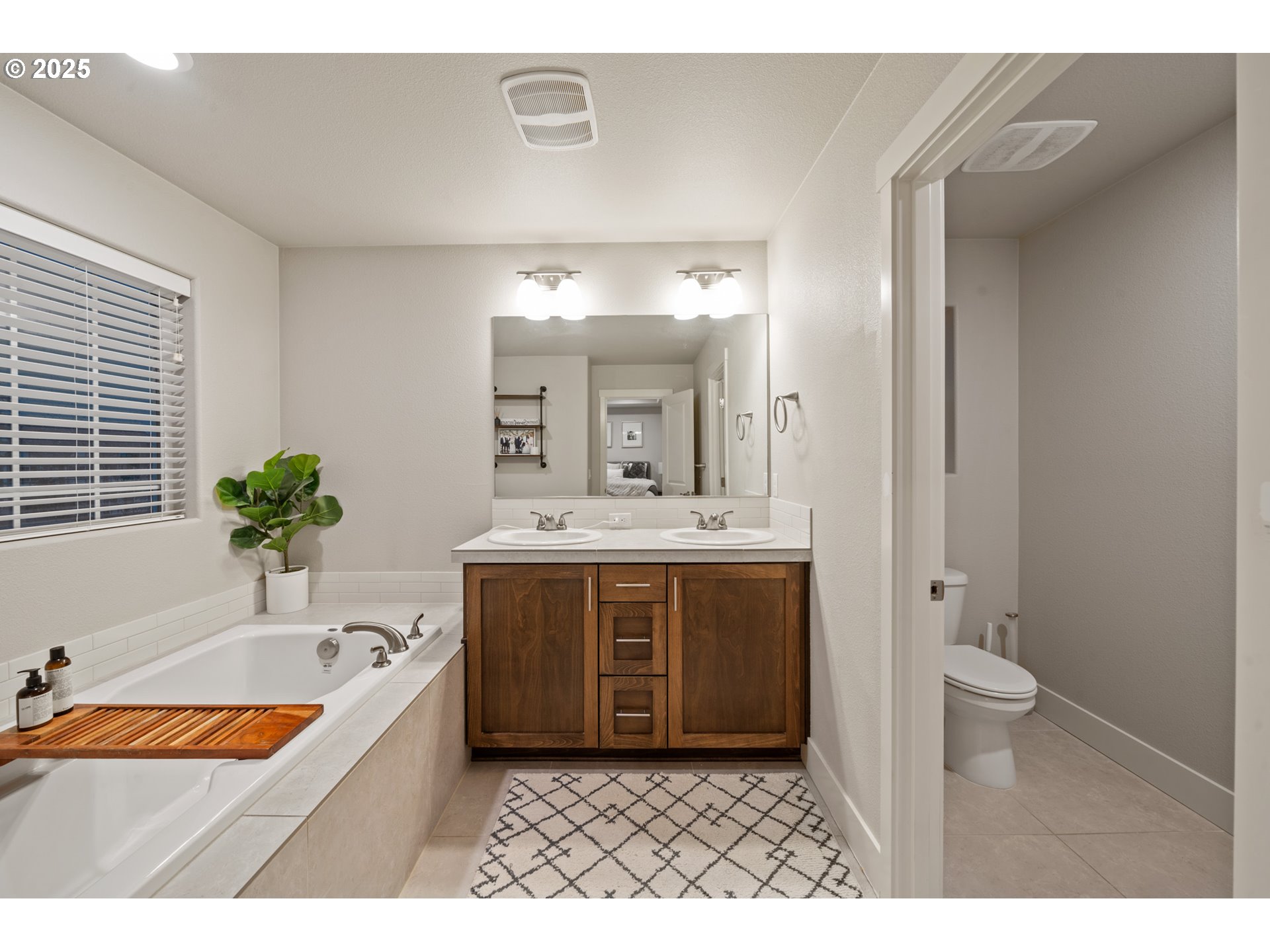 - Welcome to Bull Mountain, where this immaculate Contemporary Craftsman with striking curb appeal and charming stone accents welcome you. Inside, the light-filled open concept design features a spacious living area anchored by a cozy fireplace. The kitchen is perfectly set up for entertaining, boasting shaker style cabinetry, sleek subway tile backsplash, stainless steel appliances, and a massive granite island with bar-style seating. Upstairs, the primary suite serves as a true haven, highlighted by coved ceilings, plush carpeting, and a private ensuite bathroom with dual sinks and soaking tub. The home is completed by a private, fully fenced side yard with turf designed for a low-maintenance lifestyle and an established HOA offering convenient amenities including a gym, outdoor pool, and clubhouse. Nearby, experience the art of easy living minutes from parks, Progress Ridge, Willamette Valley wineries, and freeways.
