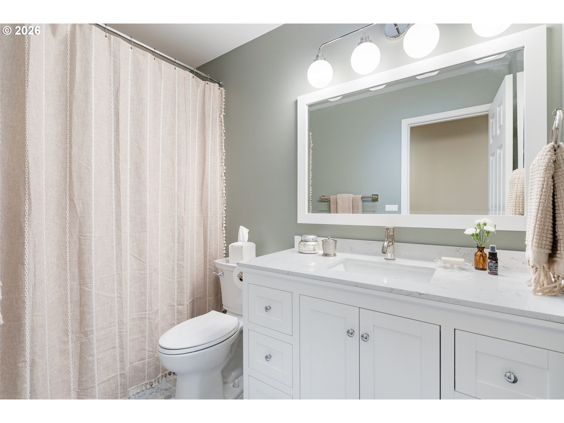- Meticulously designed traditional home in Burntwood West. Step inside to an inviting living room with vaulted ceilings, new designer curtains, and a grand staircase. Rich dark hardwoods flow throughout the main level, complemented by soaring 10-foot ceilings and abundant natural light that create an airy, welcoming atmosphere. The remodeled kitchen features granite countertops, stainless steel appliances, and ample storage and entertaining space. Gather in the cozy great room around the gas fireplace for a perfect blend of comfort and style. Upstairs, the primary suite impresses with high ceilings and a designer-finished bathroom showcasing marble floors, counters, and a stunning walk-in shower. The secondary bathroom has been recently updated with marble floors and a beautiful new vanity, while the additional bedrooms offer generous space and exceptional storage. The laundry room has also been renovated with timeless tile floors & cafe curtains. Outdoors, enjoy a large entertainer’s deck with a recently serviced hot tub—ideal for relaxing, hosting, or simply taking in the surroundings. The spacious yard provides plenty of room to play, garden, and gather. The home has been meticulously maintained and thoughtfully updated with a new roof, new carpets, modern light fixtures throughout, and beautifully remodeled main spaces. Perfectly situated on a quiet cul-de-sac, this home offers easy access to downtown Beaverton’s popular restaurants, nearby walking trails, and wonderful schools.