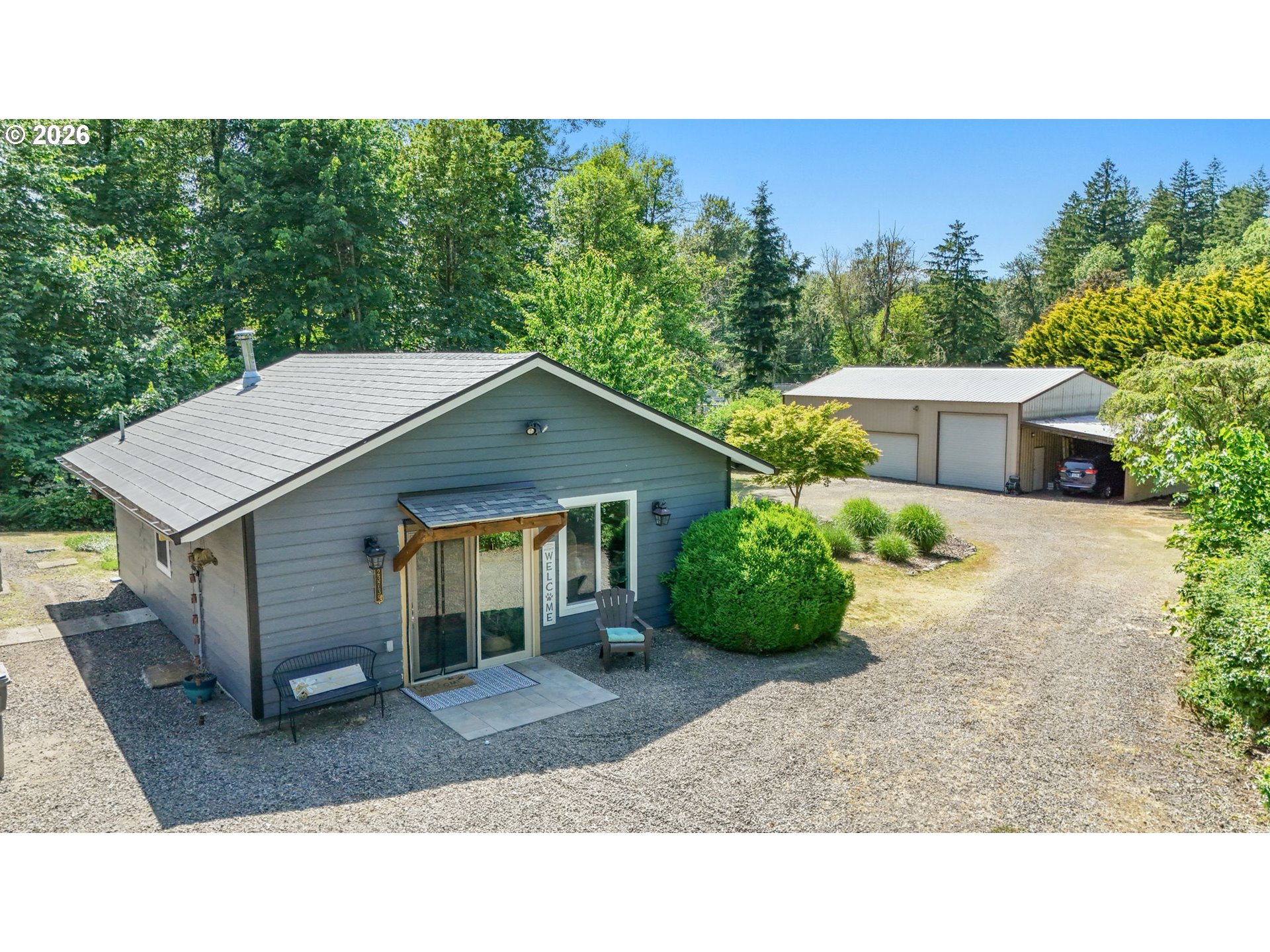 - Eclectic 2500 Sq Ft Ranch Home on Eagle Creek – A One-of-a-Kind-Property with Stunning Views! The living space and breathtaking views of Eagle Creek will keep you out on the deck all day long. With a relaxed, cool vibe, this home is perfect for those who appreciate a unique style and the serenity of nature. Spacious Living: A huge living room with plenty of natural light–perfect for relaxing or entertaining. Large Dining & Kitchen Area: Ideal for family meals or hosting friends, featuring ample space for cooking and dining, Sliding door out to back deck for more entertaining space. A Very Sweet Studio: A versatile 720 sq ft space with 1 bedroom, 1 bathroom, and a cozy living area – perfect for guests, or as an office. Incredible Views: Enjoy awe-inspiring views of the creek and surrounding landscape from nearly every room. Massive Shop: A 36x48 shop (one extra tall bay door for your RV storage) concrete floor, perfect for projects, storage, or even as a workspace. It also features a lean-to for additional storage needs. Whether you're looking for a peaceful retreat, a place to entertain, or room for projects, this property has it all, a 10x15 greenhouse even for your winter gardening needs. Don’t miss out on this fantastic opportunity to own a piece of Eagle Creek with tons of potential! New HVAC w/AC-2023, New Metal Roof 2018 w/transferrable warranty to new owner.