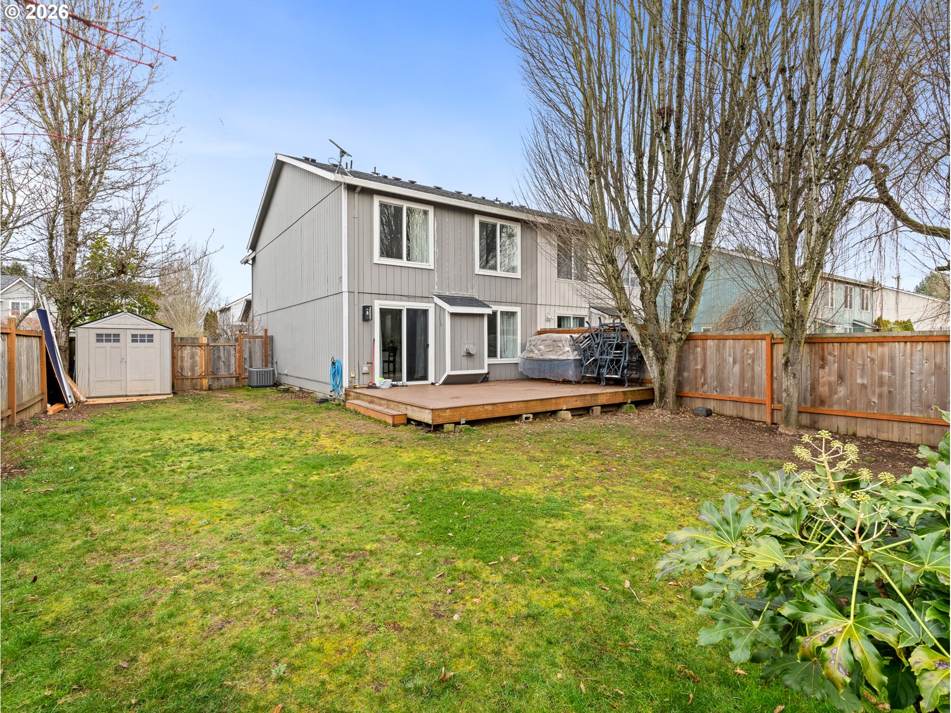 - Hello there — I’m a welcoming attached home tucked into Sherwood’s Wildflower Village, designed to make everyday living feel easy, comfortable, and well connected. Step inside to a cozy living room with a gas fireplace, creating the perfect place to unwind at the end of the day or gather with friends and family. Just beyond, my kitchen is both functional and inviting, featuring solid surface countertops, stainless steel appliances, a gas range with hood, and a peninsula with eat bar that naturally brings cooking, dining, and conversation together. On the main floor, I also offer a thoughtfully designed half bathroom that doubles as a laundry space, complete with custom built-in live-edge shelving that adds warmth, character, and smart storage. Off the kitchen, the dining area opens through sliding doors to a spacious, fenced backyard, where composite decking sets the stage for summer meals, morning coffee, or relaxed evenings spent outdoors. Upstairs, I provide three bedrooms and two full bathrooms, including a comfortable primary suite with an attached bathroom and walk-in closet, while the additional bedrooms are well sized and flexible for guests, home office needs, or creative use. An attached one-car garage with ceiling-mounted built-ins adds excellent storage for tools, gear, and seasonal items without sacrificing parking space. With gas utilities, central air, and efficient systems throughout, comfort comes easy year-round. My Wildflower Village location places you minutes from Old Town Sherwood, Stella Olsen Memorial Park, nearby trails, Sherwood Plaza, shopping and dining along Pacific Highway, and The Home Depot for weekend projects and home upgrades. Comfortable, connected, and thoughtfully designed, I’m ready to welcome you home and support the lifestyle you’ve been looking for.