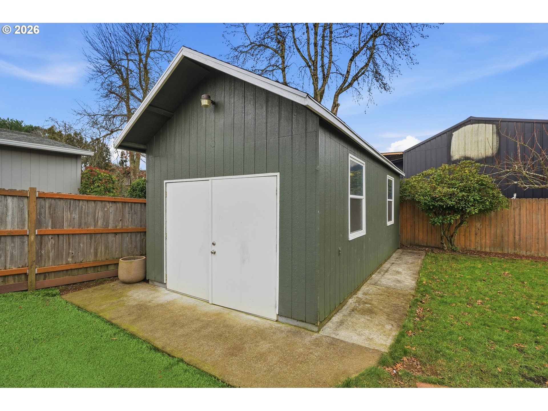 - Open House this Saturday 1/31 & Sunday 2/1, 1:00-3:00pm! Inviting and meticulously-maintained, this desirable one-level home offers comfortable living with thoughtful updates and outstanding flexibility. A rare detached shop with electricity provides a true flex space—ideal for a home office, creative studio, workout room, workshop, or additional storage. Inside, the spacious kitchen features high ceilings, granite countertops, stainless steel appliances, hardwood floors, and abundant cabinetry, creating a bright and open space with excellent storage. A sunken living room adds to the home's charm, while the dining area is centered around a cozy fireplace and opens directly to the 12’ x 18’ Trex deck, allowing for seamless indoor-outdoor living.Enjoy spacious bedrooms, including a primary suite with its own ensuite bathroom, offering privacy. The completely flat, fully fenced, and highly usable backyard is perfect for entertaining, play, or relaxing, with the deck overlooking the well-manicured yard. RV parking with hookups, a two-car garage, and generous additional parking provide space for multiple vehicles and guests. Ideally located with easy access to Hwy 99E, schools, parks, shopping, and dining, this home combines one-level living, versatile flex space, and exceptional functionality in a sought-after Canby location. Come see it for yourself!