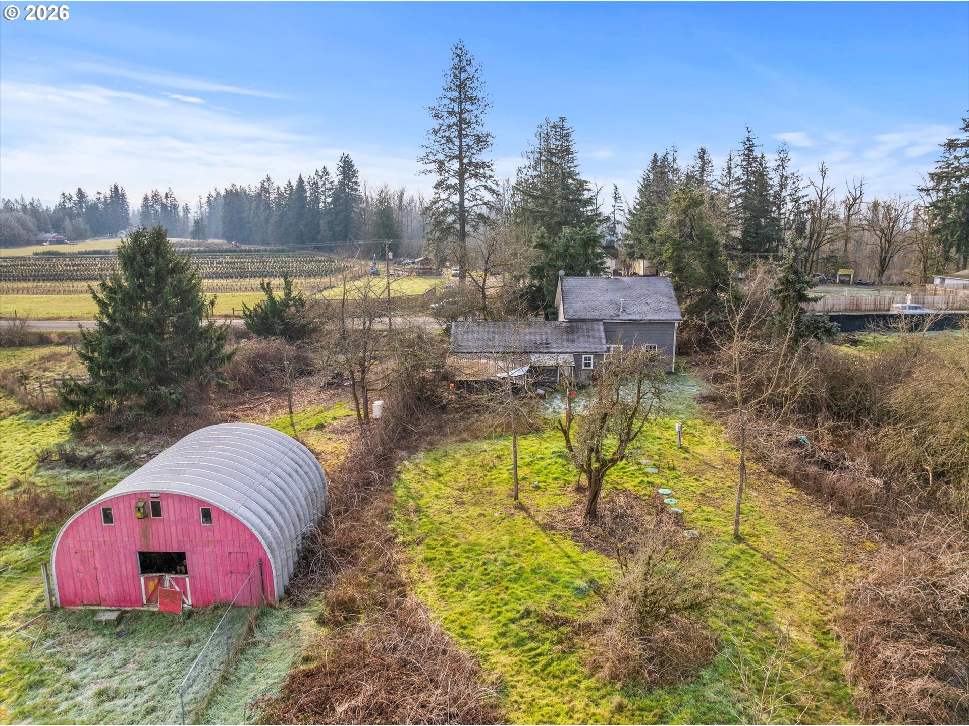 - 9.84 acres in the heart of Mulino. Property has 1910 farmhouse waiting to be brought back to its full potential, open pasture, garage and quonset hut. New septic in 2023. Established apple & pear trees and berries. This property invites imagination and vision. Electric & natural gas at house.