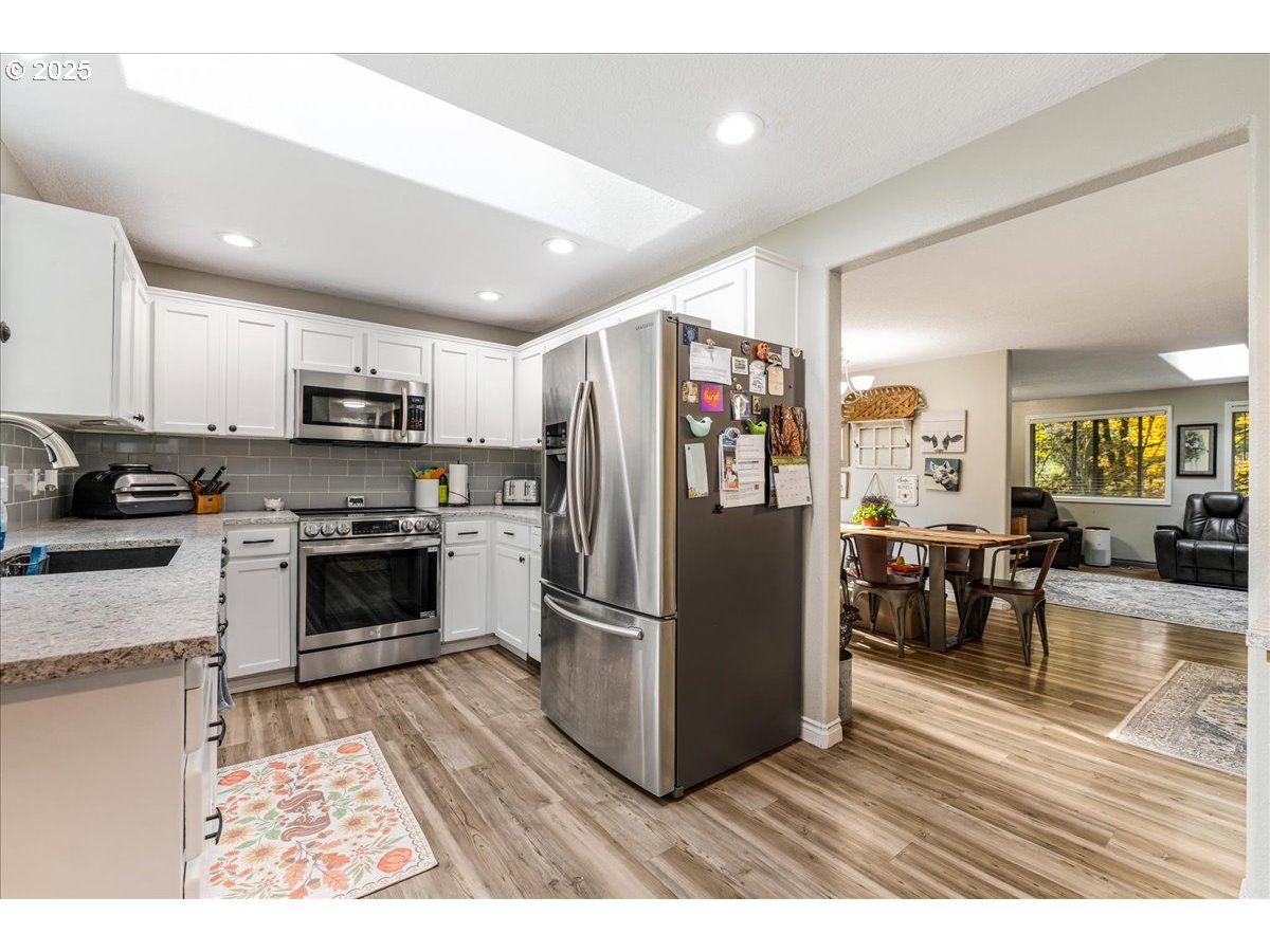 - This 3 bedroom 2 bathroom 2,307 sqft home sits on a 1.56-acre fully fenced property surrounded by stunning natural scenery! This beautiful home features a modern farmhouse kitchen with quartz countertops, stainless steel appliances, and plenty of workspace for cooking and entertaining. The interior has wood floors, fresh paint, and updated baseboards throughout the main level.Enjoy year-round comfort with a newer heat pump/AC system and the convenience of an electronic front gate for added security and ease of access.Outdoors enjoy a pull barn with two stalls, work bench and storage space, a spacious 1,100 sq. ft. storage area with loft, covered RV parking, a tool/wood shed, and a charming chicken coop. This property offers river access with a trail, ideal for fishing, kayaking, or simply relaxing by the water.Located just a short drive from Hagg Lake and within hiking distance to the secluded Lee Falls, this property offers the peace and beauty of country living while still being close to amenities and recreation.
