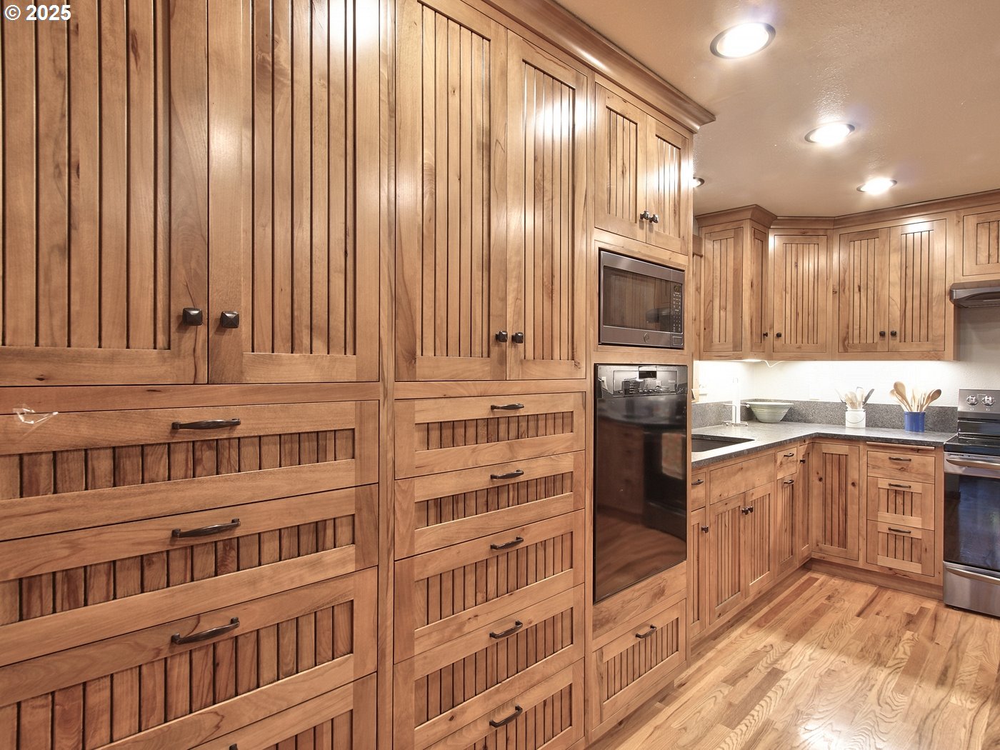 - Just the way you wanted it. Nice neighborhood located near schools and parks. The home is all one level with a 4th bedroom above the Shop. The Shop is large enough to pull through an RV or work truck and park in back of shop. Tons of cabinet space in the garage and a covered patio perfect for the BBQ. The yard is a Gardener's delight with multiple fruit trees and bushes, including pear, apple, plum, Rhubarb, Strawberries, Raspberries, Blueberries and Chives. New roof in the last few years, new exterior paint in 2025 and fresh landscaping. The home has been updated throughout over the last few years. New kitchen cabinets with a raised built in dishwasher, built in microwave, pantry with pull out shelves and built in refrigerator plumbed for ice. Beautiful wood floors and striking light fixtures are there as well. The bathrooms are updated with heated tile floors and has a relaxing Jetted Tub. The living room has the best woodstove for keeping the whole house warm and cozy. All of the bedrooms have plenty of space and unique features. This home is ready to go!