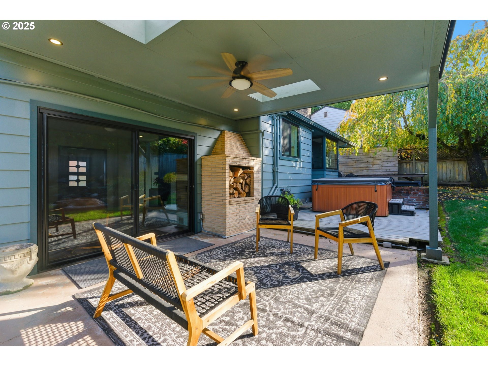 - Classic mid-century charm, centrally located and tucked away on a sought after street along the Fanno Creek Trail; just a short stroll to Trader Joes, coffee shop, parks, Garden Home Rec Center and top-rated schools. You’ll be immediately drawn to the picture window that anchors the stunning 25-foot living room, flooding the space with natural light and framing the abundant neighborhood foliage.The remodeled kitchen shines w/ stainless steel appliances and opens to a cozy nook with access to a covered patio — ideal for year-round BBQs. Fully fenced backyard features a second covered patio off the family room, a relaxing hot tub and peaceful water feature — creating your own private retreat for entertaining or unwinding. Don’t miss the partial basement with potential for home gym.