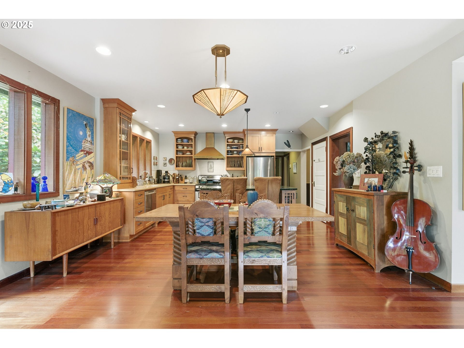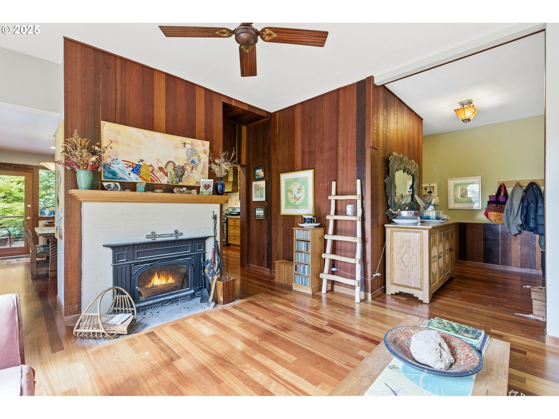 - Welcome to Heron House! Nestled on nearly a half acre of lush trees and mature landscaping, this stunning midcentury home features a beautiful open kitchen and Great room, Formal Living rm w/Fireplace, 3 Large bedrooms, (Primary on main) Loft area, two full bathrooms, and Large unfinished basement that offers endless potential with storage and separate exterior access. Home features beautiful elaborate wood beams, and walls of windows. Enjoy a mix of granite and quartz counters, Brazilian cherry floors on the main, fir floors upstairs, high-end wood accents, and a light-filled loft with skylights and a large wraparound porch encased by trees. Enjoy lower energy costs with solar panels! Mere blocks to Multnomah Village and quick freeway access for shopping, dining, and more. Close-in yet private and serene. A must-see one-of-a-kind Portland gem! [Home Energy Score = 2. HES Report at https://rpt.greenbuildingregistry.com/hes/OR10011507]