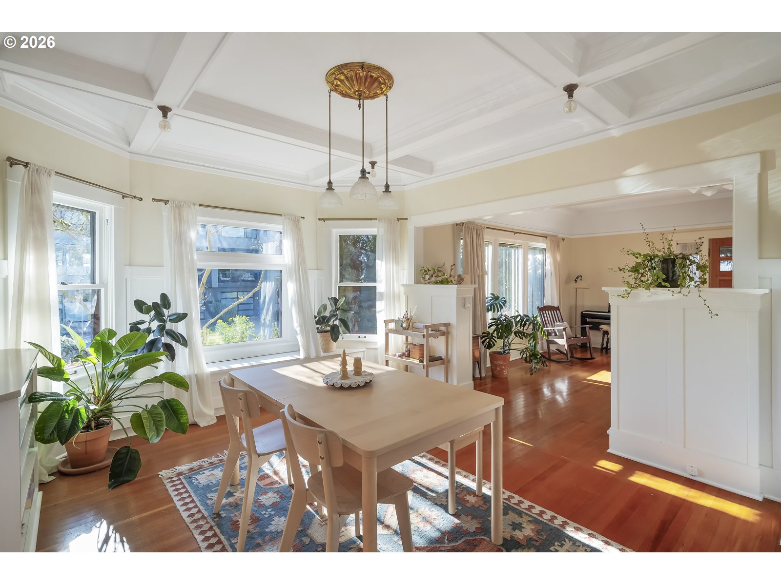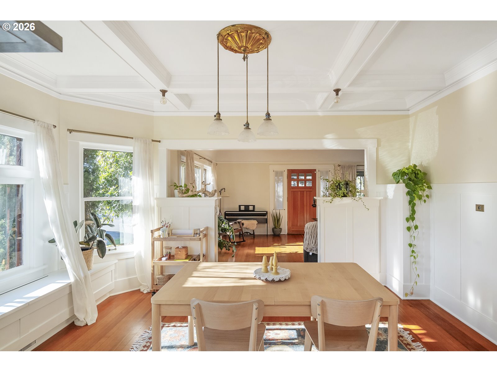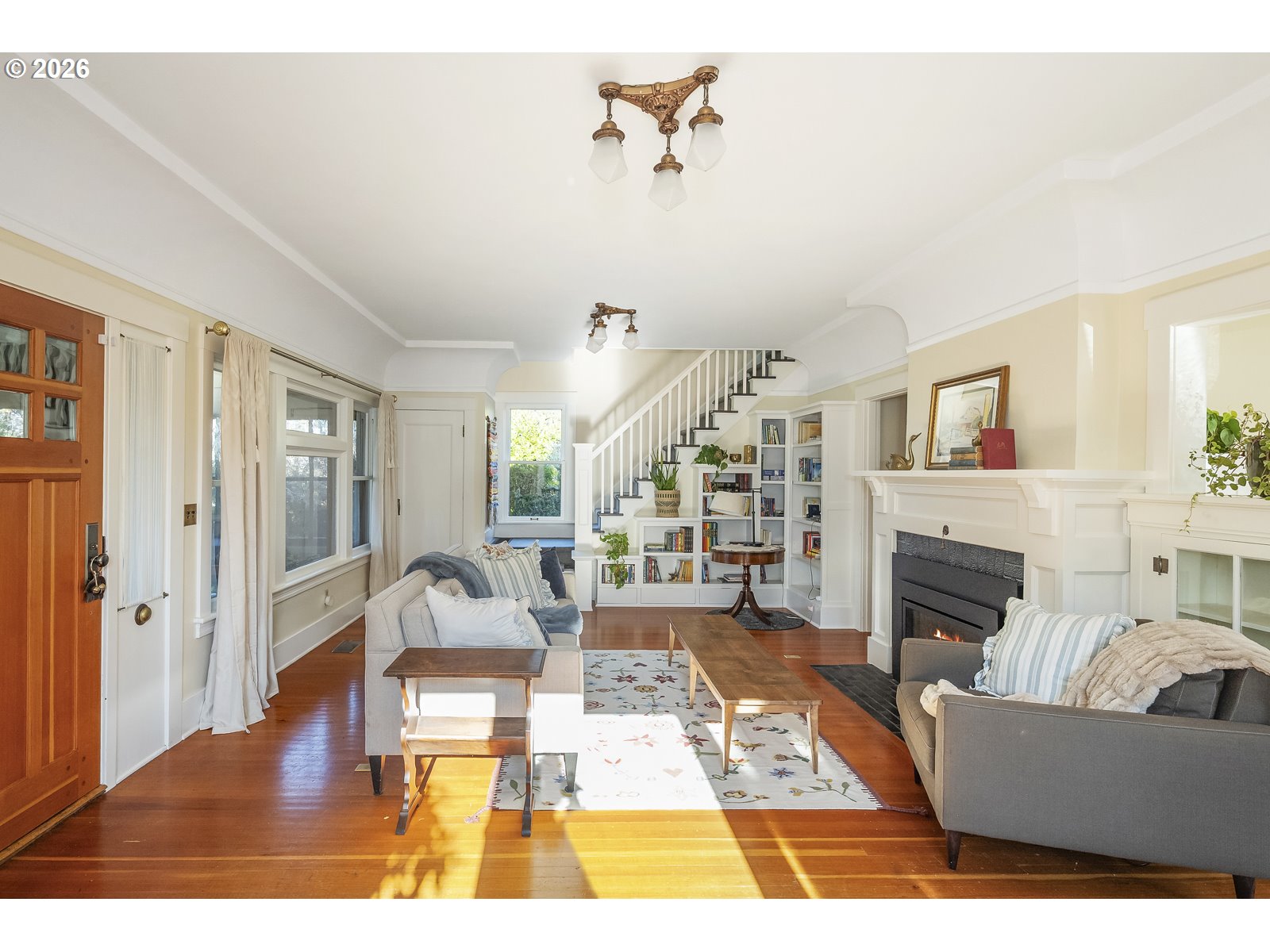 - Grand 1914 Craftsman ideally located in sought-after Sellwood. Welcoming covered front porch opens to light-filled and open main level. Spacious living room features coved ceilings, custom bookshelf, built-ins, and fireplace. Formal dining room showcases wainscoting, box-beam ceilings, and bay windows. Remodeled gourmet kitchen offers ample cabinetry and generous counter space. Three bedrooms upstairs plus a fourth bedroom on the main level. Light-filled sunroom. Two fully remodeled bathrooms. Hardwood floors throughout. New system updates include sump pump and basement water management system, new main plumbing stack, new chimney, and gas fireplace insert. Newer furnace and A/C, plus a $7,500 earthquake retrofit. Unfinished basement with high ceilings and exterior entrance offers potential. Private 0.16-acre corner lot with professionally landscaped yard, raised garden beds, and patio. Partially built-out detached garage with electrical and plumbing. Fantastic central Sellwood location, blocks to shops and restaurants, walkable to Llewellyn Elementary, Westmoreland Park, and Sellwood Park. This home is a true gem. [Home Energy Score = 1. HES Report at https://rpt.greenbuildingregistry.com/hes/OR10131111]