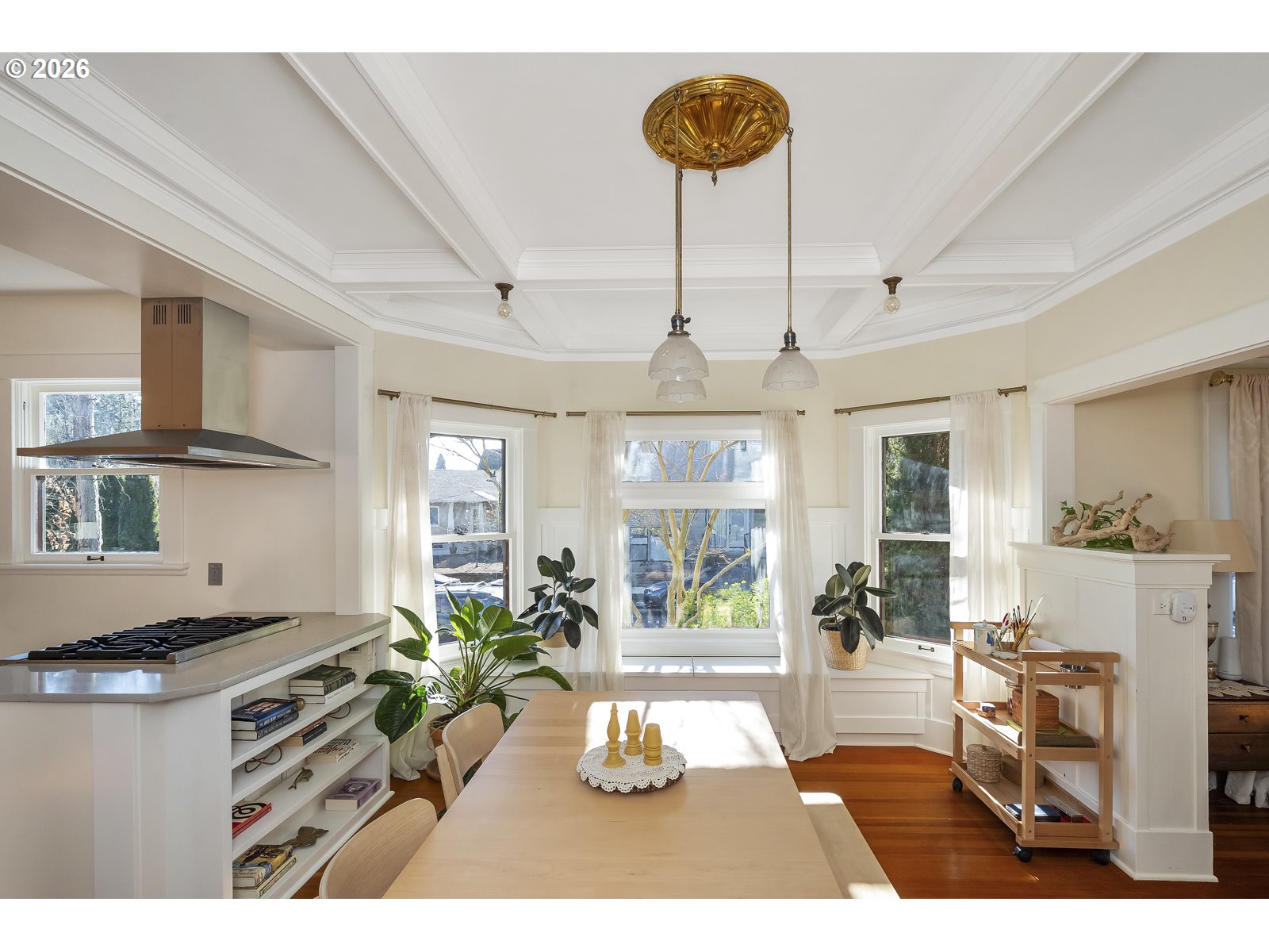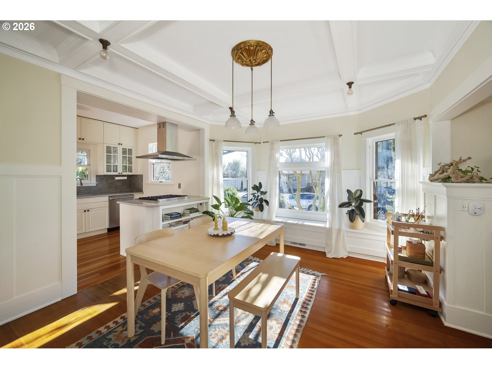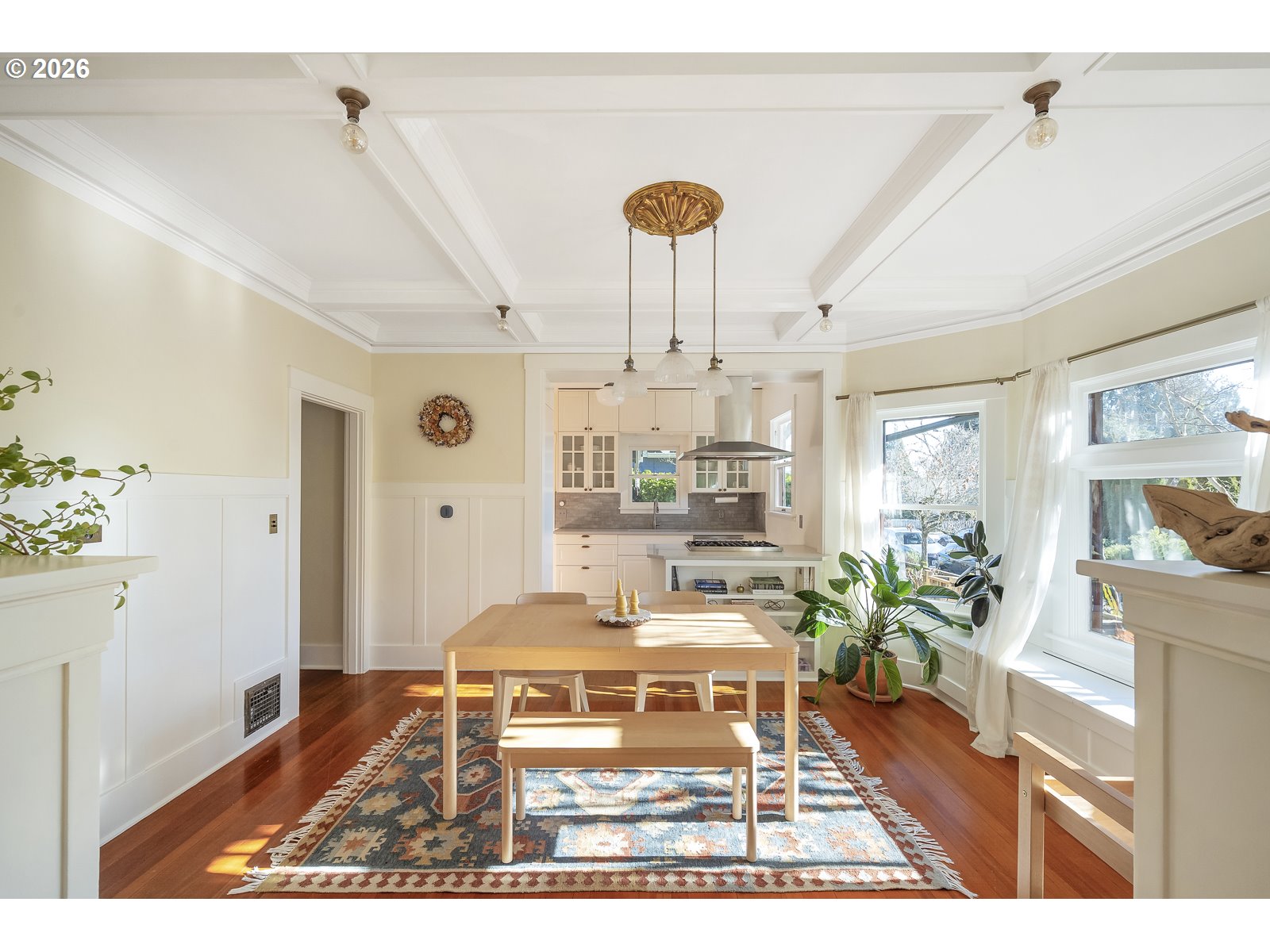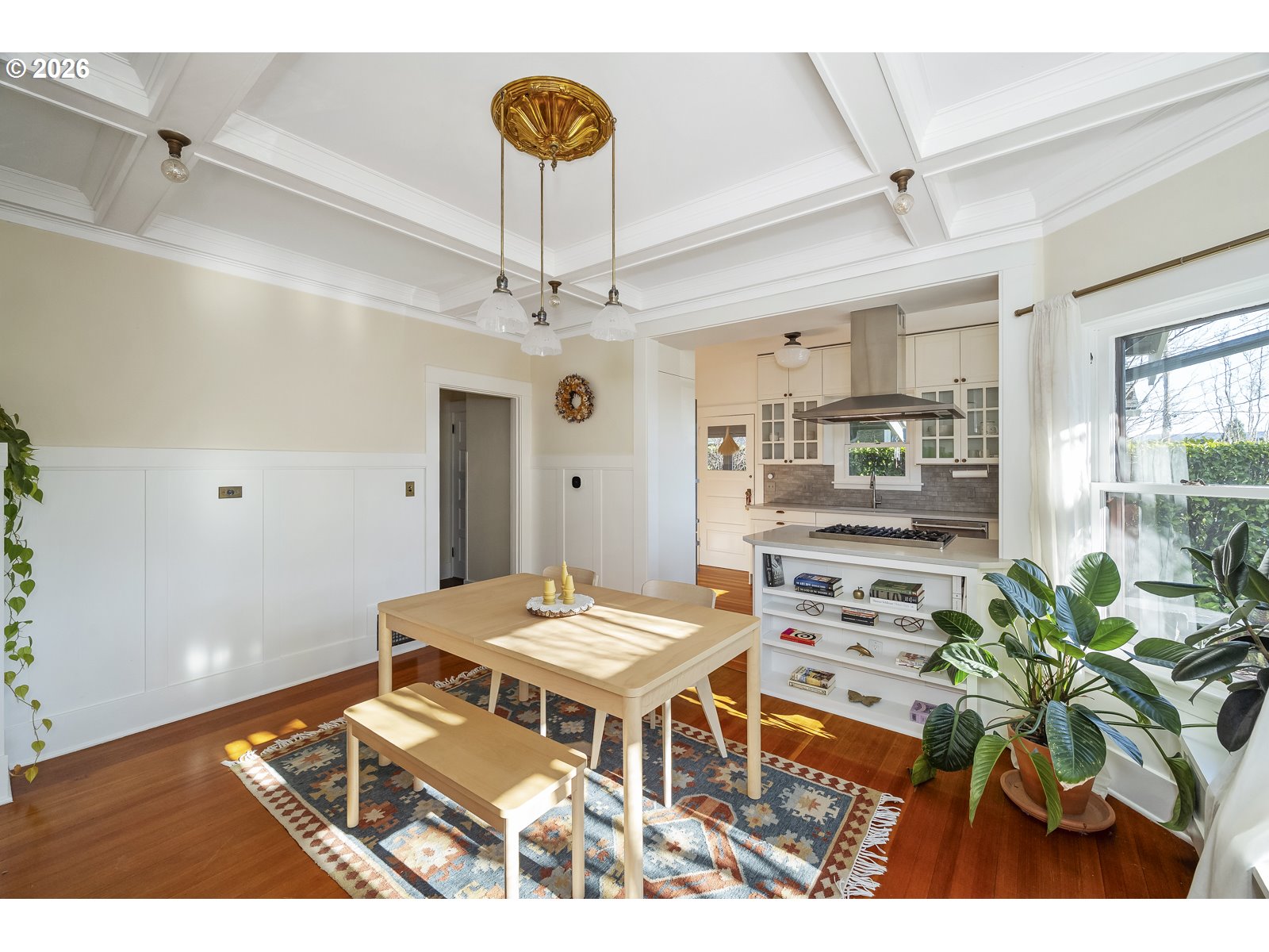 - Grand 1914 Craftsman ideally located in sought-after Sellwood. Welcoming covered front porch opens to light-filled and open main level. Spacious living room features coved ceilings, custom bookshelf, built-ins, and fireplace. Formal dining room showcases wainscoting, box-beam ceilings, and bay windows. Remodeled gourmet kitchen offers ample cabinetry and generous counter space. Three bedrooms upstairs plus a fourth bedroom on the main level. Light-filled sunroom. Two fully remodeled bathrooms. Hardwood floors throughout. New system updates include sump pump and basement water management system, new main plumbing stack, new chimney, and gas fireplace insert. Newer furnace and A/C, plus a $7,500 earthquake retrofit. Unfinished basement with high ceilings and exterior entrance offers potential. Private 0.16-acre corner lot with professionally landscaped yard, raised garden beds, and patio. Partially built-out detached garage with electrical and plumbing. Fantastic central Sellwood location, blocks to shops and restaurants, walkable to Llewellyn Elementary, Westmoreland Park, and Sellwood Park. This home is a true gem. [Home Energy Score = 1. HES Report at https://rpt.greenbuildingregistry.com/hes/OR10131111]
