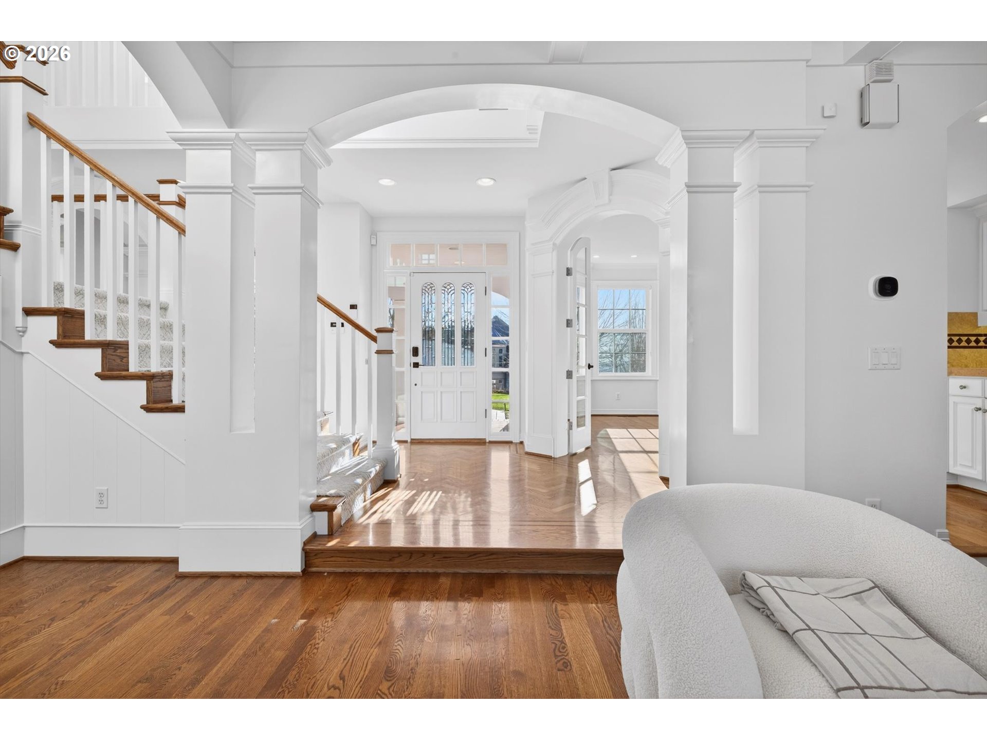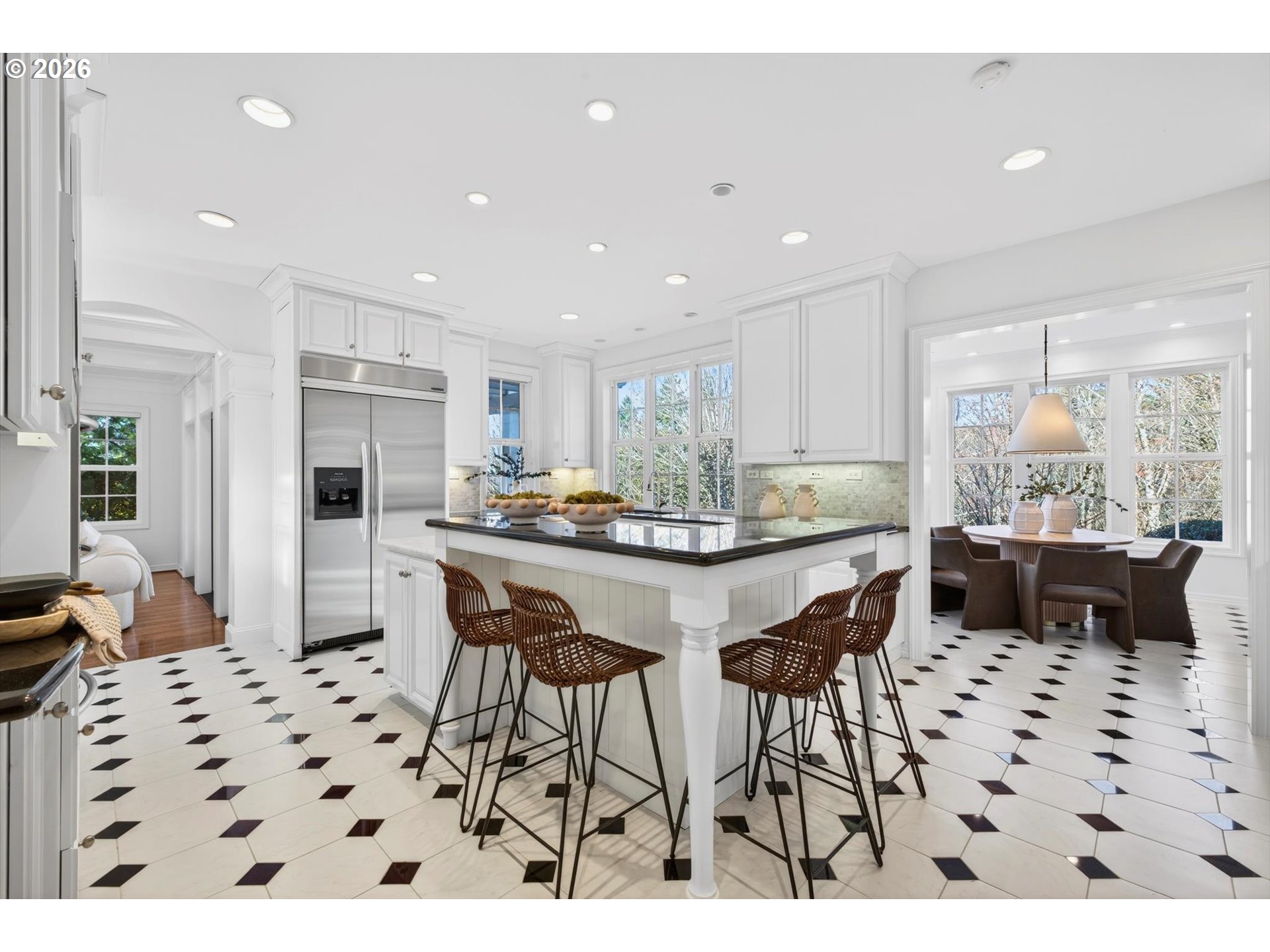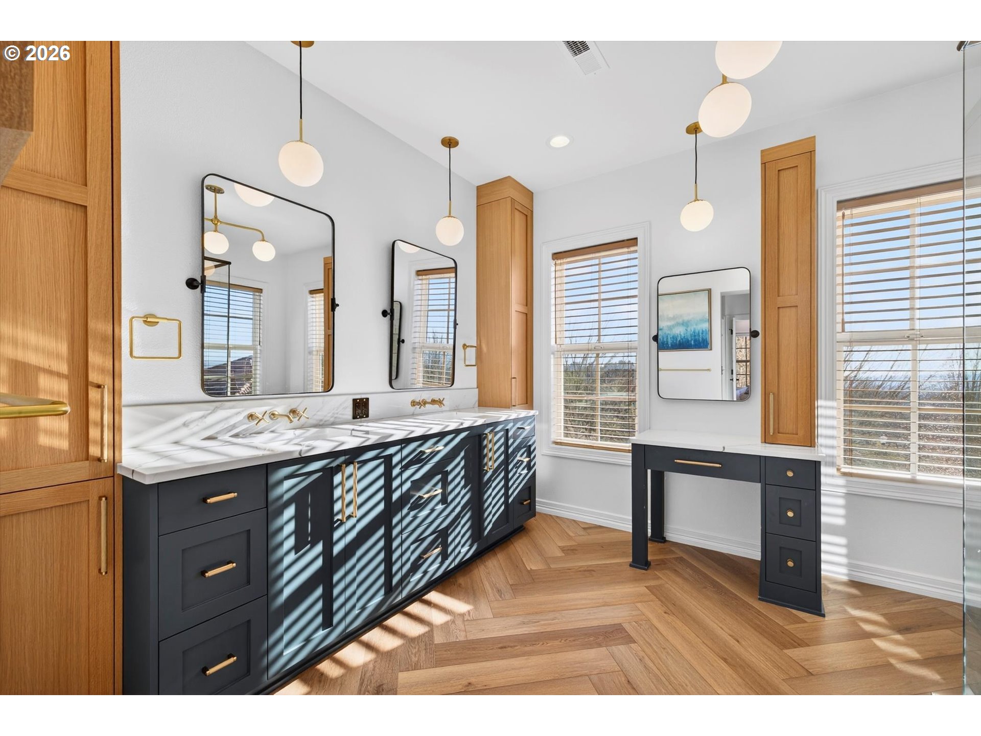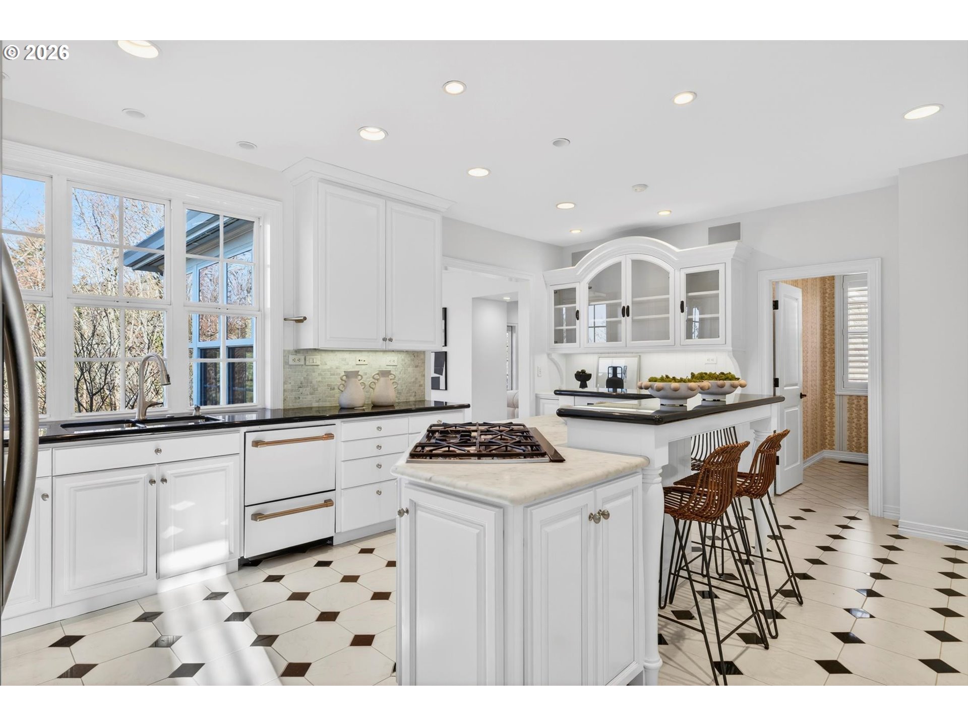 - Step into luxury in this stunning Forest Heights traditional, ideally situated in the coveted Skyline Summit with territorial views, breathtaking sunsets, and serene greenspace backdrop. This five-bedroom, four-and-a-half-bath residence blends timeless elegance with thoughtful functionality, offering refined architectural details such as box beam ceilings, gleaming oak floors throughout the main and upper levels, and a built-in speaker system. Formal living and dining rooms provide classic entertaining spaces, while the home also features a main-level guest suite with full bath and an additional bedroom above the garage—ideal for multigenerational living or private guest quarters. A media room, gym, and flexible bonus spaces offer endless lifestyle possibilities.The upper-level primary suite is a true retreat, complete with a walk-in closet, additional double closet, and a high-end remodeled bath featuring a custom tile shower and cabinetry, designer lighting, and a cozy reading nook. Designed for quintessential indoor-outdoor living, the home opens through French doors from both the living and family rooms onto two expansive decks—perfect for entertaining or enjoying peaceful moments surrounded by nature. Set on a private .3-acre lot, this exceptional property offers rare privacy while remaining just moments from Forest Heights Shopping Center, local coffee, dining, and grocery options. Zoned for Forest Park Elementary and Lincoln High School, this is a rare opportunity to own a sophisticated, view-oriented home in one of Northwest Portland’s most desirable neighborhoods.