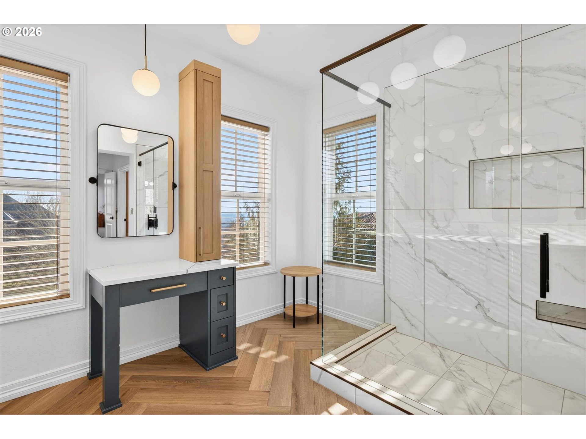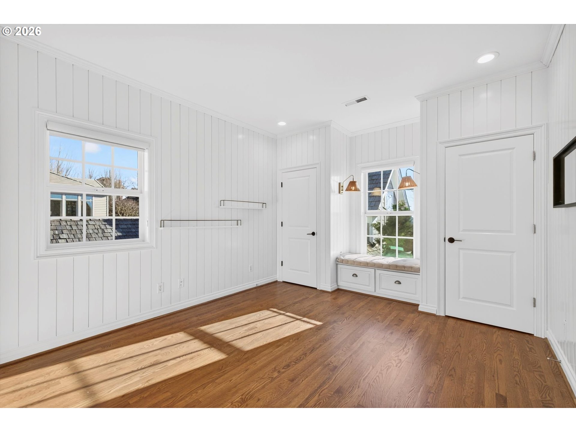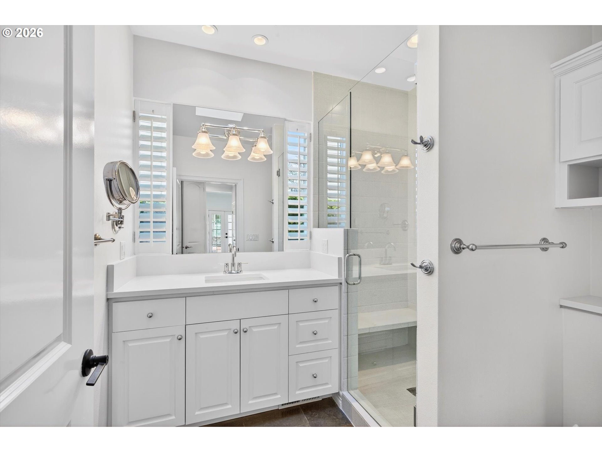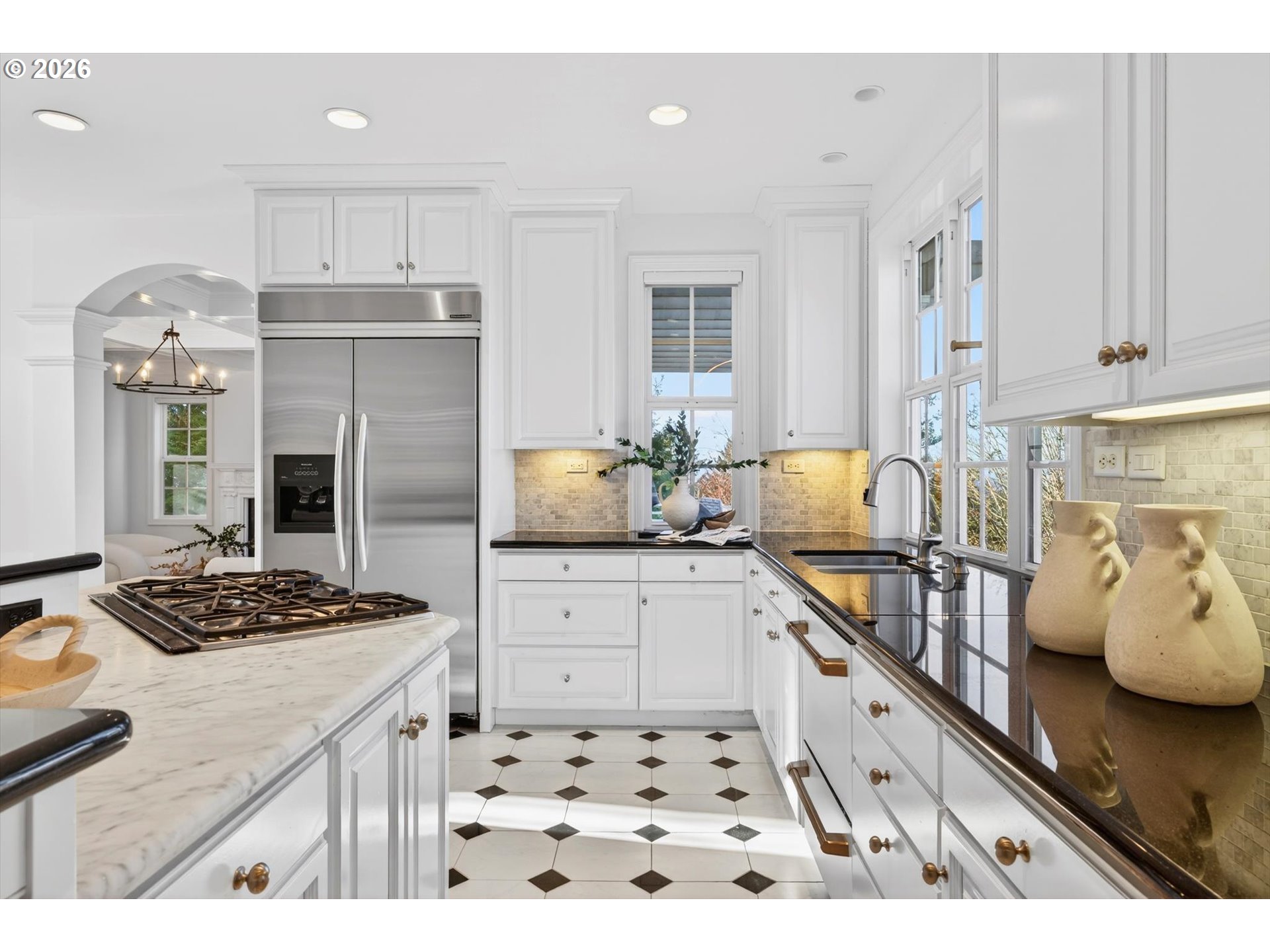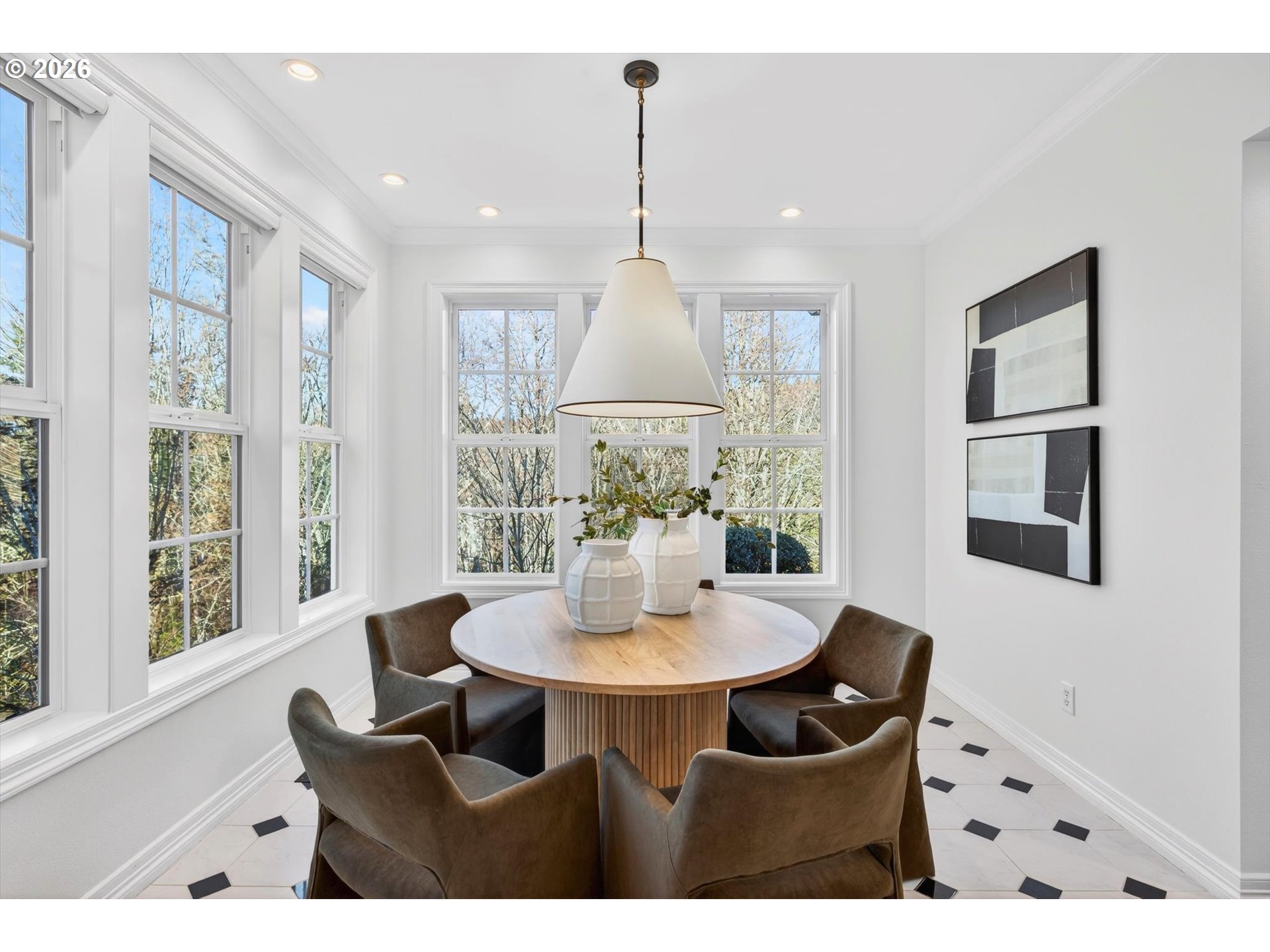 - Step into luxury in this stunning Forest Heights traditional, ideally situated in the coveted Skyline Summit with territorial views, breathtaking sunsets, and serene greenspace backdrop. This five-bedroom, four-and-a-half-bath residence blends timeless elegance with thoughtful functionality, offering refined architectural details such as box beam ceilings, gleaming oak floors throughout the main and upper levels, and a built-in speaker system. Formal living and dining rooms provide classic entertaining spaces, while the home also features a main-level guest suite with full bath and an additional bedroom above the garage—ideal for multigenerational living or private guest quarters. A media room, gym, and flexible bonus spaces offer endless lifestyle possibilities.The upper-level primary suite is a true retreat, complete with a walk-in closet, additional double closet, and a high-end remodeled bath featuring a custom tile shower and cabinetry, designer lighting, and a cozy reading nook. Designed for quintessential indoor-outdoor living, the home opens through French doors from both the living and family rooms onto two expansive decks—perfect for entertaining or enjoying peaceful moments surrounded by nature. Set on a private .3-acre lot, this exceptional property offers rare privacy while remaining just moments from Forest Heights Shopping Center, local coffee, dining, and grocery options. Zoned for Forest Park Elementary and Lincoln High School, this is a rare opportunity to own a sophisticated, view-oriented home in one of Northwest Portland’s most desirable neighborhoods.