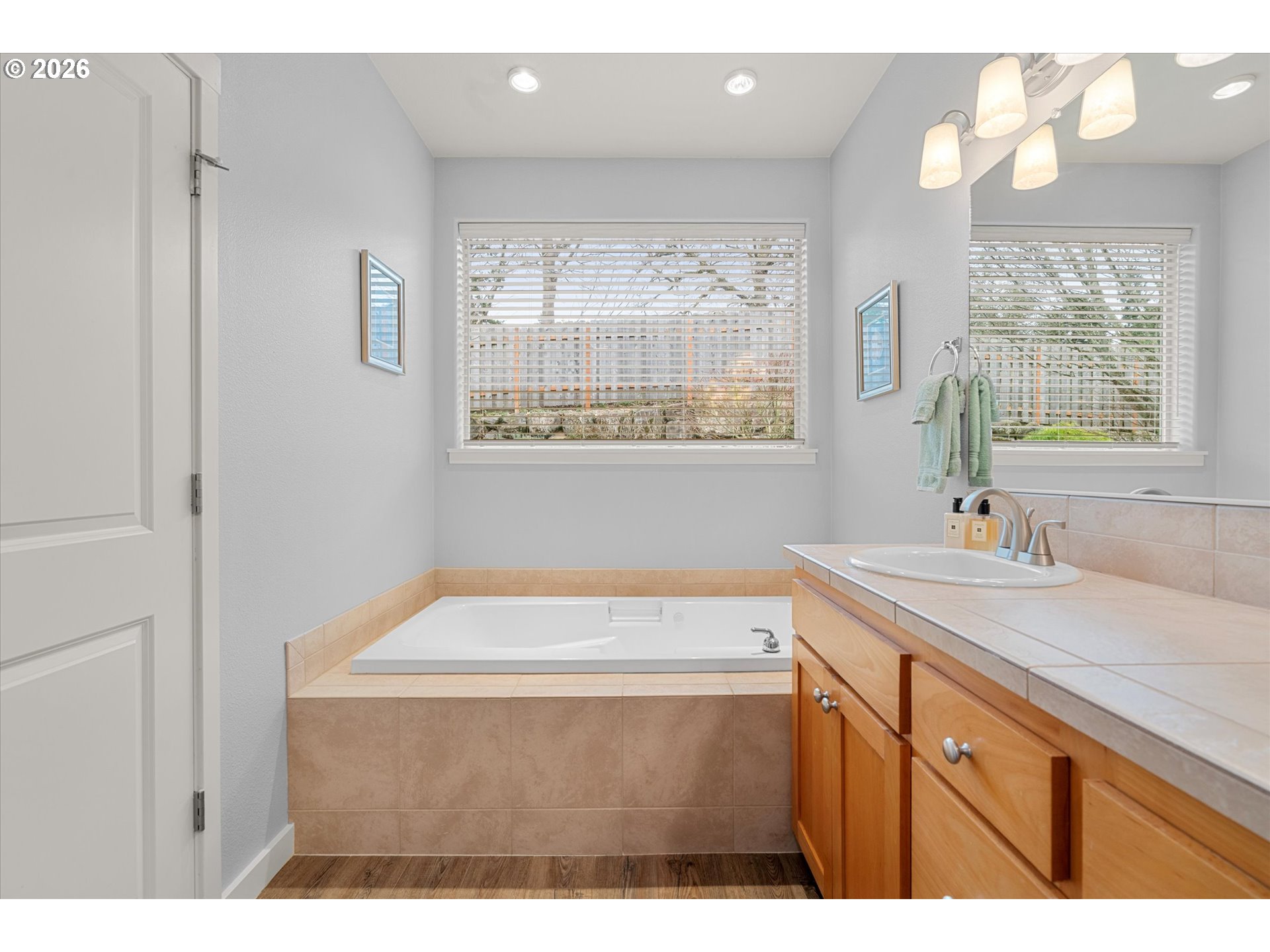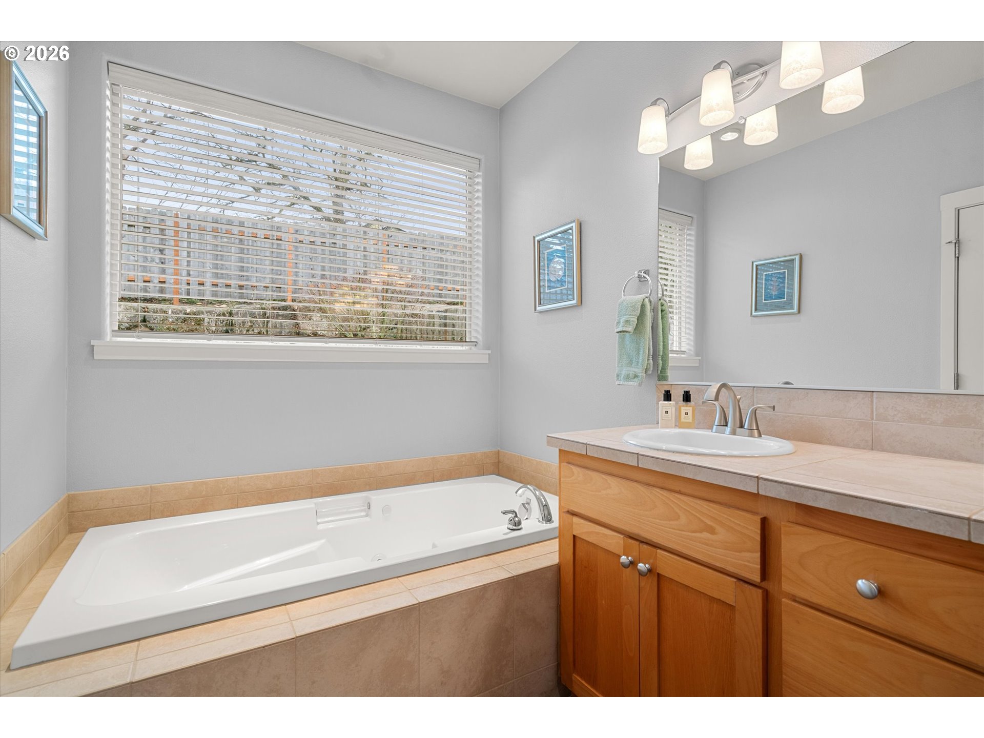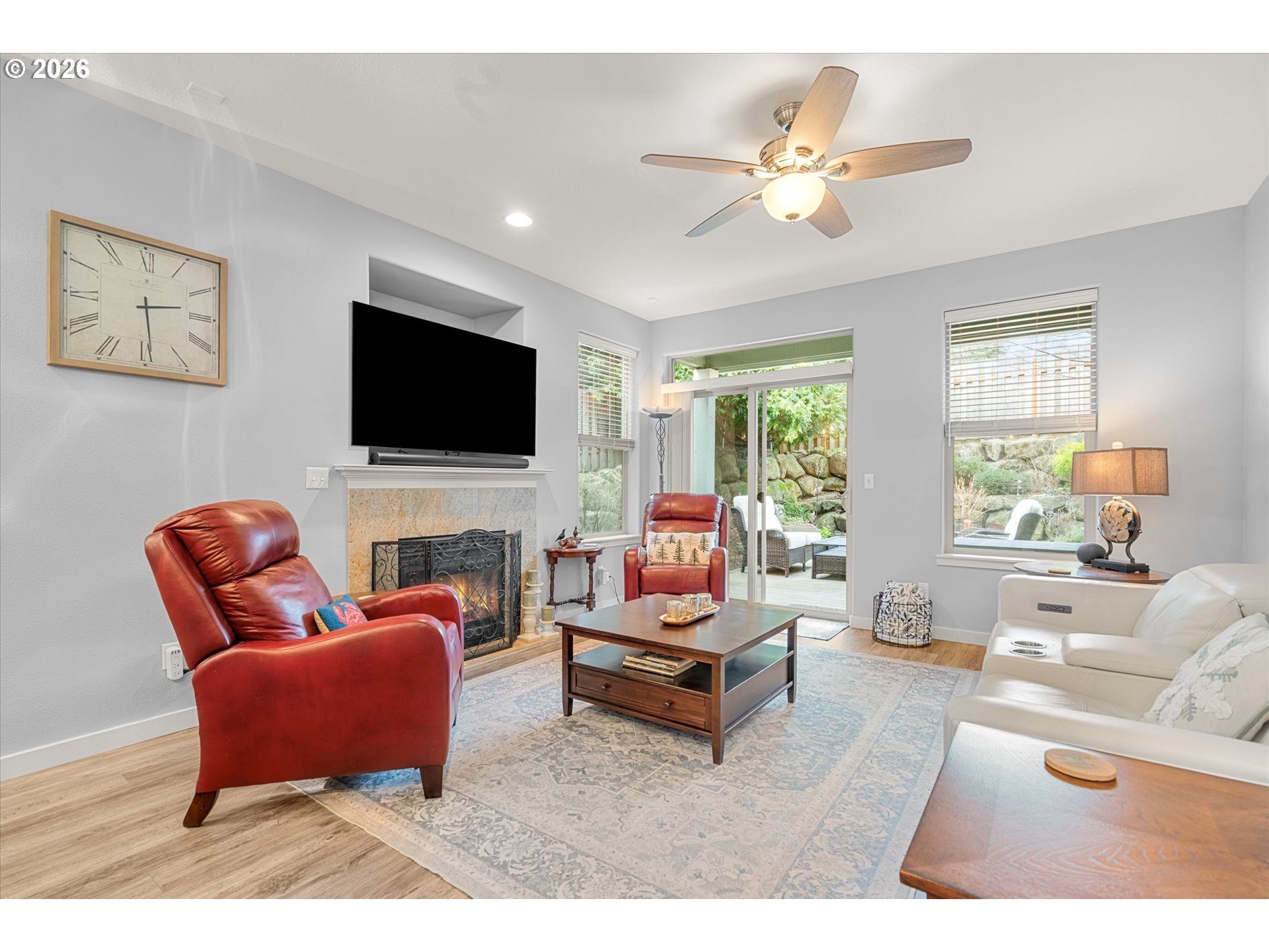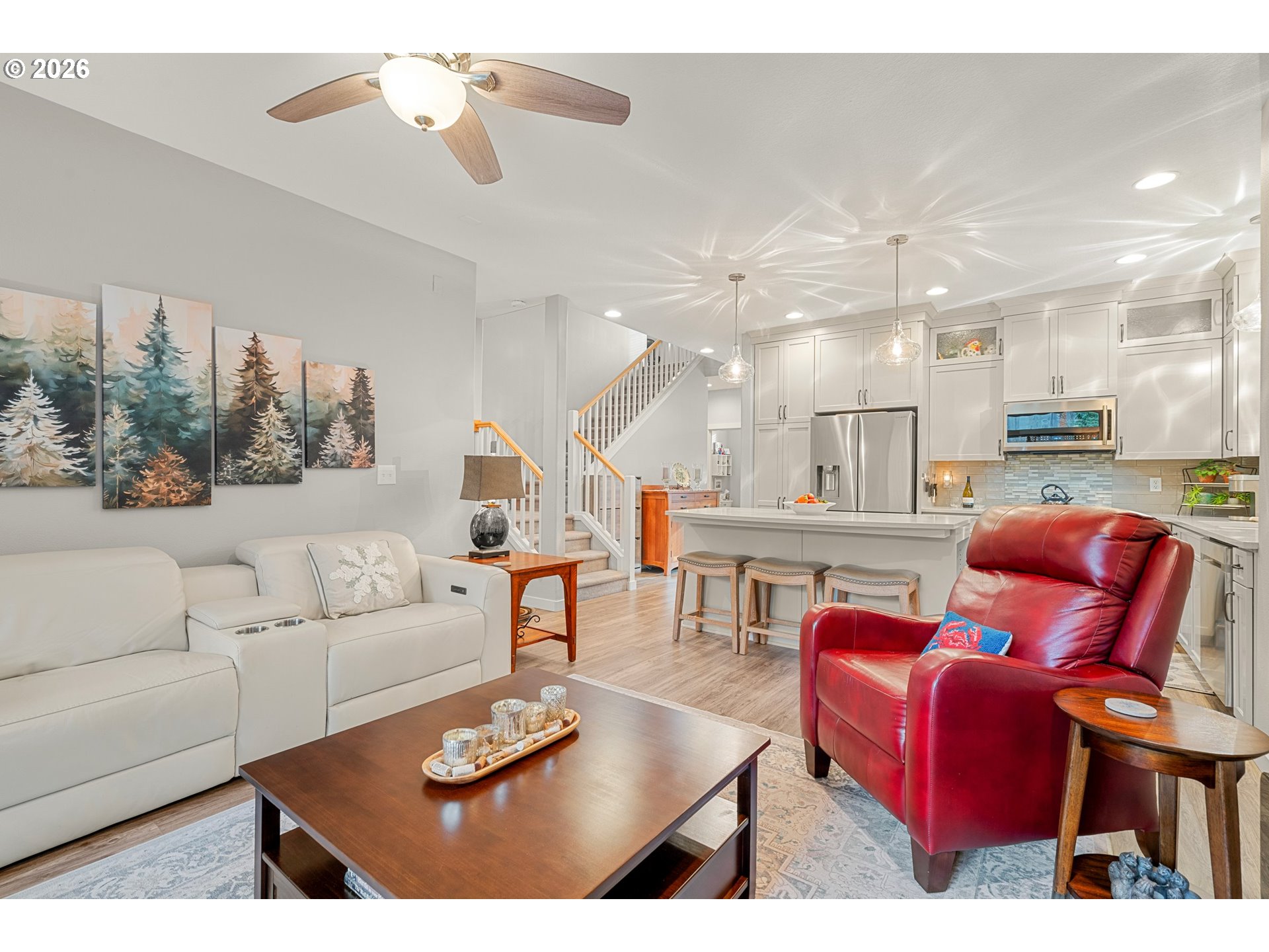 - This thoughtfully designed and carefully maintained home offers a highly desirable layout with an open concept style between the beautifully updated kitchen and cozy living room with gas fireplace. The primary suite has vaulted ceilings, big windows, a ceiling fan and easily fits a king-sized bed, nightstands and multiple large dressers. French doors lead to the primary bathroom with newer plumbing and fixtures, double vanities, jacuzzi tub, stand alone shower, walk in closet and a separate water closet. The main floor of the house which has newer engineered hardwood flooring and newer paint throughout is made complete with a formal dining room, laundry room with washer and dryer included in the sale and an extra deep coat closet. Upstairs you will find a loft space with tons of natural light, perfect for your home office or a reading nook leading to two generously sized bedrooms, each with their own closet, vanity and sink. Connecting the two rooms is a Jack and Jill bathroom with a shower tub combo. Multiple linen closets provide ample storage opportunities. Recent kitchen remodel included custom cabinets with pull out drawers, quartz countertops and island with counter height eating bar, tasteful fixtures and hardware and newer stainless steel kitchen appliances, all included in sale. Outside you will find a private, fenced backyard with gardenlike setting, automatic sprinklers, newer Trex deck, a covered front porch, a newer single-layer composition roof, newer gutters, newer exterior paint in neutral tones, updated furnace and AC as well as a newer water heater providing fantastic bones and systems for it's new owners. Low monthly HOA fees includes all landscaping for front and back yards as well as the water bill. This detached condo is just under 2000 total square feet and is located minutes away from grocery and retail shopping, restaurants, major bus lines, Clackamas Town Center, local schools and Hawthorne Neighborhood Park. Open 1/31 & 2/1 from 1-3pm!
