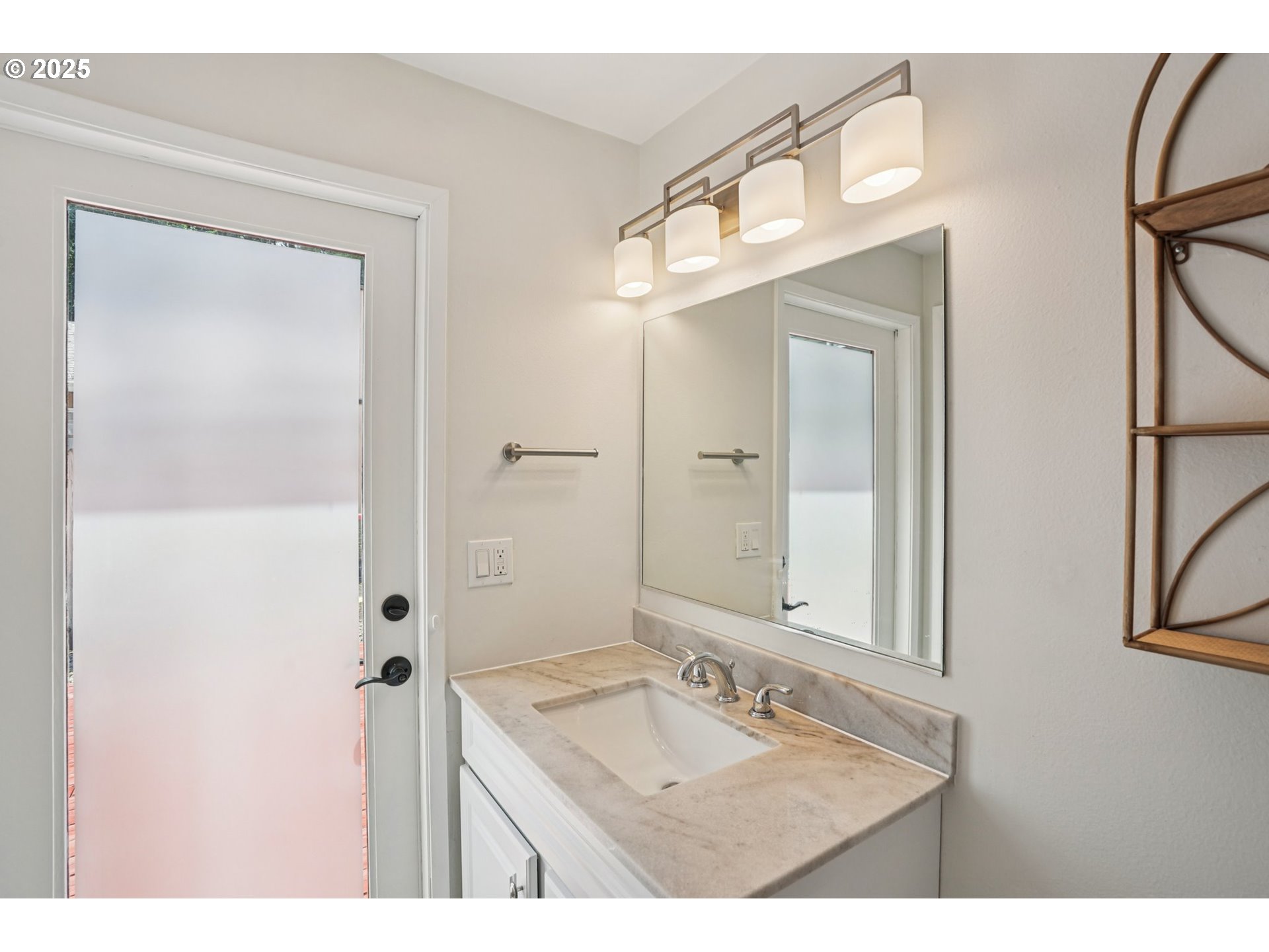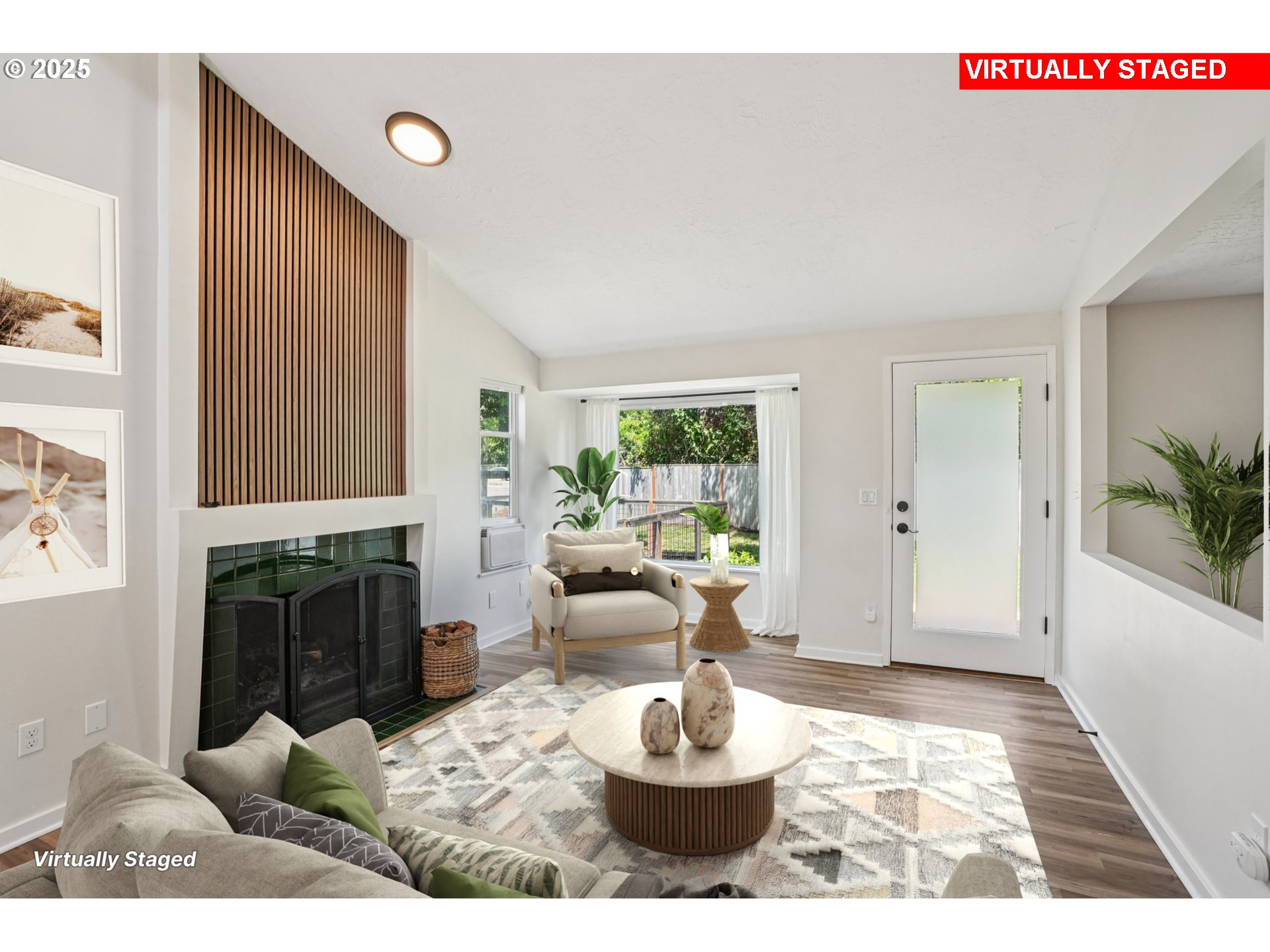 - Welcome home to this beautifully updated one-level house on a large corner lot with a brand new roof! The home is filled with natural light: windows in all rooms look out on the meticulously landscaped front, side and back yards. Enjoy comfortable living with everything you need: updated kitchen with quartz countertops, stainless steel appliances and tons of storage; a spacious living room with vaulted ceilings and a wood burning fireplace, two comfortable bedrooms on the opposite side of the house; and two bathrooms including an en suite in the primary bedroom. And no details have been overlooked: there are brand new LVP floors throughout the home. Both bedrooms have convenient shelving organizers in the closets. The second bedroom has a custom built-in workspace with shelves, adjustable lighting and a monitor stand. There are top quality window air conditioners in the bedrooms and living room, to keep the house comfortable in all weather. The house is set up for smart living - lights, heating, A/C, front door, and garage door are all configurable to pretty much any smart ecosystem. The bonus living space can be converted back into a third bedroom as per tax records. Outside is an entertainer's paradise! The expansive deck in back has been updated and refinished, as has the front deck. The gorgeous front lawn is fully fenced and lined with trees for privacy from the main road. Just blocks from the vibrant energy of Multnomah Village, with a variety of shops, restaurants, and local charm, as well as the lush greenery and outdoor amenities at Spring Garden Park, and of course the vast Gabriel Park with its dog parks, tennis and basketball courts, gym, walking trails, swimming pools, skate park and more. This amazing home is not to be missed! Mortgage savings may be available for buyers of this listing. [Home Energy Score = 2. HES Report at https://rpt.greenbuildingregistry.com/hes/OR10191535]