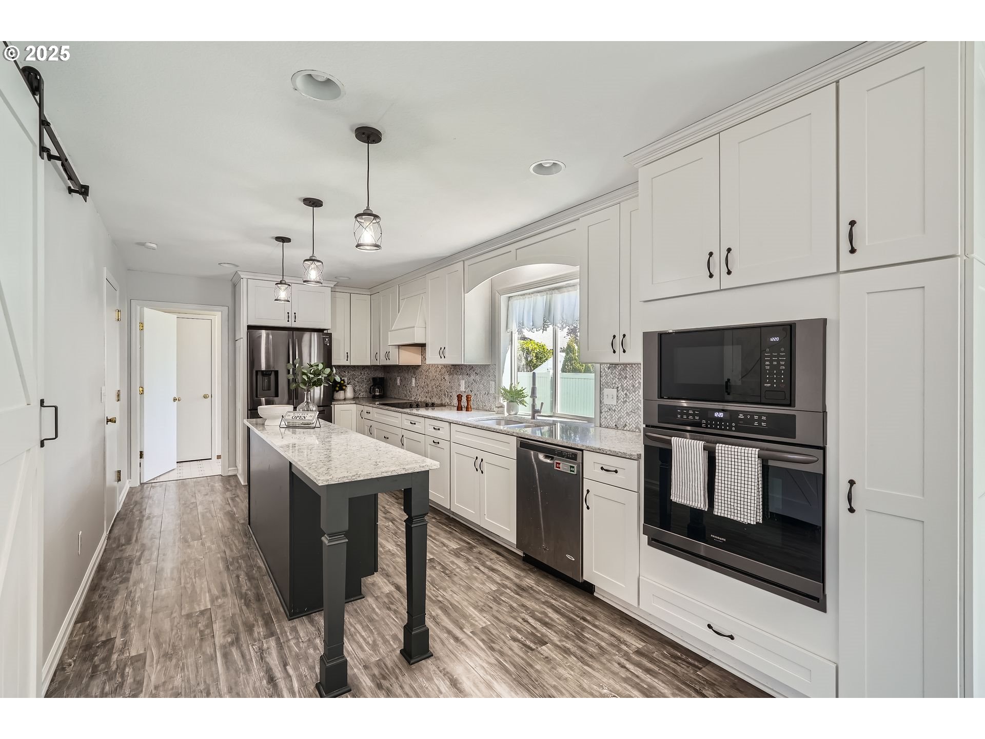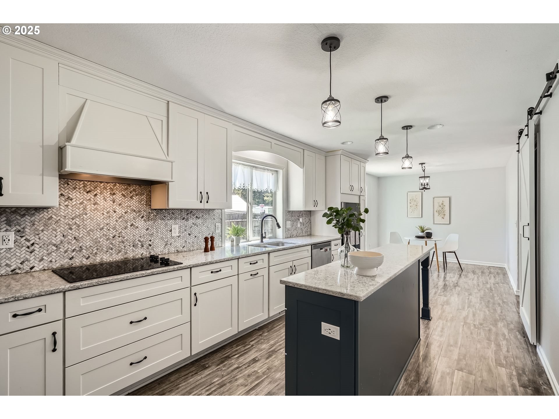 - Welcome to 7217 NE 130th Avenue, a beautifully updated two-story home nestled in a quiet neighborhood just minutes from parks, shopping, and I-205. This spacious 4-bedroom, 2.5-bath home offers just under 2,000 square feet of comfortable living space with modern updates and thoughtful design throughout. Inside, you’ll love the freshly painted doors and trim and the luxury vinyl plank flooring that runs throughout the entire home, creating a clean and cohesive feel. The heart of the home is the stunning remodeled kitchen designed for both everyday living and entertaining. Featuring custom cabinetry, quartz countertops, tile backsplash, a large island and a pantry tucked behind a stylish barn door, this kitchen offers the perfect blend of form and function. The adjacent dining space opens to the backyard patio through sliding glass doors, making indoor-outdoor living a breeze and perfect for entertaining. The spacious living room includes a cozy gas fireplace and large window that fills the space with natural light. Upstairs, the primary suite is a peaceful retreat with vaulted ceilings, a beautiful arched window, walk-in closet, and a full en suite bathroom with dual sinks. Three additional bedrooms, a full hall bath and upstairs laundry provide all the space you need for guests, family, or working from home. Outside, the fully fenced backyard is ready for your summer plans—whether that’s gardening, relaxing, or gathering with friends. There’s also a two-car garage and plenty of driveway space for parking. With tasteful updates and a location that’s both peaceful and convenient, this home is truly move-in ready and waiting for its next chapter. Newer water heater (4 years). Call to schedule your private showing today.