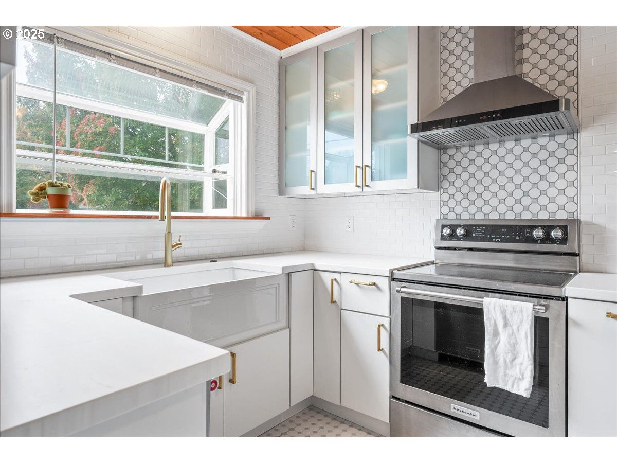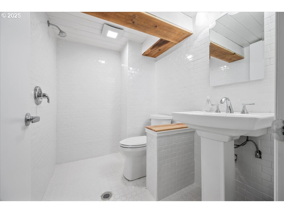 - Remodeled Mid-Century Ranch in the Heart of Overlook Park. Experience timeless mid-century charm beautifully reimagined for modern living. Nestled in one of Portland’s most sought-after neighborhoods, this thoughtfully remodeled home offers warmth, function, and style throughout. Step inside to discover newly refinished original red oak hardwood floors, an inviting open-concept layout, and abundant natural light. The spacious living room features a classic wood-burning fireplace and flows seamlessly into the fully remodeled kitchen, complete with modern cabinetry, quartz countertops, stainless steel appliances, and tile throughout. The main-level bathroom has been completely redesigned, featuring a standalone soaking tub, a no-threshold walk-in shower, custom tilework, wood ceiling, and designer finishes. The primary bedroom now boasts a custom walk-in closet with built-in shelving and elegant wallpaper detail. The lower level has been reimagined with a full bathroom, a wet bar/kitchenette, a new closet, and a flexible layout—perfect for a guest suite, studio, or family room.Additional upgrades include all-new insulation and drywall throughout, re-insulated attic, widened brick-accented driveway, brick walkway, new landscaping with shrubs and trees, and a newly built exterior shed. The covered back patio includes multiple garden areas that thrive with extended growing seasons. This home perfectly blends classic architecture with modern updates — a rare find in Overlook Park!
