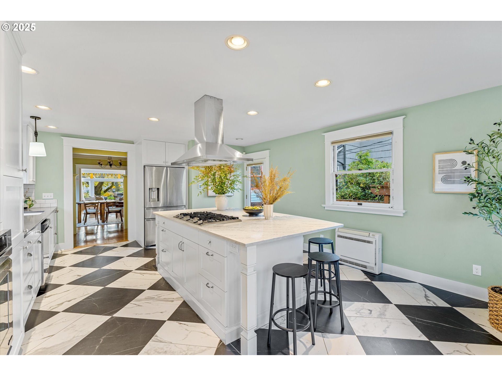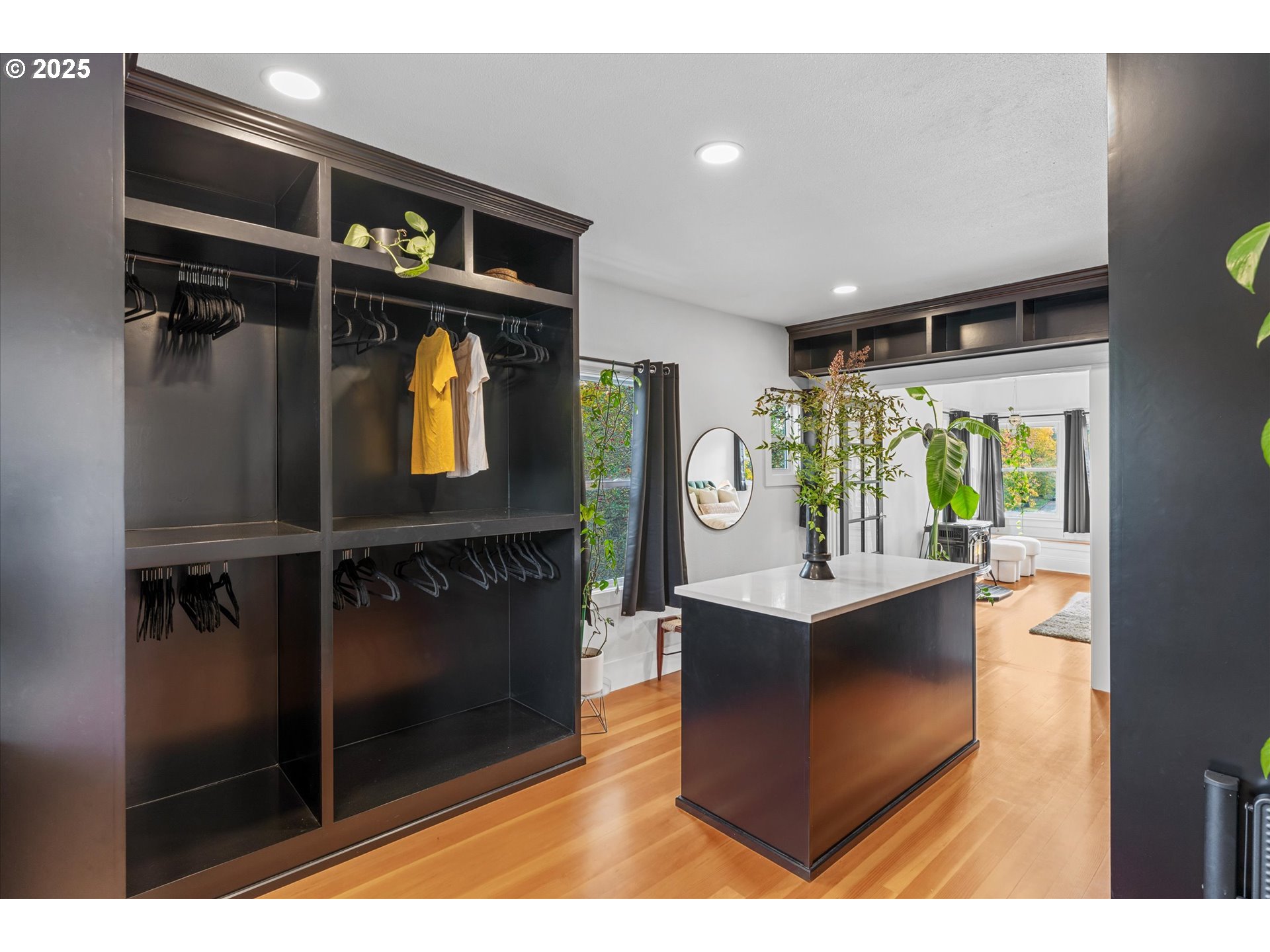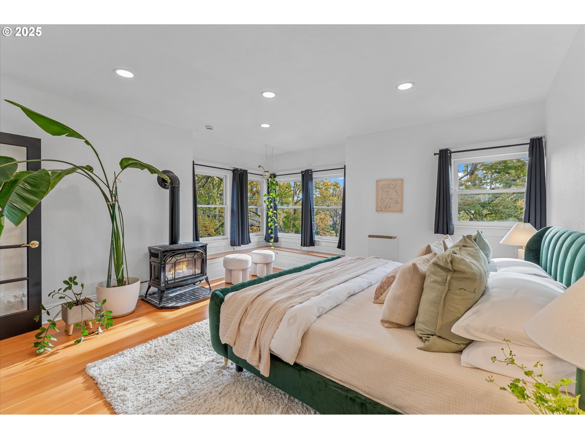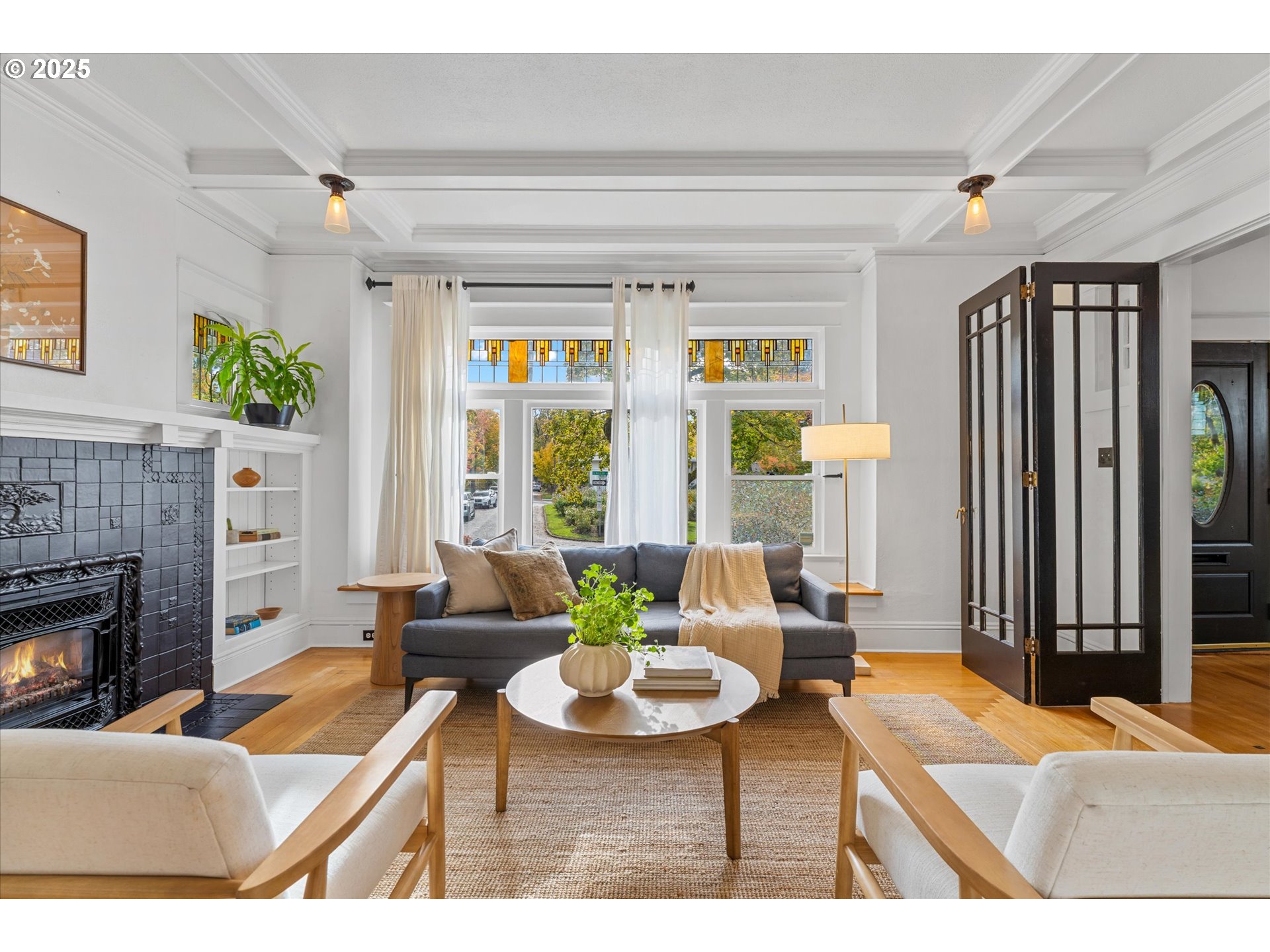 - This Gothic Revival-inspired Foursquare residence, located in the heart of Ladd's Addition, is truly a showstopper. It retains its timeless charm while modern updates highlight the original details that set it apart. The inviting living room features French doors, gorgeous stained glass, coffered ceilings, built-in shelves, and a gas fireplace, all overlooking the neighborhood's West Rose Garden. The spacious dining room continues the theme with stained glass, built-ins, and warm hardwood flooring that flows throughout the home. The kitchen is a chef's dream, featuring a large cooking island, stainless steel appliances, and generous space that leads to an outdoor deck, making it ideal for entertaining. Upstairs, you'll discover the updated primary bedroom with an impressive walk-in closet leading to a convenient attached laundry area. The bathroom feels like a spa retreat, featuring heated floors, stunning finishes, and an exquisite shower. The finished attic serves as a versatile space for teens, a zen room, or an art studio, while the lower level offers additional options as a guest suite or extra living space, equipped with its own entrance. The outdoor area is beautifully landscaped, low-maintenance, and ready for you to personalize. Nestled in one of Portland's most vibrant neighborhoods, this home is perfectly situated directly across from one of Ladd's many rose gardens and within blocks of various restaurants and cafés - and don't miss the highly rated schools. This house is truly a standout! Open house Saturday (11/1) from 10am-12pm & Sunday (11/2) from 2-4pm.