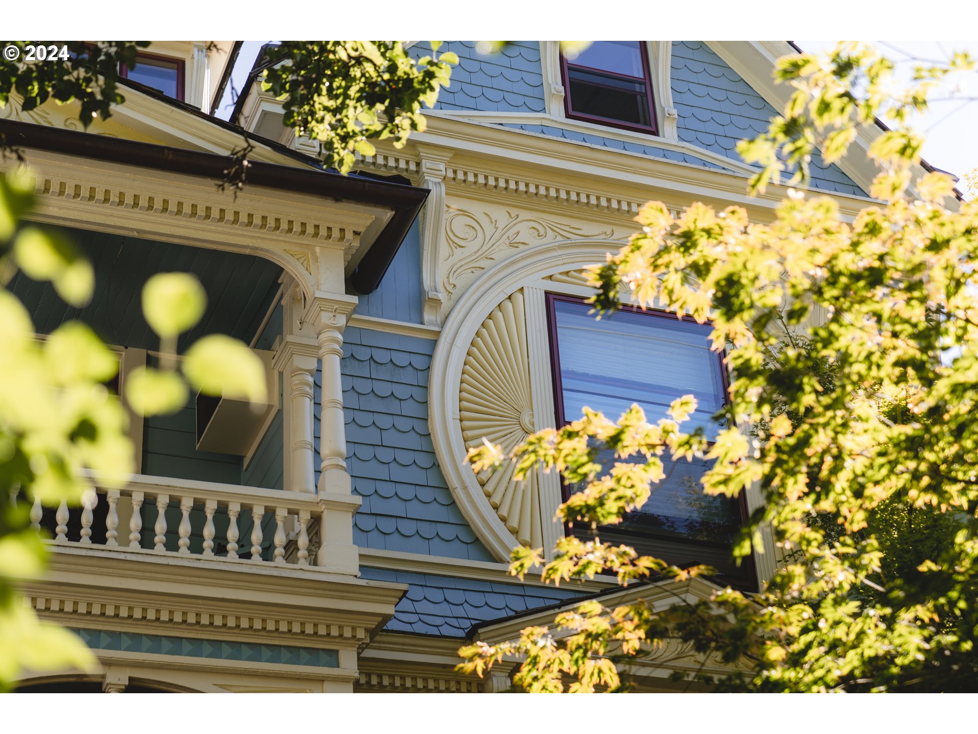 - This stunning home is a superb example of Victorian Queen Anne Architecture, rich in history and details. Known as the 'Nathan Loeb House,' it has been meticulously cared for and artfully updated by the current owners. Original stained glass Povey Bros. windows grace the facade. Hand carved wood working delineates the formal living and sitting room with built in bookshelves and fireplace creating a serene setting. A formal dining room welcomes holiday dinners! The chef's kitchen was renovated by the Neil Kelly Co and features a Wolf 6 burner gas range, Sub Zero refrigerator/freezer. The upper floors provide plenty of space for dens, offices, and even flexible living options to suit today's multigenerational needs. The 2nd floor has an option for a second kitchen, while there are additional laundry connections on the 3rd floor. A magical 'secret garden' is enclosed with a brick wall, koi pond and stone waterfall. The expansive deck and fire-pit promise romantic evenings of dining al fresco. Updated with dual HVAC, sprinklered 3rd floor, new roof, copper gutters and downspouts. Wood shop and garage have 220v electric for woodworking/crafts and car charging capability. Part of what makes this home so special is an oversized garage and off-street parking for 5+ vehicles. This is a rare find in the coveted Alphabet District of Portland. Forest Park, Washington Park and the Willamette River Greenway all close by for the most unique outdoor recreation in any city. The best restaurants and shops are all outside your door! [Home Energy Score = 1. HES Report at https://rpt.greenbuildingregistry.com/hes/OR10224947]