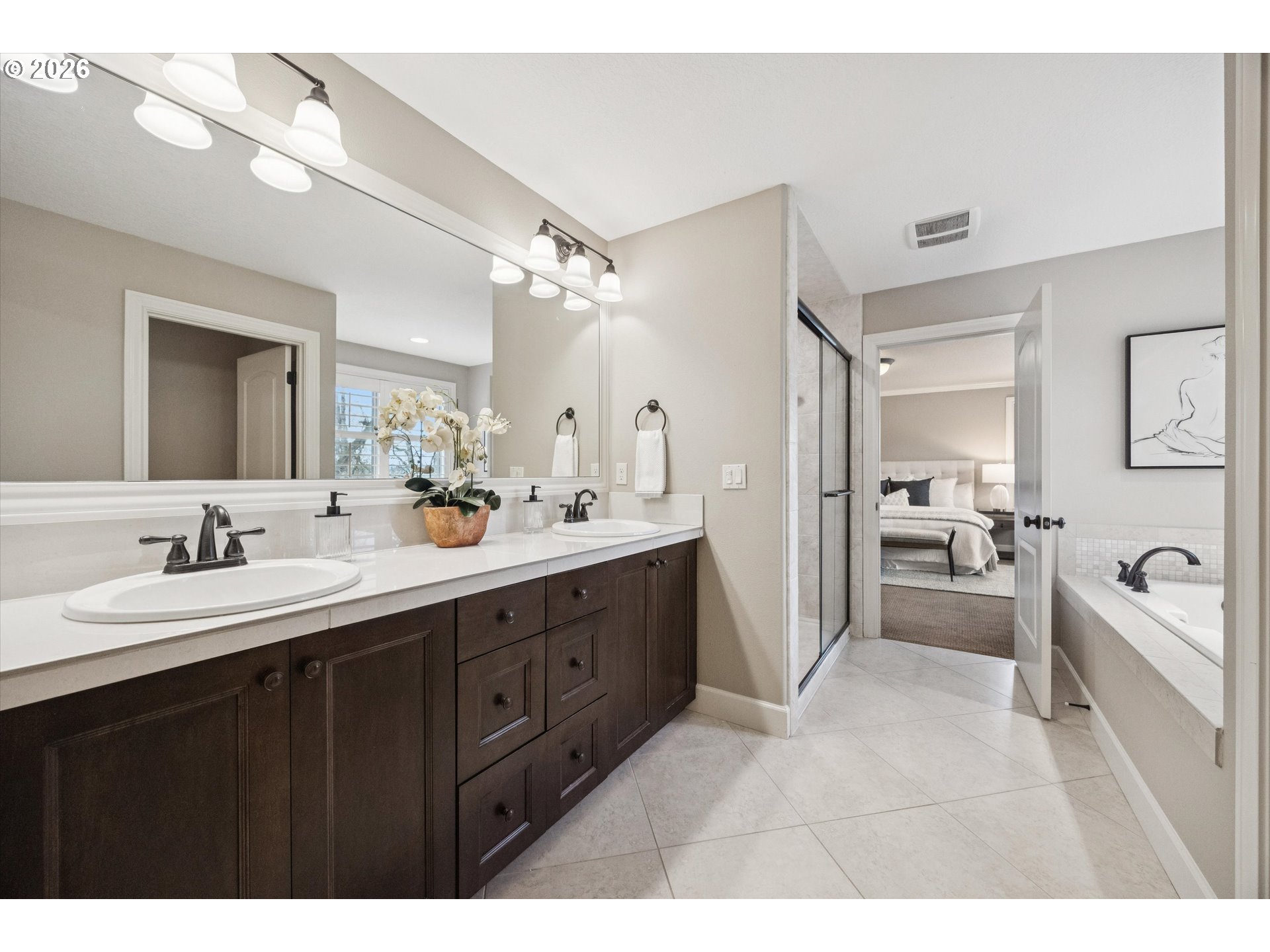 - Beautiful Renaissance home backing to a lovely, private green space. Located on a quiet street in the fantastic Rosemont Pointe neighborhood, with access to the outdoor neighborhood pool included in the HOA. Light-filled and airy, the spacious great room features a tree-lined view and access to one of two expansive entertaining decks that capture abundant sunlight. A half bath and access to the three-car garage complete the main floor.Upstairs, the large primary suite includes a walk-in shower, soaking tub, and a generous walk-in closet. Down the corridor are two guest bedrooms and a guest bathroom. The lower level offers a large family room complete with a home theater screen and projector—perfect for game-day entertaining or movie nights. A fourth guest bedroom and full bathroom provide privacy away from the main living areas. An enclosed, unheated bonus space could serve as a gym, hobby room, or workshop. The terraced yard offers plenty of options for play structures or relaxing in the sun.