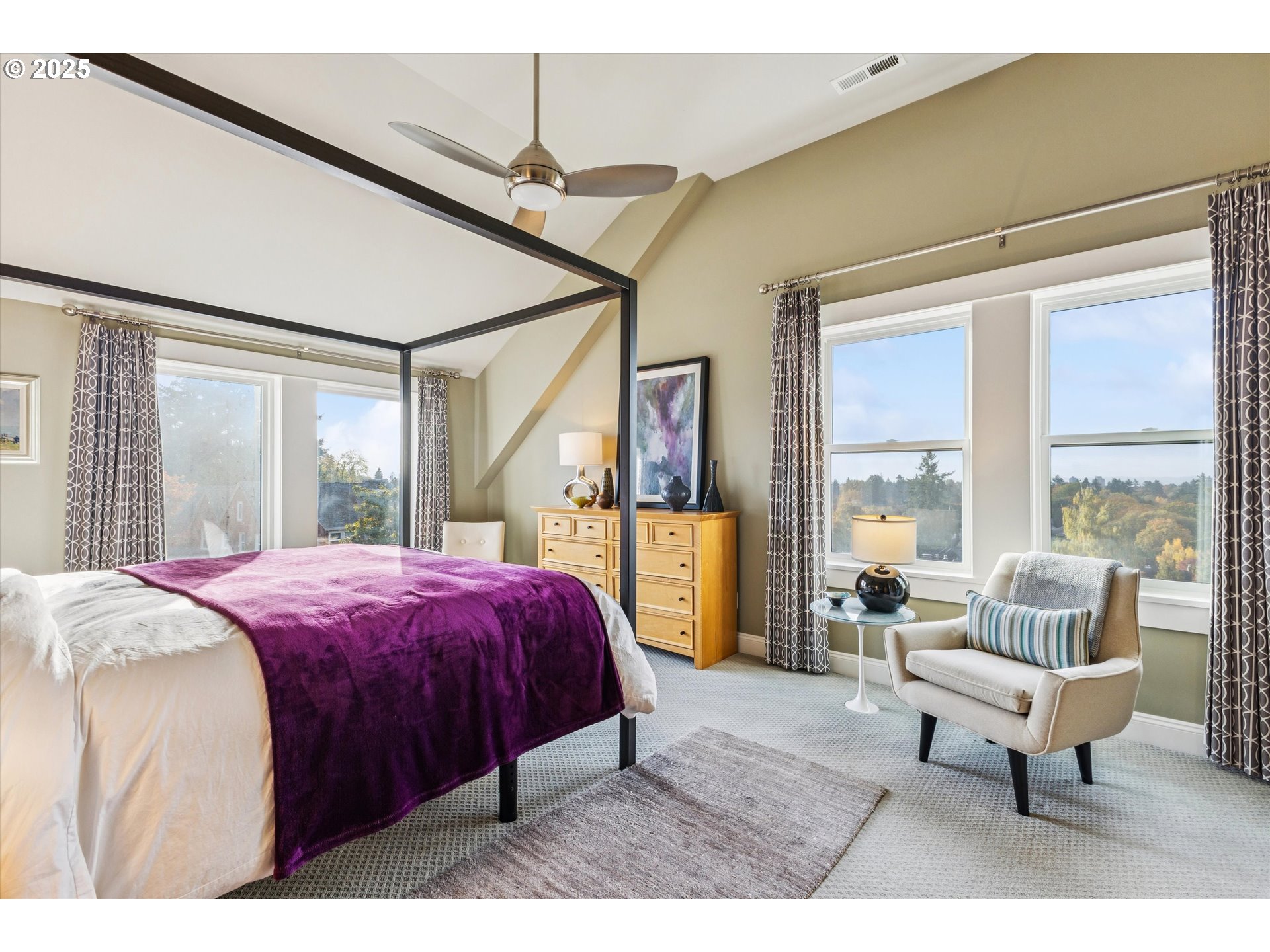 - Perched atop the sought-after Alameda Ridge, this spacious, beautiful home has views from every level, overlooking Irvington with some glimpses of downtown Portland and the west hills. The home itself blends style, function, and sustainability. Built in 2015, the residence features a spacious open floorplan with seamless flow between the kitchen, dining, and living areas — ideal for both entertaining and everyday living. A dedicated office provides the perfect work-from-home space or quiet retreat, and the four nicely sized bedrooms offer excellent flexibility for guest space or a growing household. Rooftop solar panels significantly reduce energy costs and support an eco-friendly lifestyle while a high voltage outlet in the garage allows for convenient electric car charging. Large windows flood the interior with natural light and showcase the home’s contemporary finishes. There are two exterior decks, both with wonderful views. This property offers modern comfort in a truly exceptional location. According to walkscore.com, the walk score is 74 and bike score is 84. [Home Energy Score = 5. HES Report at https://rpt.greenbuildingregistry.com/hes/OR10242525]