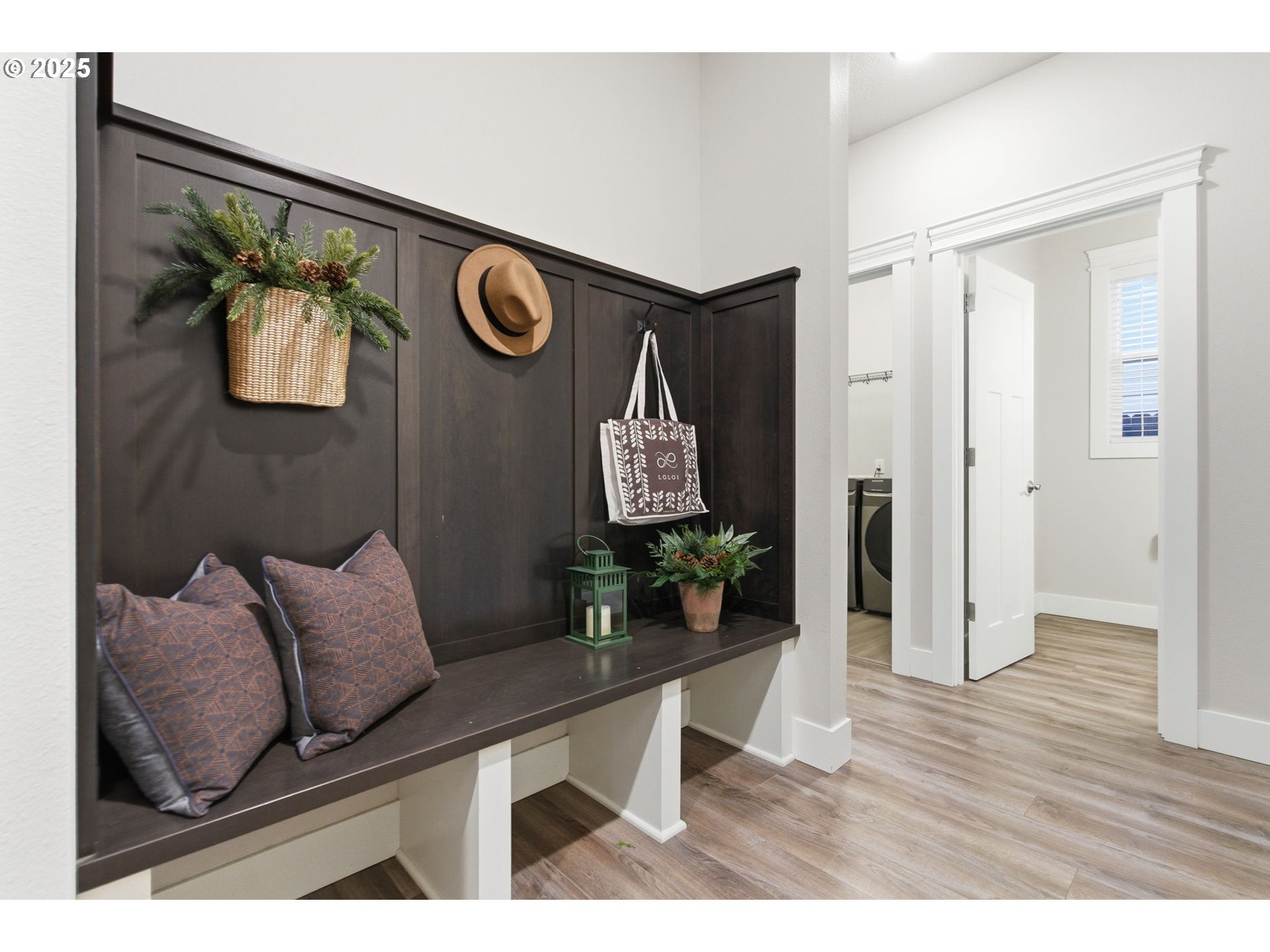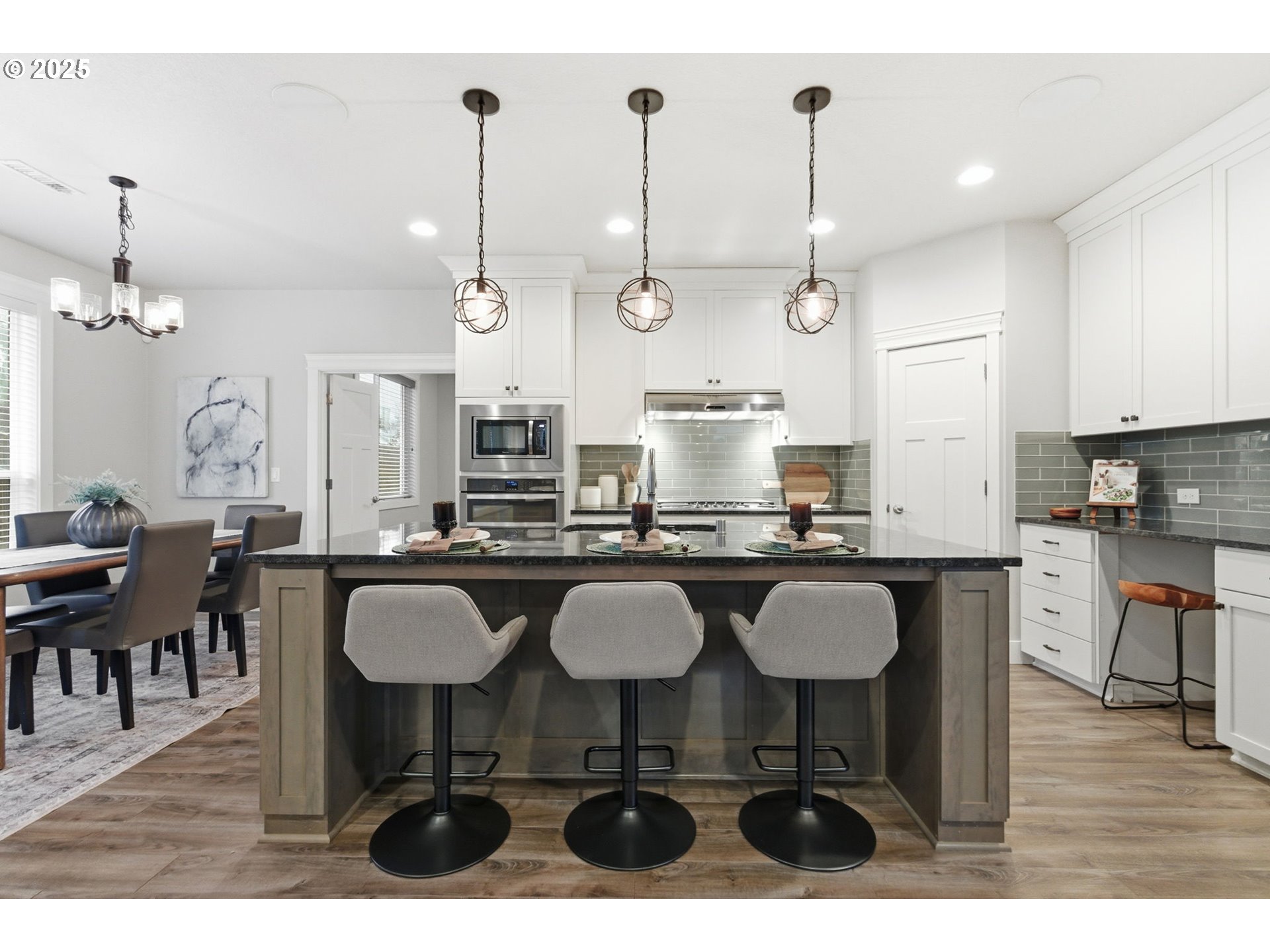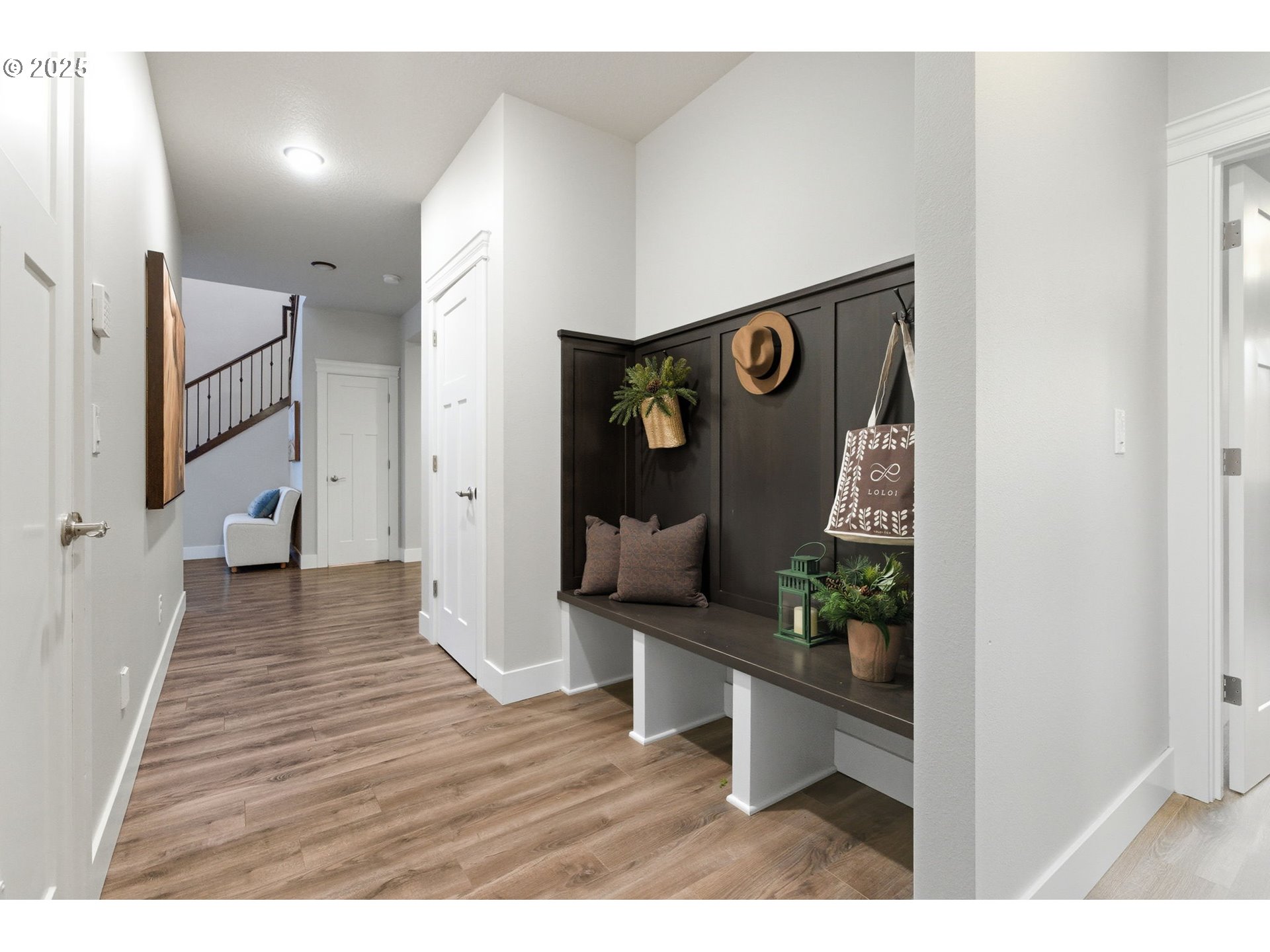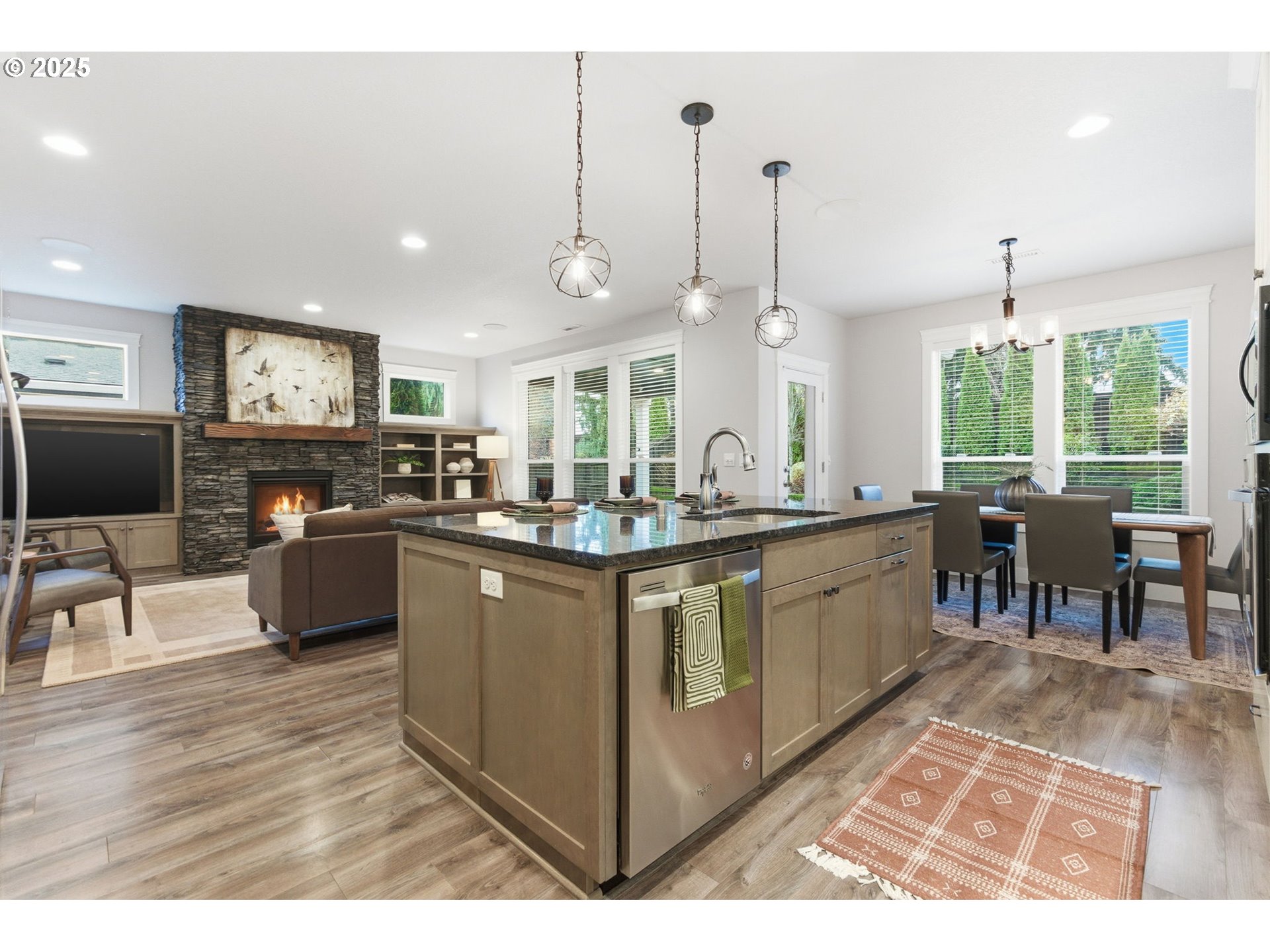 - Thoughtfully designed and exceptionally maintained, this newer construction home blends everyday comfort with refined style in a desirable Ridgefield neighborhood known for its convenience and community feel. The main level features LVP flooring, a stone-wrapped gas fireplace with custom built-ins, and a spacious kitchen appointed with quartz counters, stainless steel appliances, gas cooktop with hood, tile backsplash, walk-in pantry, and a large eat-in island complete with a wine rack. A dining nook overlooks the backyard, while a versatile main-floor bedroom/office/den and a convenient pass-through hallway with bench and cubbies add function to the layout.Upstairs, the primary suite offers a relaxing sitting area, soaking tub, walk-in shower, and an oversized walk-in closet. Three additional bedrooms on the upper level provide generous space and flexibility.Outside, the landscaped and fenced backyard is set up for year-round enjoyment with a covered entertaining area, built-in speakers, and a ceiling fan. A three-car garage, air conditioning, and all included appliances complete the package.