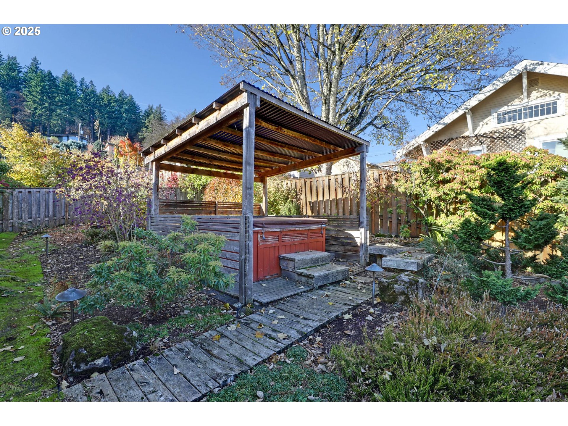 - Deck, Fenced, Free-Standing Hot Tub, Garden, Raised Beds, Security Lights, Yard