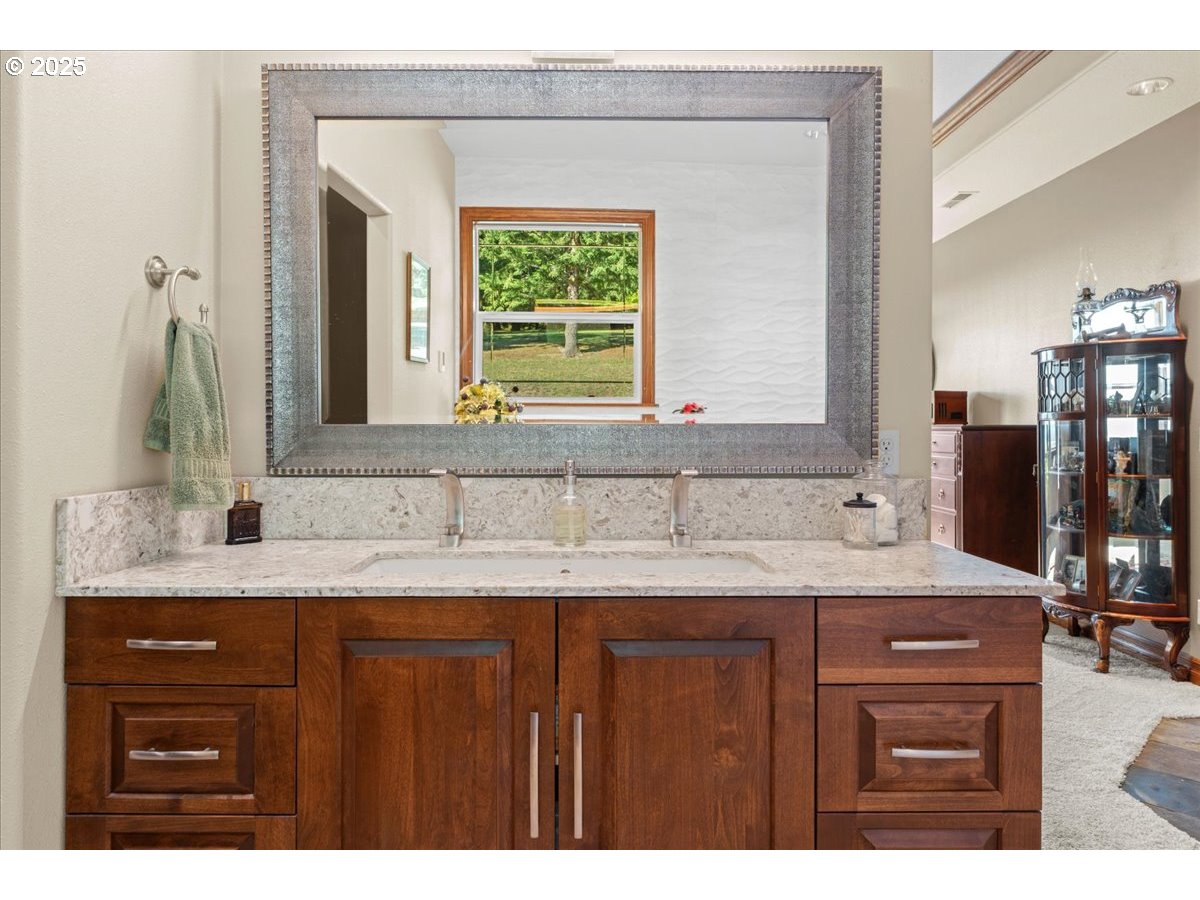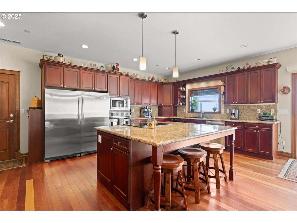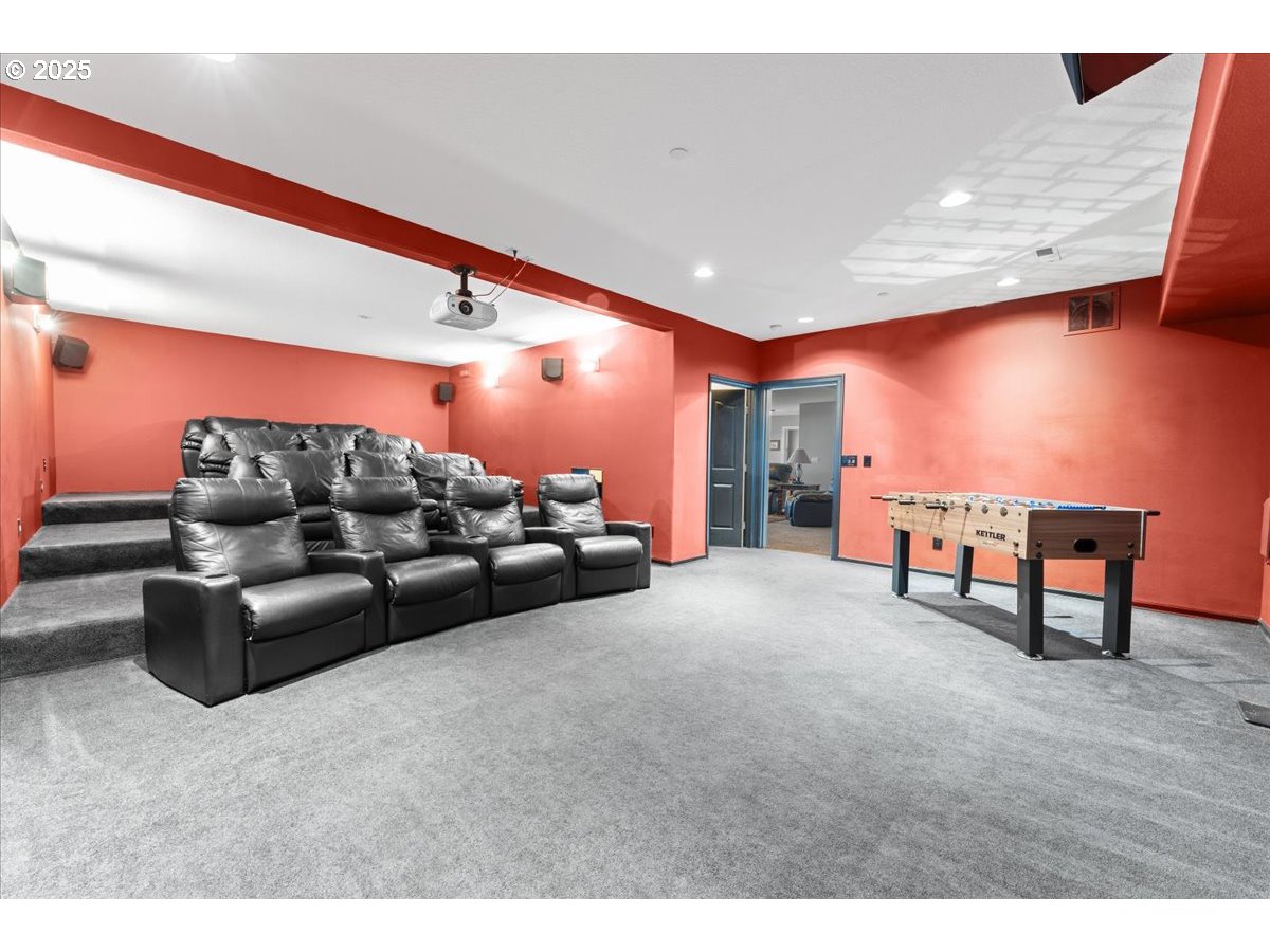 - Perched on five private acres in Battle Ground, this remarkable hilltop estate is fondly known by the sellers as their “house in the clouds.” On foggy mornings, the home feels as though it is floating above the mist, while on clear days, the panoramic valley views stretch for miles. The foyer opens into a spacious great room that incorporates the formal living area, anchored by a propane fireplace and surrounded by large windows that flood the home with natural light. Just off the dining room, French doors lead to a large office offering a flexible space for work or study. The chef’s kitchen features an oversized cooktop island, stainless steel appliances, an oversized refrigerator/freezer, and abundant counter space, making it ideal for both everyday living and entertaining. The primary suite is a private retreat with its own propane fireplace, a large walk-in closet, and a spa-inspired en-suite bathroom complete with heated floors and a custom shower. Three additional bedrooms and two additional full baths provide comfort for family and guests. The lower level includes a kitchenette and laundry, offering potential for multi-generational living or an ADU. It also features a dedicated craft/sewing room and a private home theater with a big screen, seating for 13, a projector, and a sound system—all included in the sale. Finishing touches include extensive hardwood floors, new carpeting, and fresh exterior paint. The garage offers approximately 1,800 square feet of space, accommodating six cars or four plus an RV, with ample room for storage and hobbies. This one-of-a-kind property combines expansive views, versatile living spaces, and refined details to create a unique opportunity for Northwest living.
