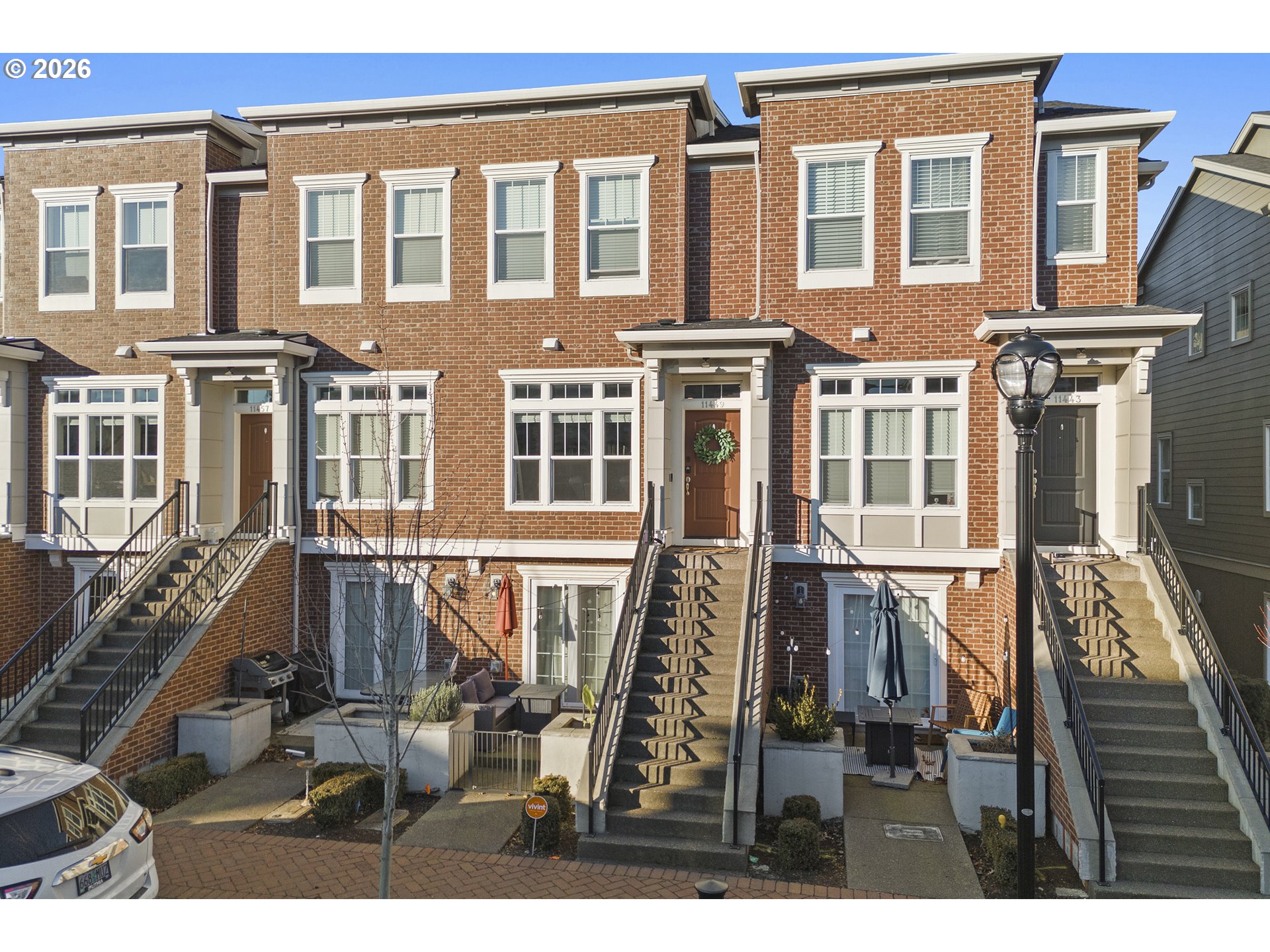 - Don’t miss this striking 1,391 square foot brownstone in the heart of Villebois, offering timeless style and standout curb appeal. The classic brick exterior, soaring windows, and stunning Mt. Hood views from Mont Blanc St. make a memorable first impression. Inside, the layout is both flexible and functional with 3 bedrooms and 3 full bathrooms, including a ground-floor suite with its own private exterior entrance—ideal for guests, a home office, or multi-generational living. The open-concept main level features durable LVP flooring, a well-designed kitchen with pantry storage, and natural light.Enjoy a front patio for outdoor living, plus the convenience of an attached garage. HOA includes access to the Sparrow Creek pool, fitness and community center. Enjoy the Villebois marketplace, seasonal Farmer's Market, Brighten Montessori, local schools and parks. Explore the local Graham Oaks Nature Parks wildlife and trails. Low-maintenance living, classic brownstone architecture, and one of Wilsonville’s most sought-after neighborhoods—this home truly stands out. **Lender credit offered by preferred lender.**