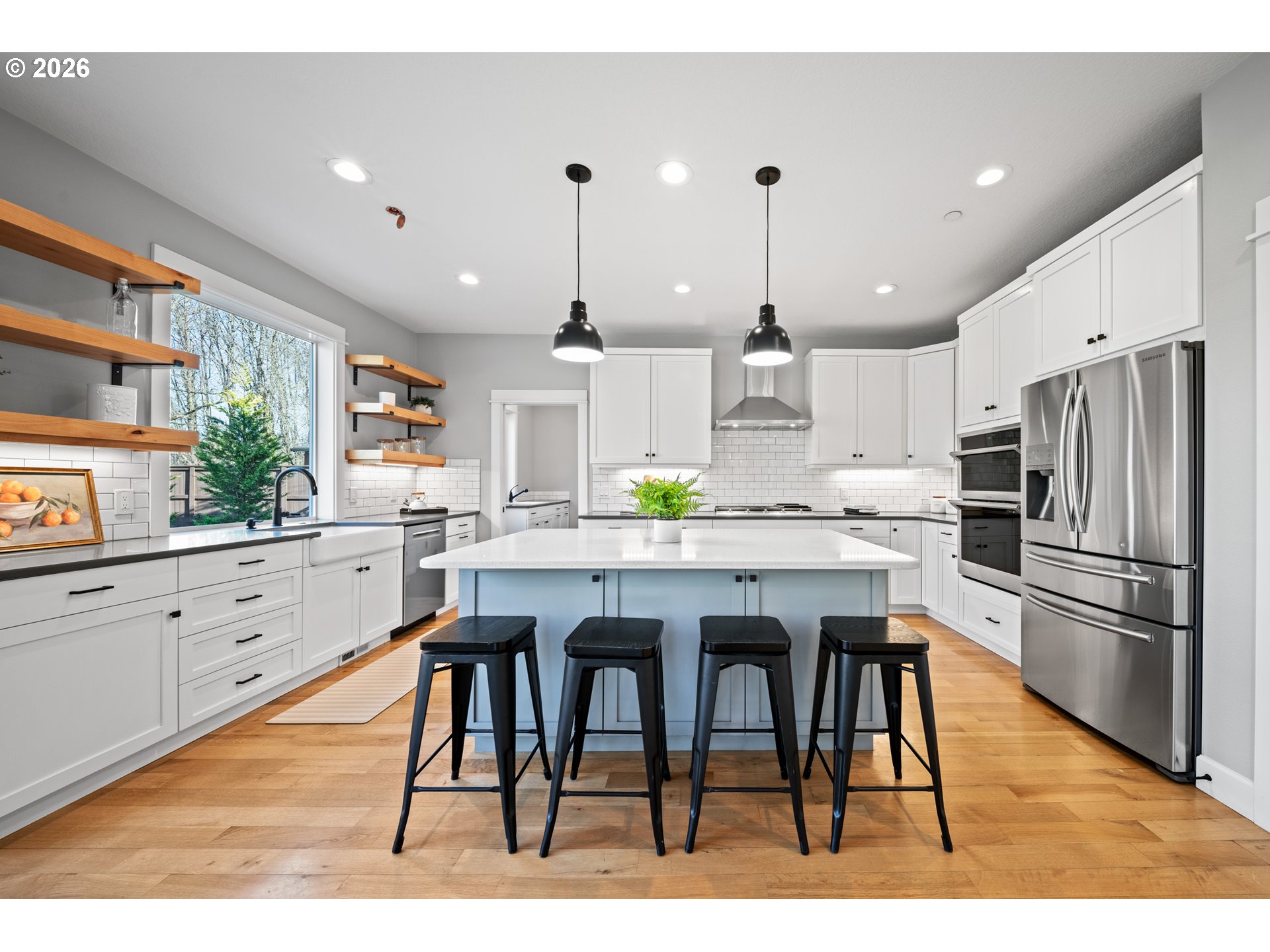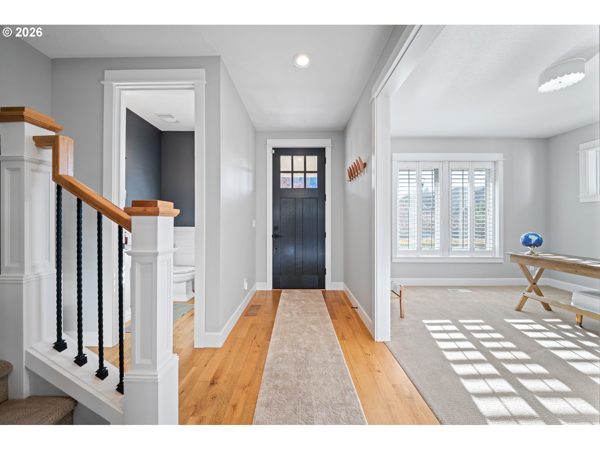 - Indulge in elevated living in this beautifully designed Camas residence, perfectly positioned on a premium large corner lot backing to a private green space. The bright, open-concept layout showcases hardwood floors, spacious living areas and refined finishes throughout, creating an inviting yet sophisticated atmosphere. The gourmet kitchen features quartz countertops, custom cabinetry, island with seating, and a pantry —ideal for both everyday living and entertaining. A versatile main-level office or den offers flexibility. Upstairs, the primary suite with vaulted ceilings is a serene retreat with a spa-inspired bath, walk-in tiled shower, and expansive walk-in closet. Huge 4th bedroom or bonus room functional for many different needs. Step outside to a fully upgraded, hardscaped backyard designed for year-round enjoyment, complete with a private putting green, chipping area, stamped concrete, water feature, and terraced fire-pit space perfect for gatherings. Additional highlights include an over-sized three-car garage, convenient guest street parking, and a prime location just minutes from Lacamas Lake, shopping, top-rated Camas schools, and only a 5-minute drive to Camas Meadows Golf Course. A rare opportunity offering luxury, lifestyle, and location—this is a must see!