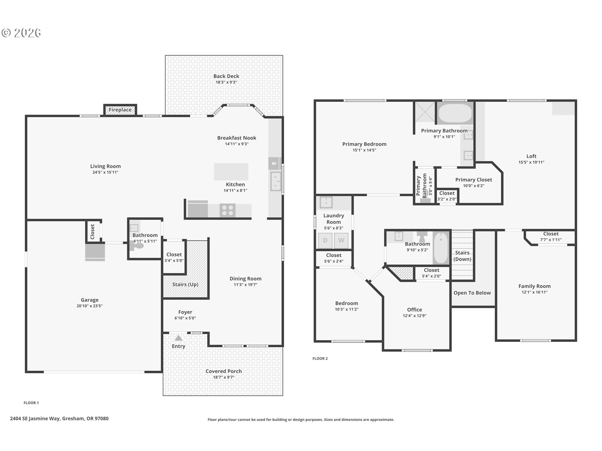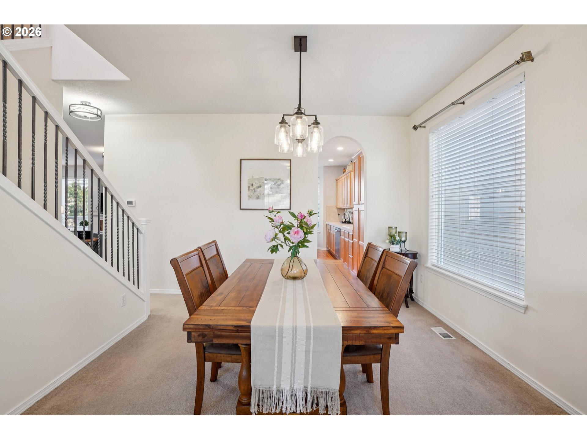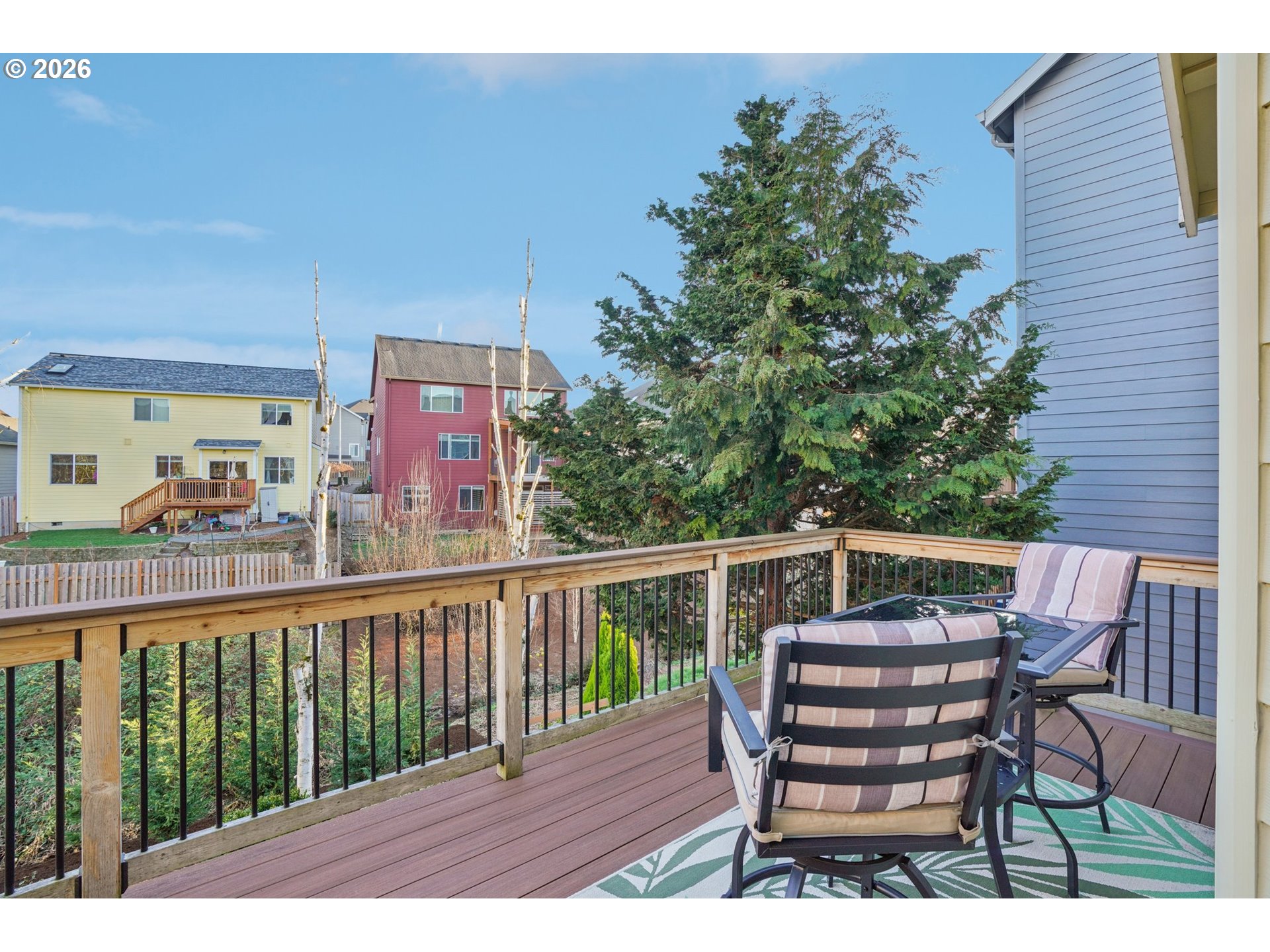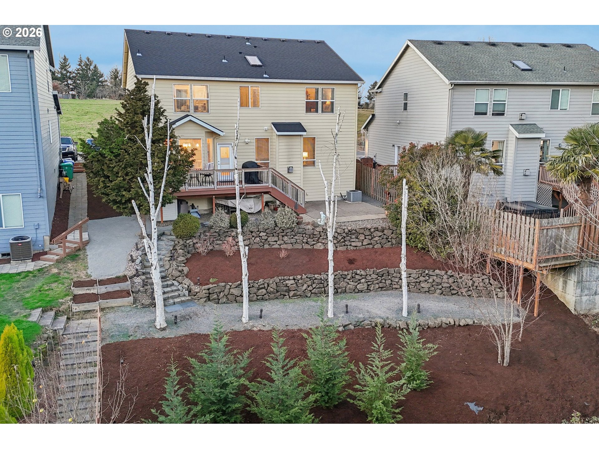 - This beautifully maintained two-story Craftsman home, built in 2005, welcomes you with a covered front porch facing an undeveloped community park, offering peaceful views and no neighbors directly across. Inside, the home features a highly desirable layout with 4 bedrooms and 2.5 bathrooms, thoughtfully designed for both everyday living and entertaining.The main level features an open foyer, a formal dining room, and a spacious great room that flows seamlessly into the kitchen, which is equipped with newer KitchenAid stainless steel appliances, a large island, and a welcoming eating nook—offering plenty of space to gather and entertain.Upstairs, you’ll find four bedrooms, including one currently used as a family room and another as a home office, plus a versatile loft area. The laundry room is conveniently located upstairs and includes a utility sink and built-in cabinetry. The owner’s suite is a relaxing retreat with a peekaboo Mt. Hood view, jetted soaking tub, separate shower, double sinks, walk-in closet,skylight and a mix of tile flooring and carpet.Outdoor living truly shines with an expansive Trex composite deck, replaced in December 2022, featuring stairs that lead down to a spacious patio ideal for entertaining. From there, graceful circular stone steps continue to a beautifully terraced area—perfect for gardening or simply relaxing and taking in the serene setting.. Owned by the original owner who is a licensed Oregon Realtor and maintained meticulously. Includes kitchen appliances & 2nd refrigerator in the garage for entertaining large groups or that small intimate gathering. Roof replaced in July 2023 for added peace of mind. Too much to list- absolute must see!